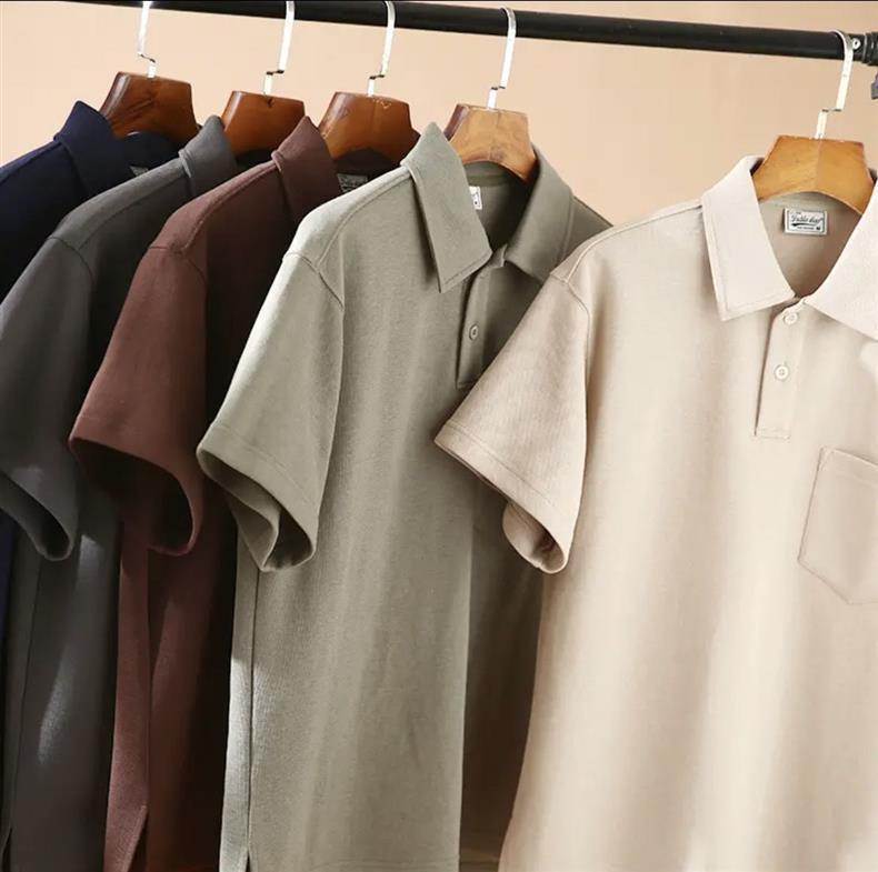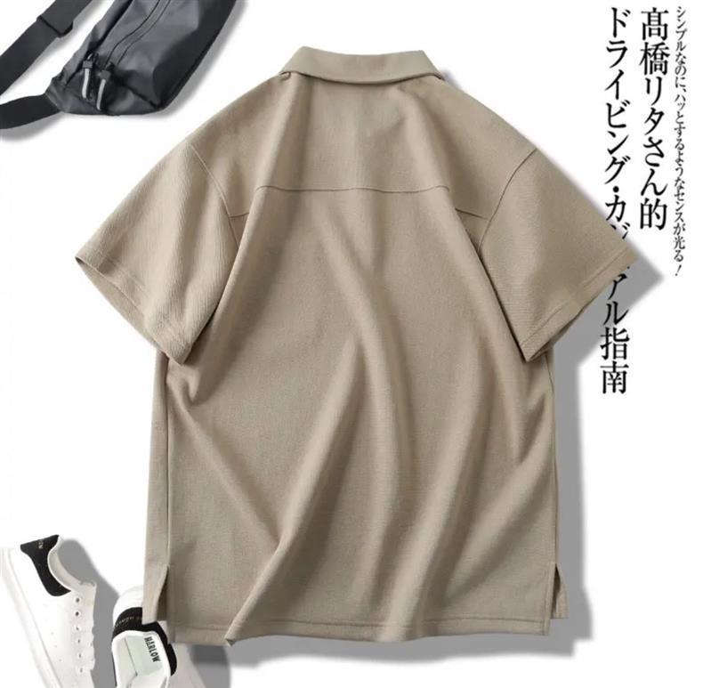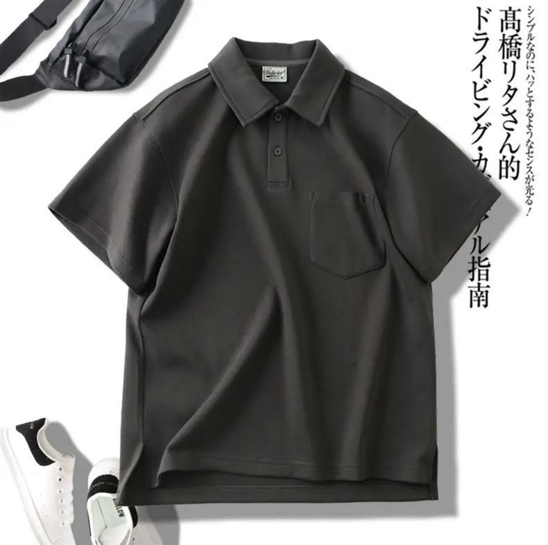 2024 여름 새로운 일본식 헤비 폴로 셔츠 남성용 캐주얼 단색 패션 라펠 탑 반소매 티셔츠스토어 가기