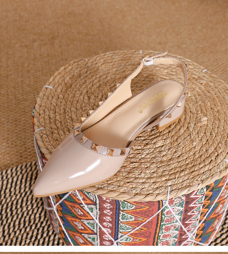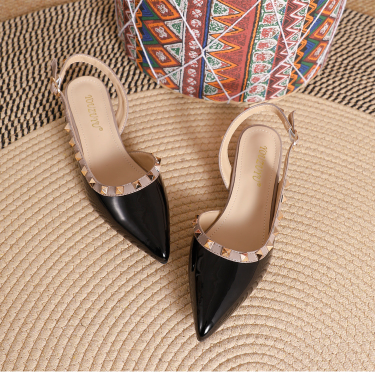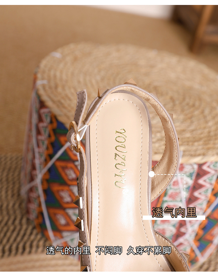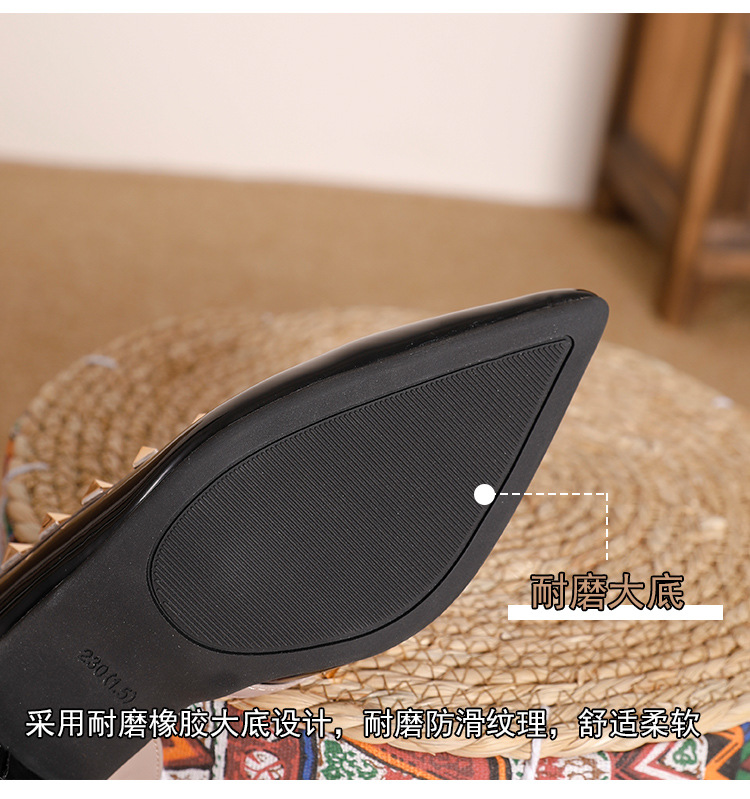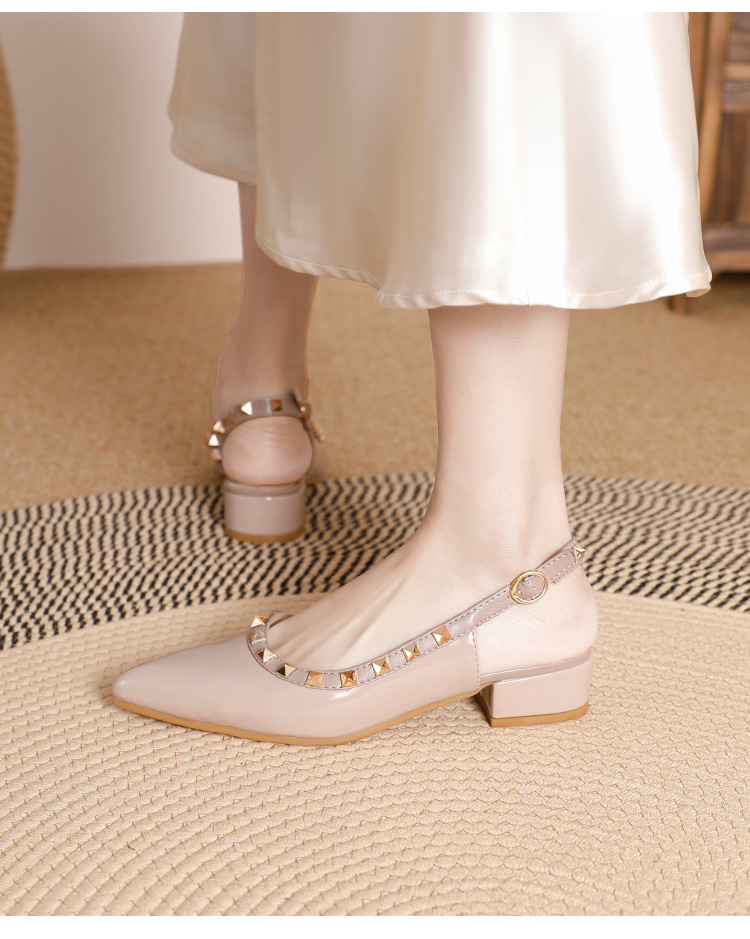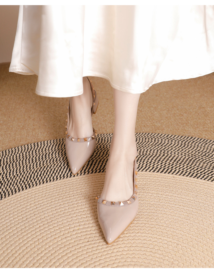 바오터우 샌들 여성용 2024 여름 신상품 다용도 프렌치 스타일 두꺼운 굽 뾰족한 앞코 미드힐 뒤트임 리벳 싱글 슈즈 여성용 하이힐스토어 가기