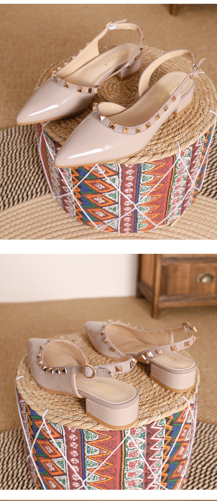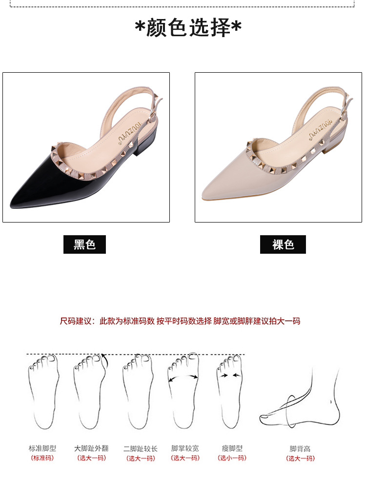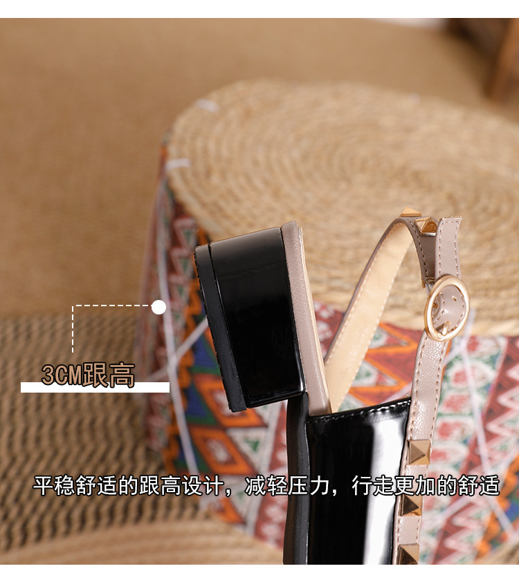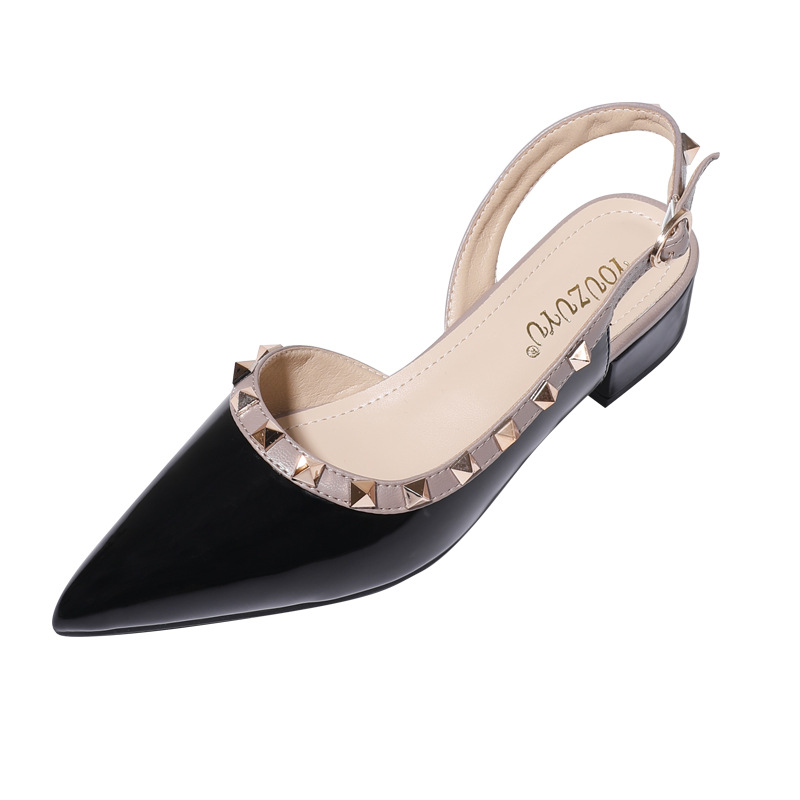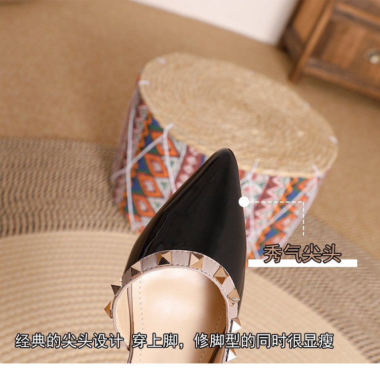 바오터우 샌들 여성용 2024 여름 신상품 다용도 프렌치 스타일 두꺼운 굽 뾰족한 앞코 미드힐 뒤트임 리벳 싱글 슈즈 여성용 하이힐스토어 가기