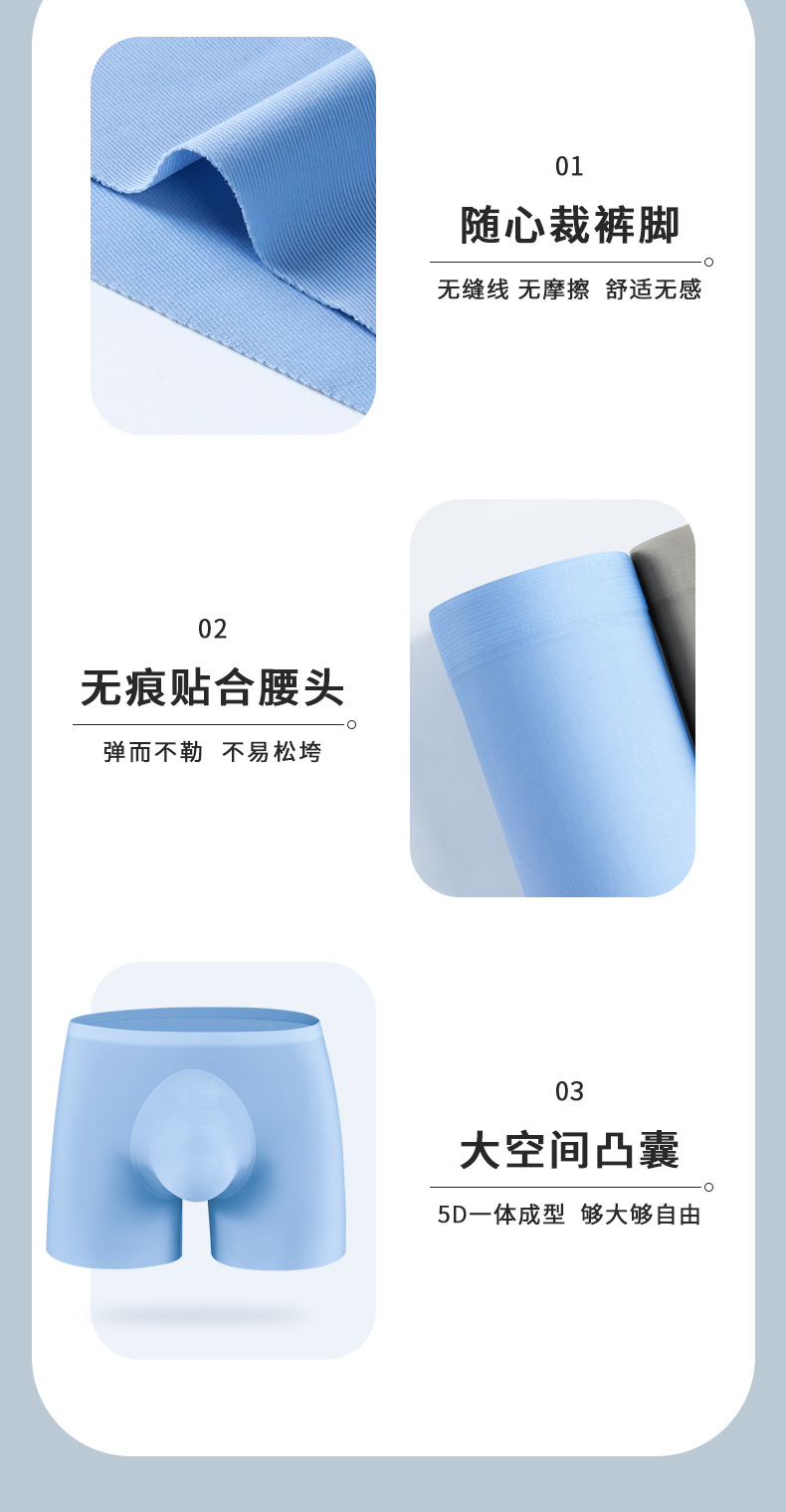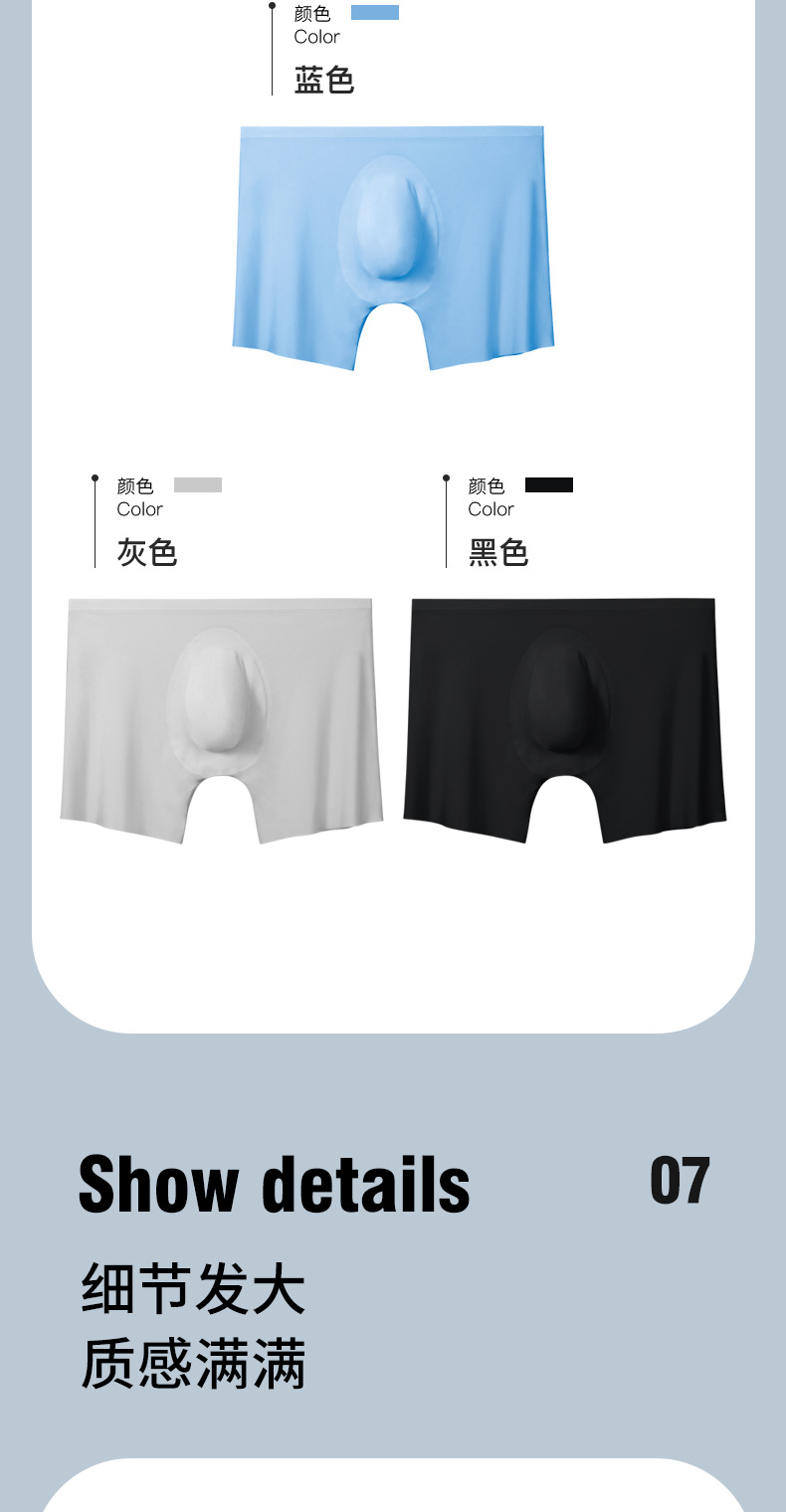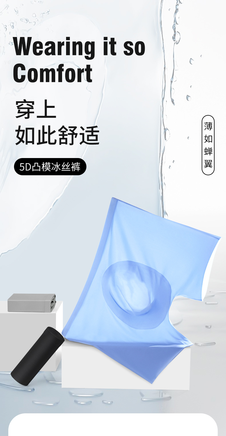 여름 새로운 초박형 원활한 아이스 실크 남성 속옷 원활한 3D 통기성 빠른 건조 바지 머리 투명 남성 복서