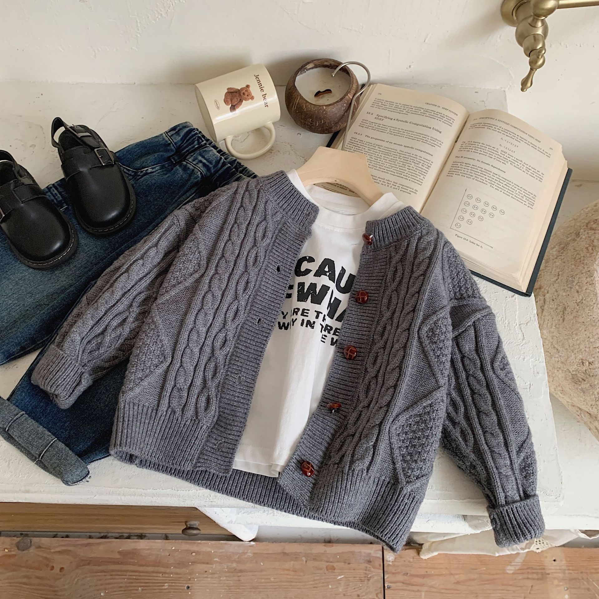 아동 스웨터 Bangcheng 2025 가을 소년 트위스트 재킷 새로운 아동복 한국 스타일 캐주얼 카디건 트렌디 MY0029