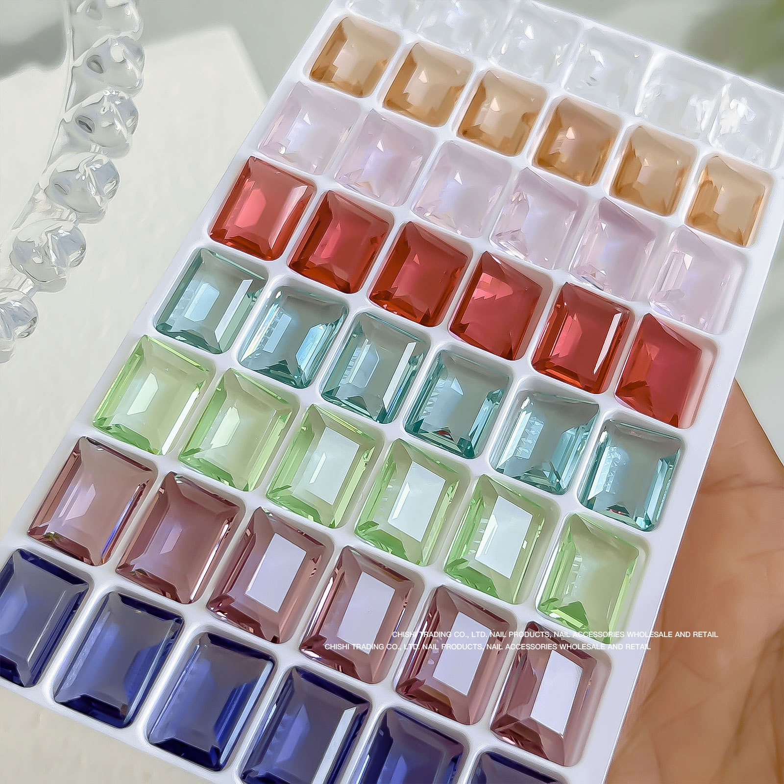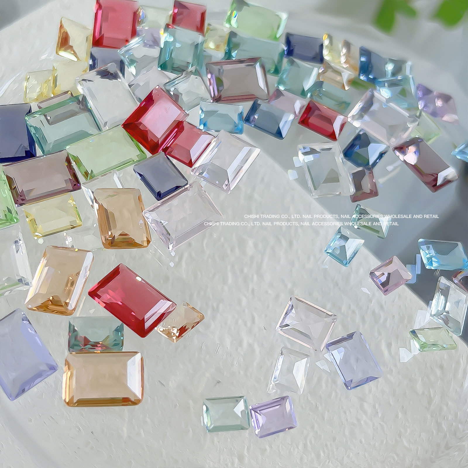 높은 K9 명확한 바닥이없는 큰 스몰 사이즈 바위 설탕 긴 직각 액세서리 높은 투명 플래시 유리 네일 다이아몬드 보석 도매