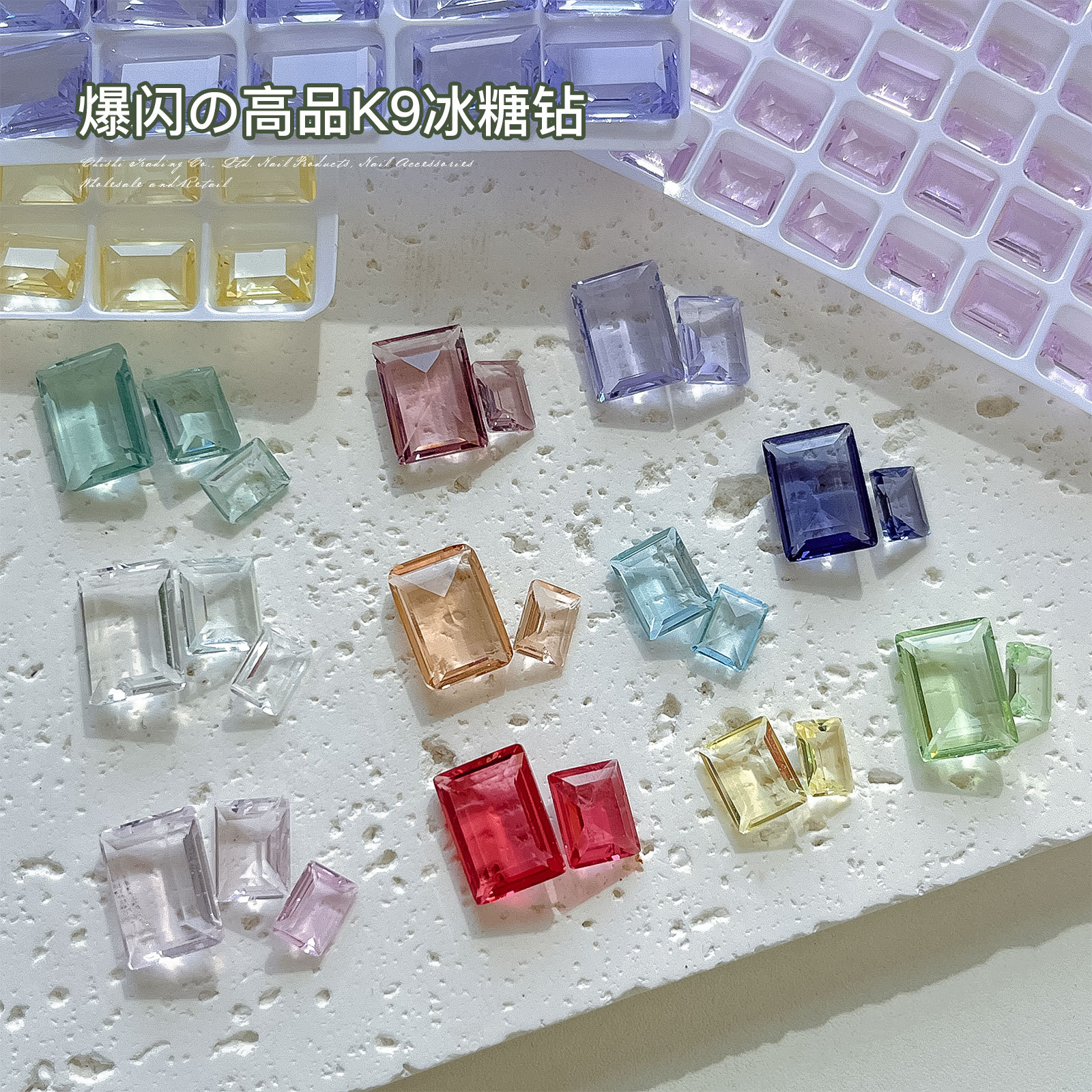 높은 K9 명확한 바닥이없는 큰 스몰 사이즈 바위 설탕 긴 직각 액세서리 높은 투명 플래시 유리 네일 다이아몬드 보석 도매스토어 가기