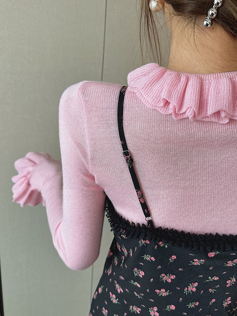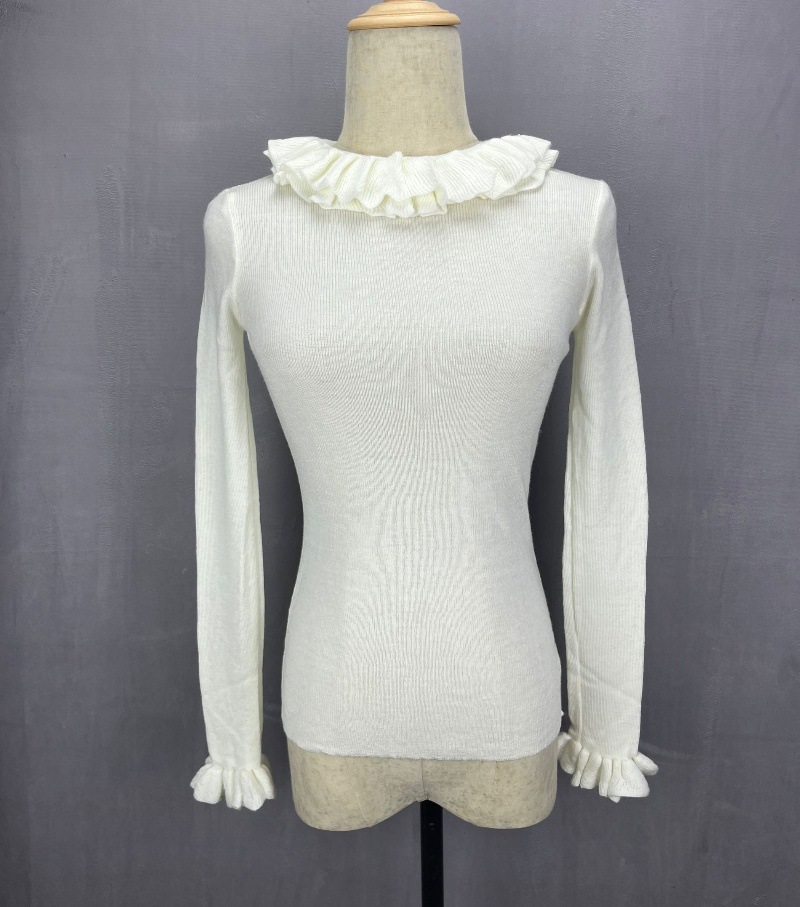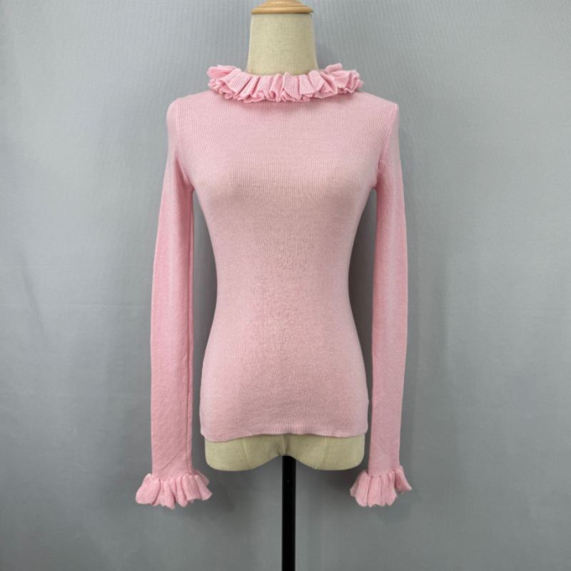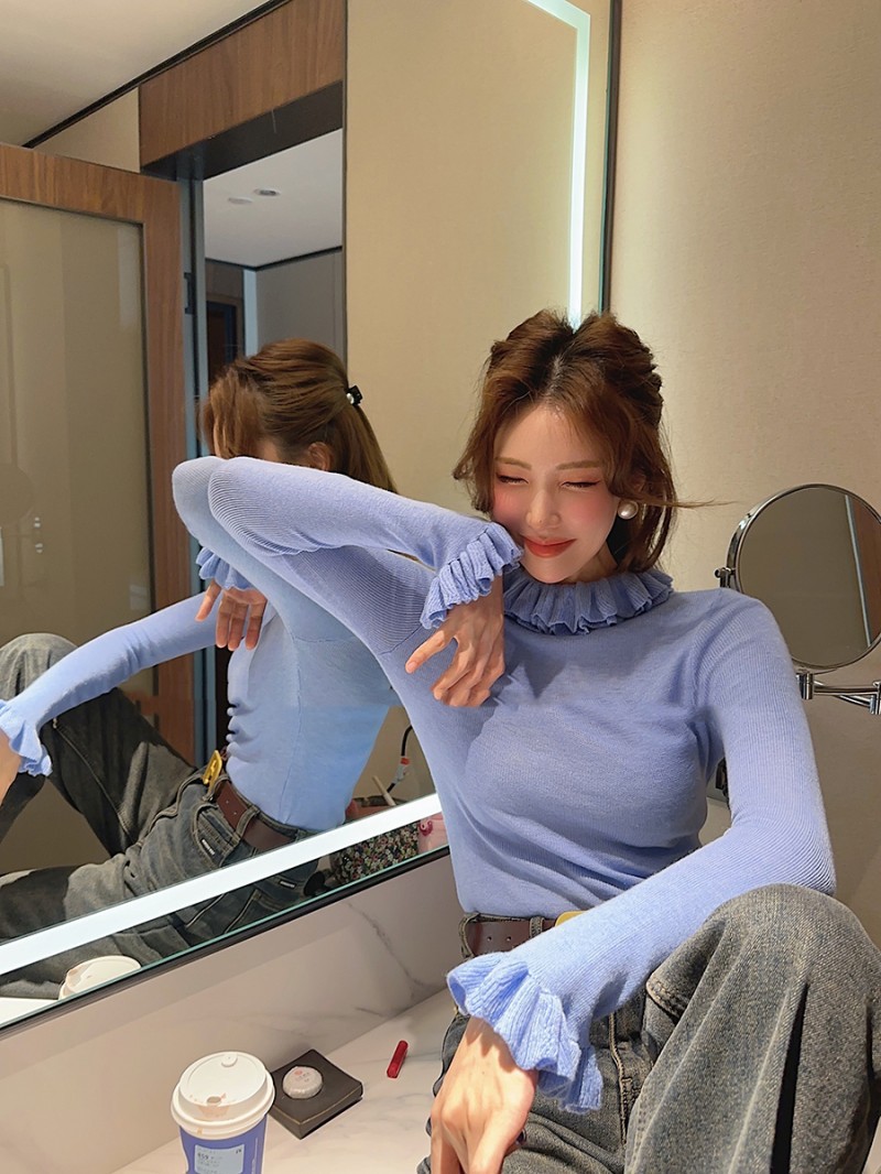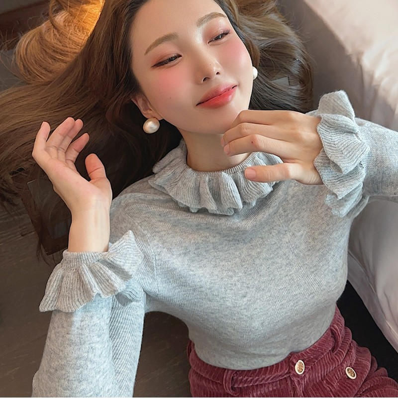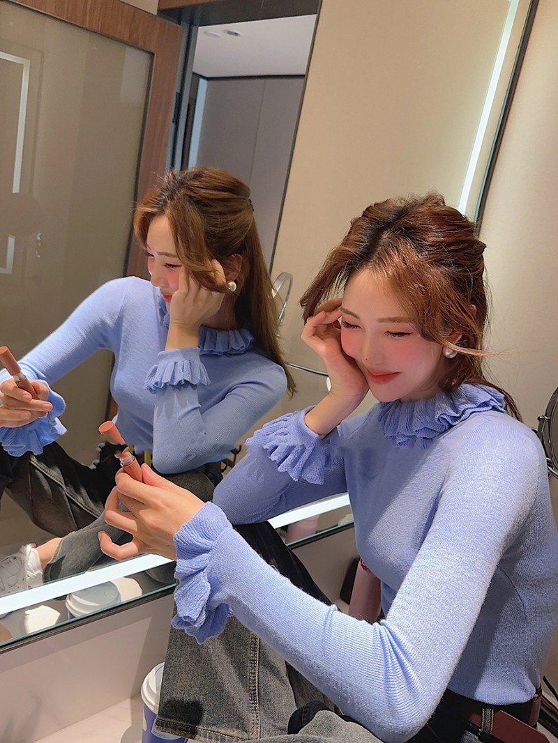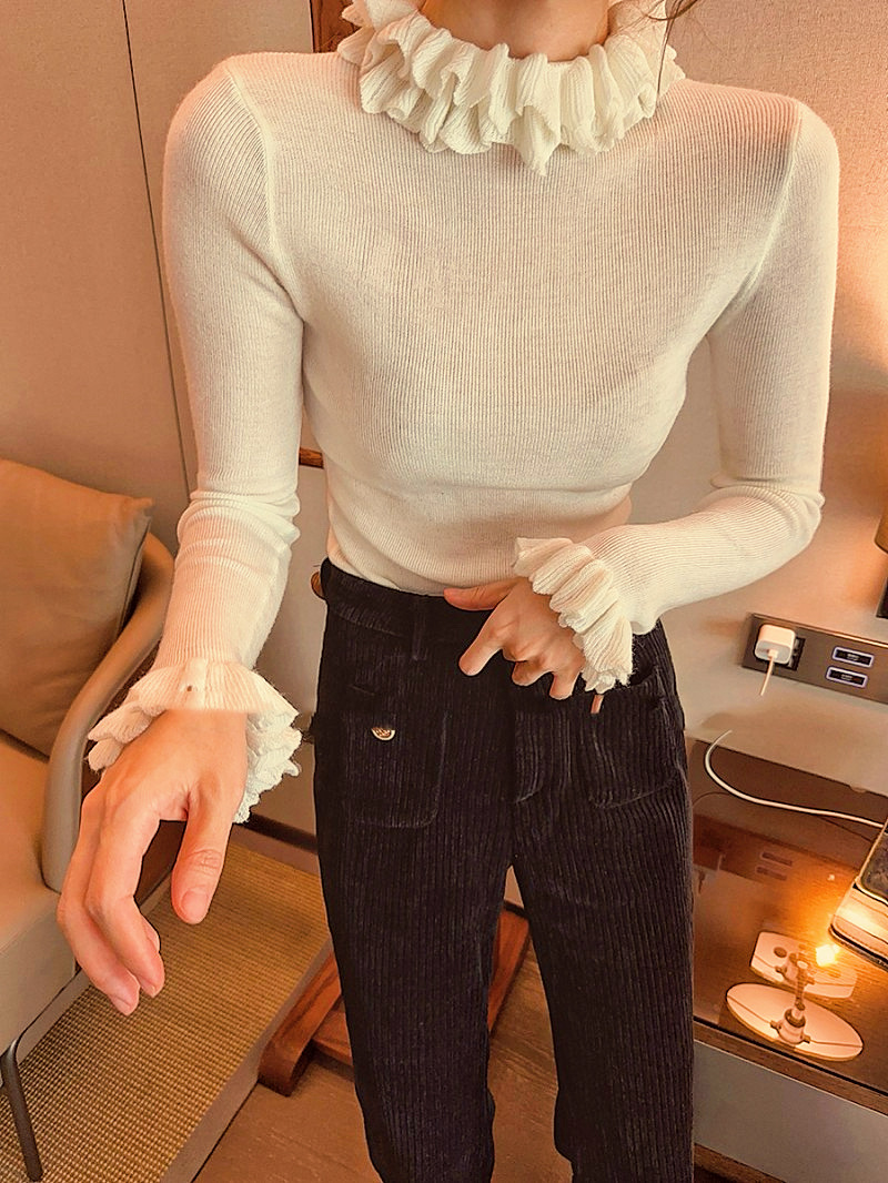 봄 새로운 우아한 곰팡이 레이스 스탠드 칼라 바닥 셔츠 최고 다목적 슬리밍 단색 내부 울 스웨터스토어 가기