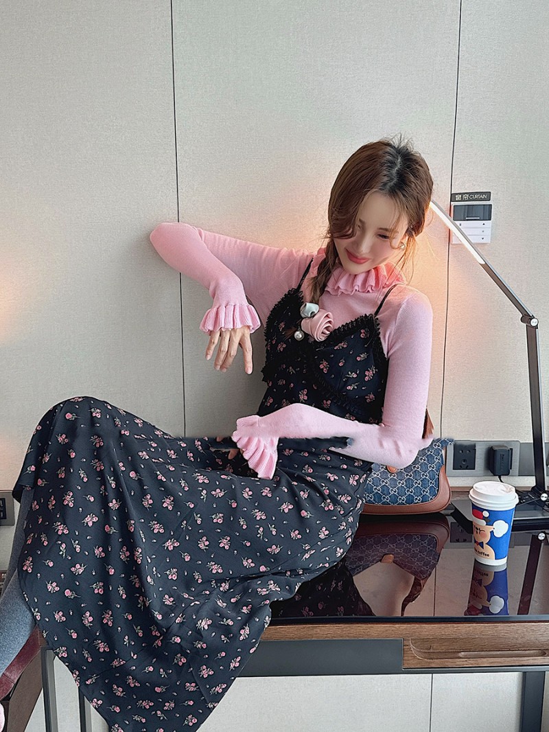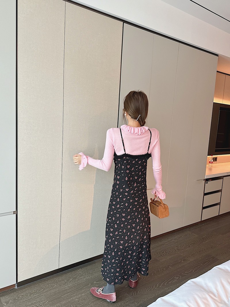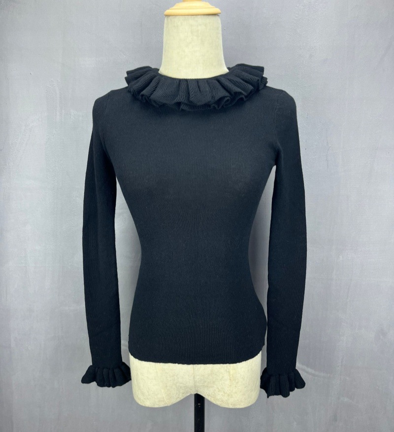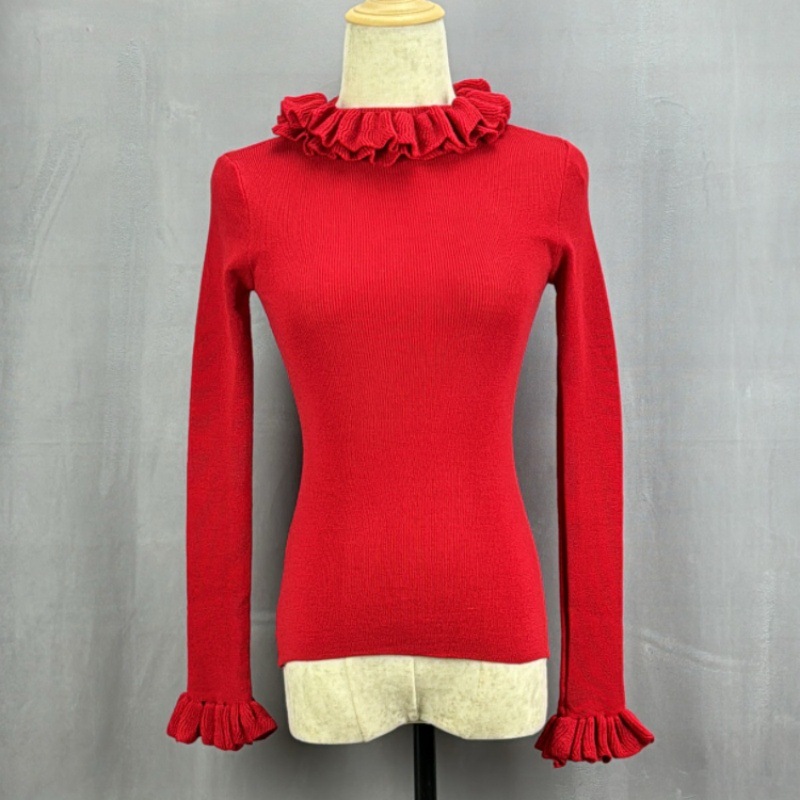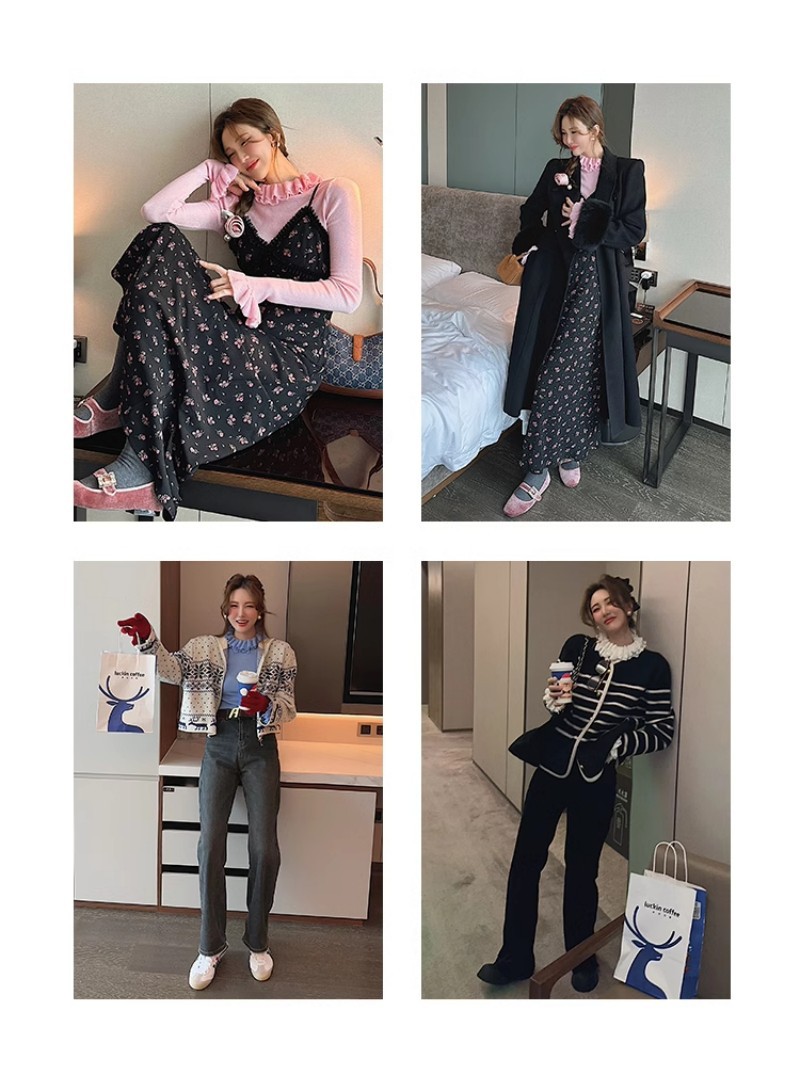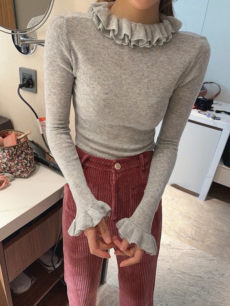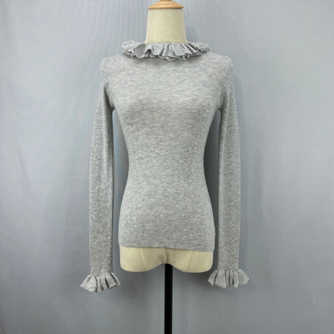 봄 새로운 우아한 곰팡이 레이스 스탠드 칼라 바닥 셔츠 최고 다목적 슬리밍 단색 내부 울 스웨터스토어 가기