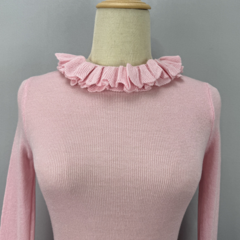 봄 새로운 우아한 곰팡이 레이스 스탠드 칼라 바닥 셔츠 최고 다목적 슬리밍 단색 내부 울 스웨터