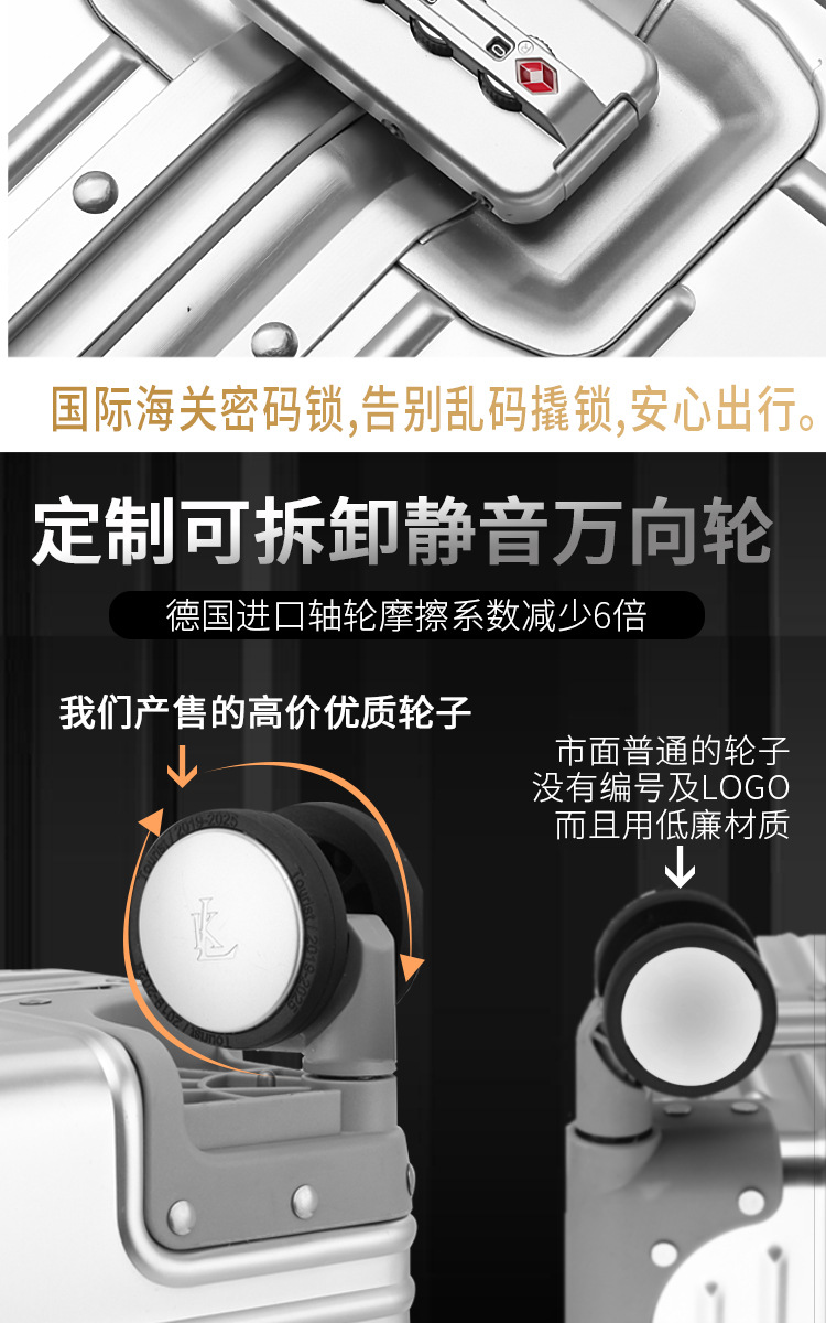 알루미늄 마그네슘 합금 수하물 음소거 유니버설 휠 수출 국경 트롤리 케이스 알루미늄 프레임 금속 대외 무역 암호 가죽 케이스스토어 가기