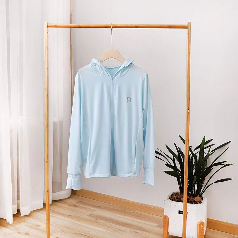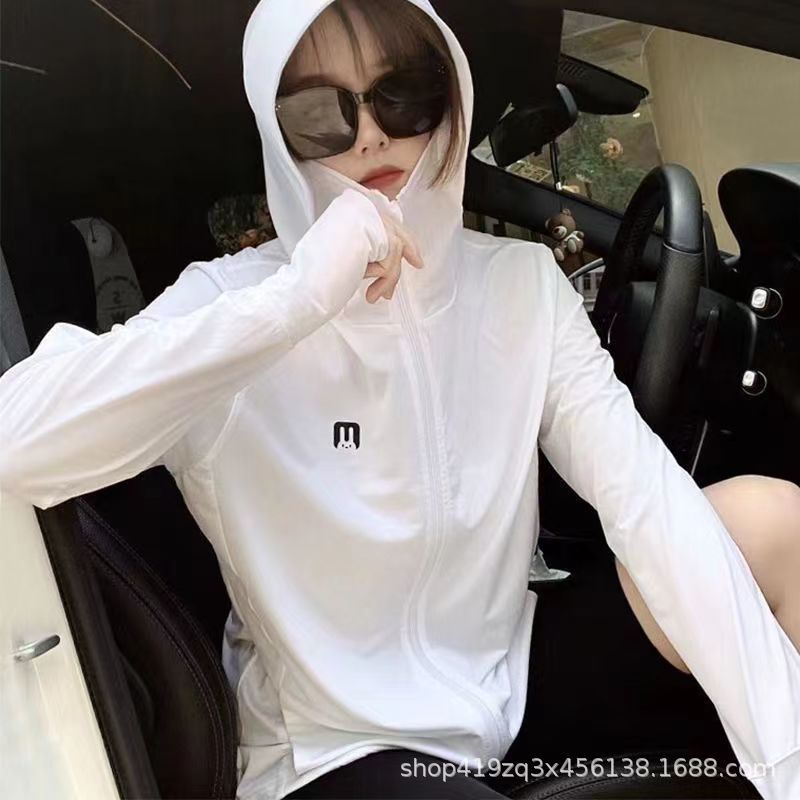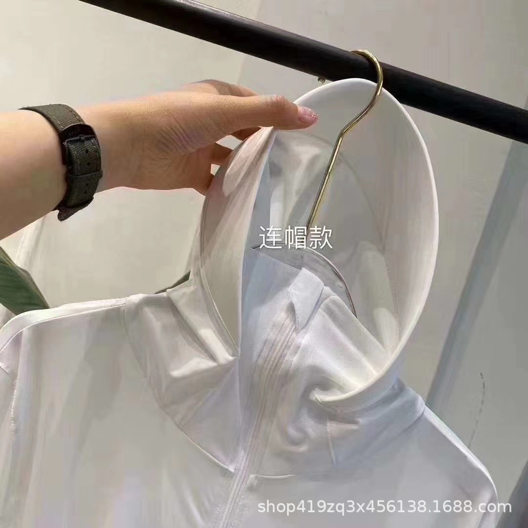 아이스 실크 태양 보호 의류 2024 새로운 여름 야외 통기성 아이스 실크 경량 통기성 UV 보호 긴 소매 후드 의류스토어 가기