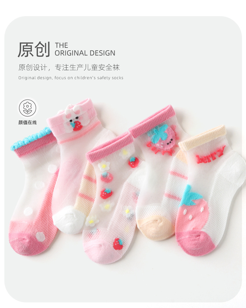 여름 소녀 양말 빛 핑크 딸기 어린이 양말 통기성 카키 면 양말 시원한 레이스 소녀 양말스토어 가기