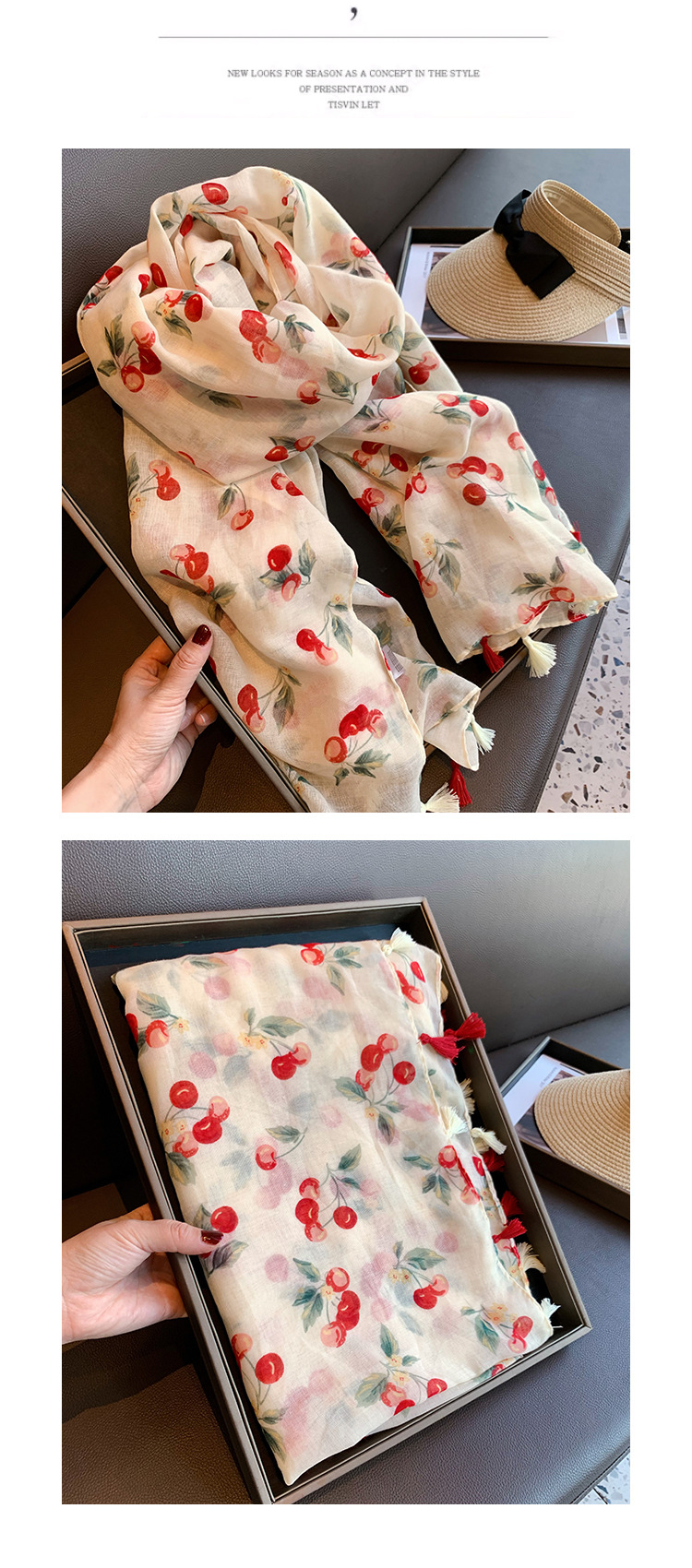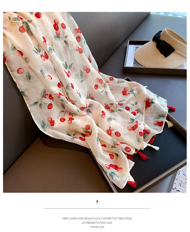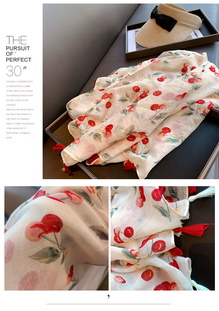 여성 실크 스카프 여름 한국 스타일의 다재다능한 얇은 스카프 태양방지면 린넨 체리 레드 술 해변 사막 태양 방지 목도리