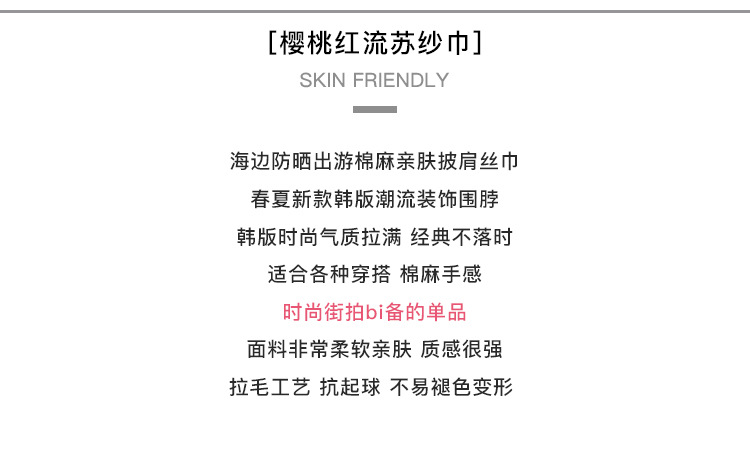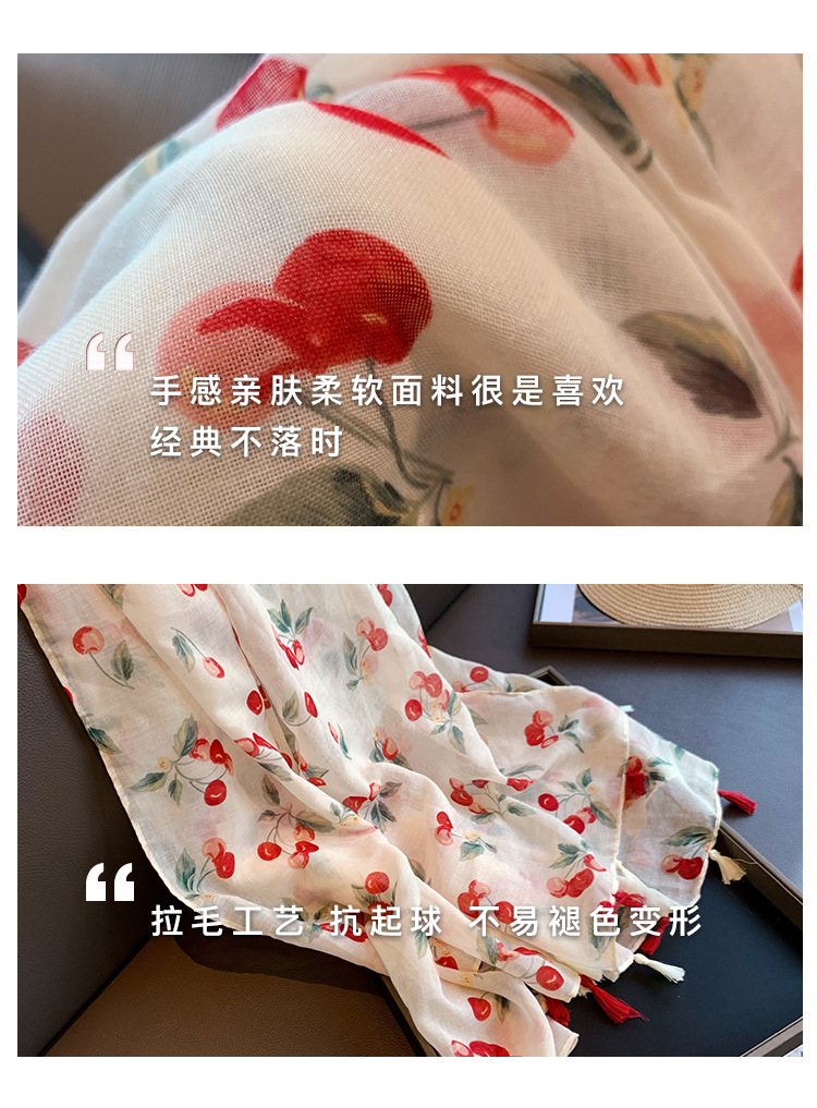 丝巾女夏季韩版百搭薄款纱巾遮阳棉麻樱桃红流苏海边沙漠防晒披肩