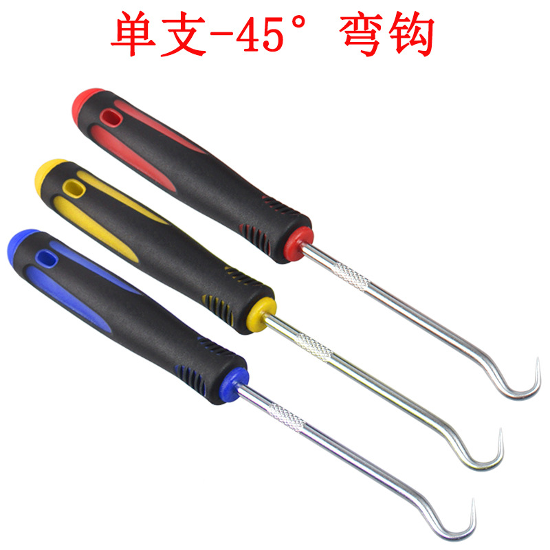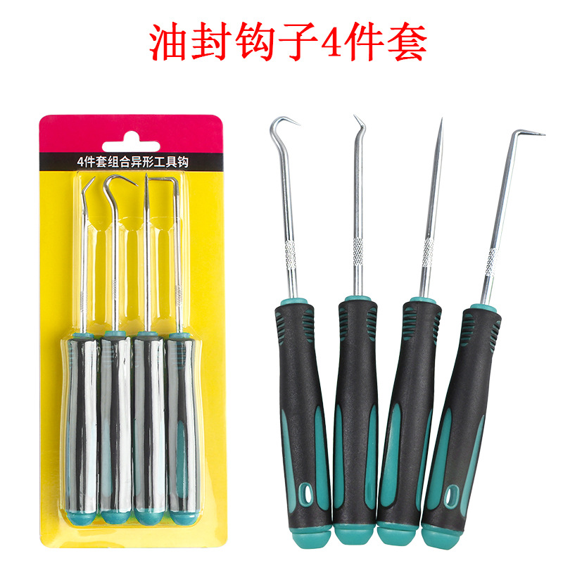 4件小号油封钩子(弯钩、45度弯钩、90度弯钩、直针) 4件新款:杆长75mm、柄长105mm、全长180mm 4件胶套款:杆长75mm、柄长90mm、全长165mm |