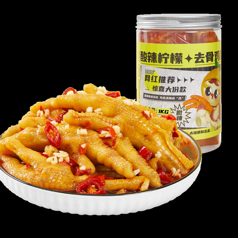 뼈없는 닭 발 500g 통조림 구연산 매운 절인 후추 뼈없는 닭 발 인터넷 유명인 인스턴트 스낵 도매