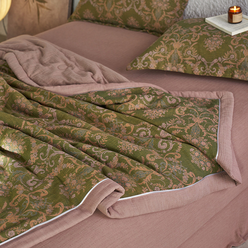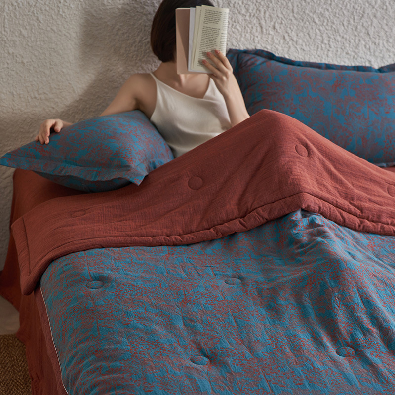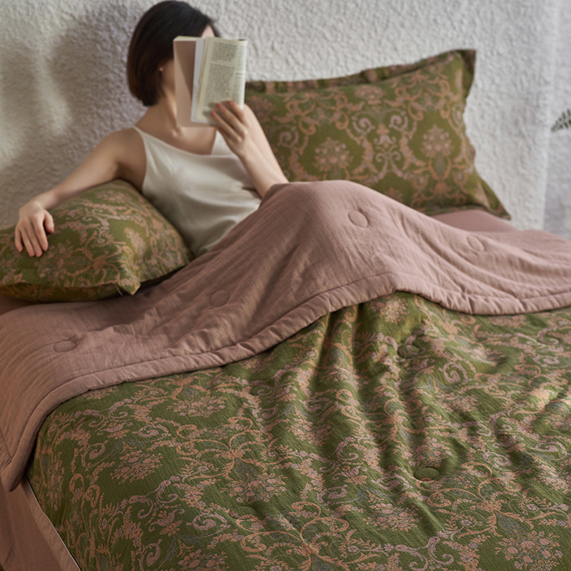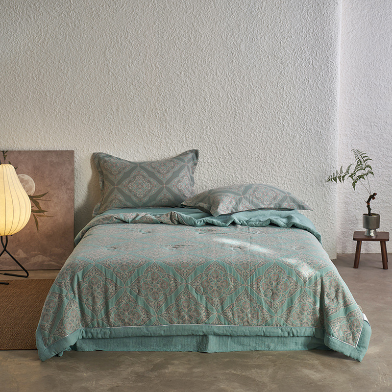 고급 A 형 원사 염색 순면 자카드 이중층 면사 여름 퀼트 4 피스 수분 흡수 및 통기성 폭발을 대신 구입할 수 있습니다.