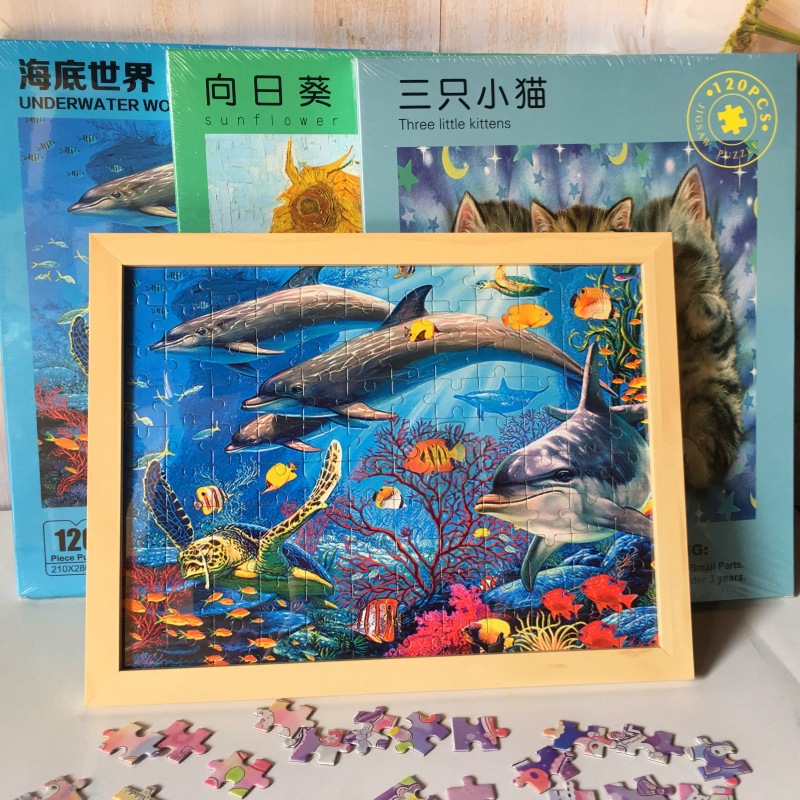 어린이 수제 120피스 종이 퍼즐 조기 교육용 장난감, 남아 여아 지능 개발, 사진 프레임 조립스토어 가기