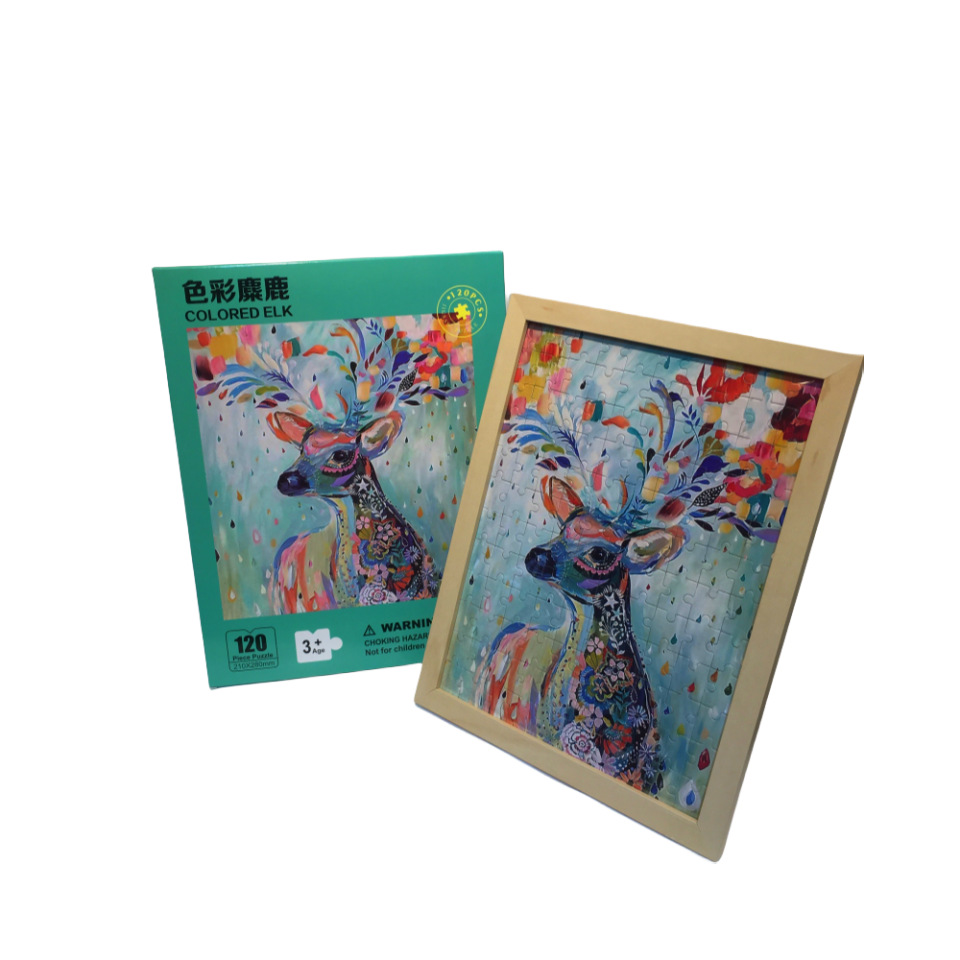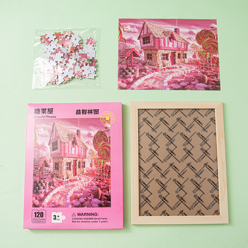 어린이 수제 120피스 종이 퍼즐 조기 교육용 장난감, 남아 여아 지능 개발, 사진 프레임 조립