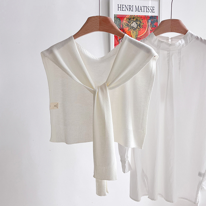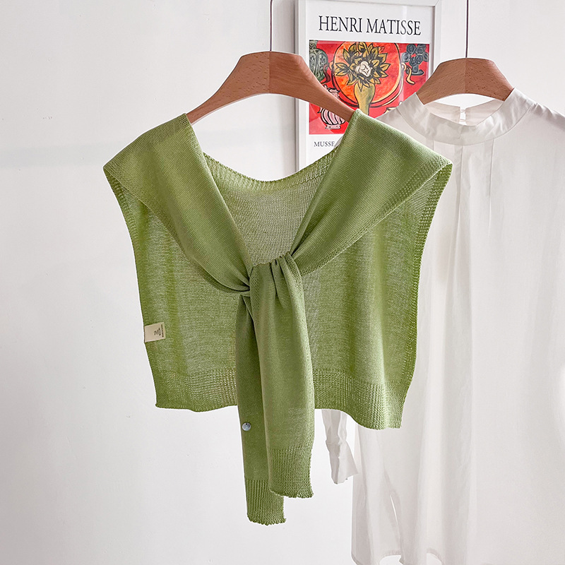 여성 니트 목도리 2024 겉옷 새 봄과 가을 니트 목도리 얇은 인터넷 유명 인사 셔츠 단색 양모 어깨