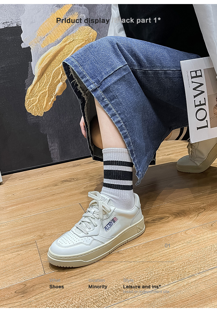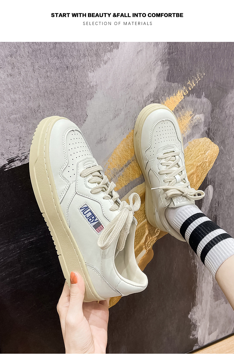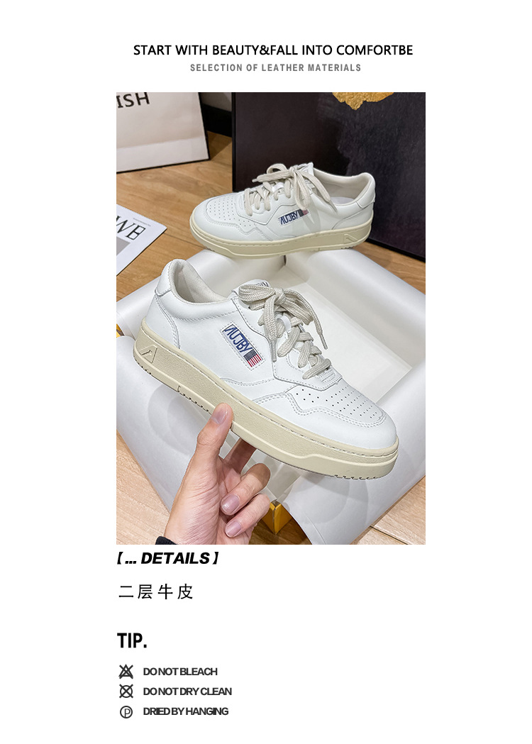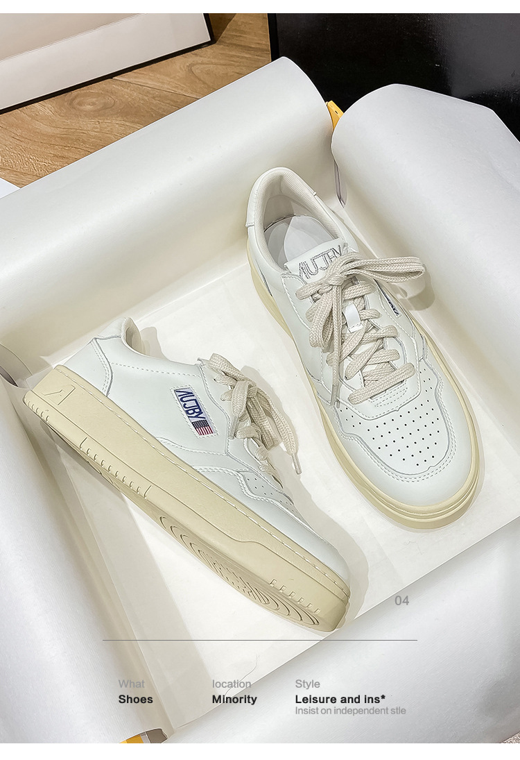 새로운 인기 AU 화이트 신발 소 가죽 신발 스티칭 캐주얼 스니커즈 레트로 라운드 토 레이스 업 틈새 한국 스타일 운동화 여성스토어 가기