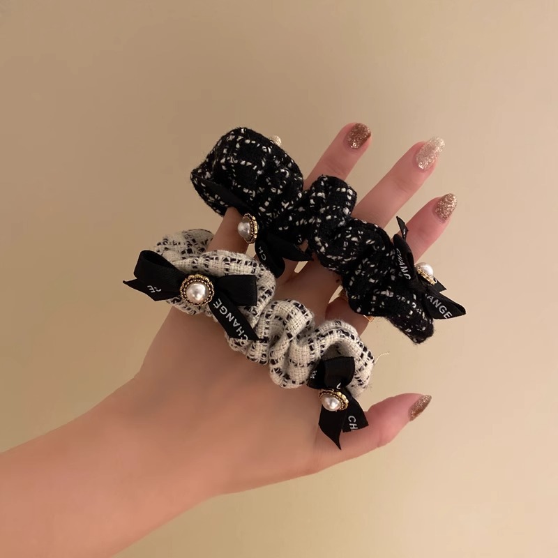 샤넬 스타일 프랑스 스타일 돼지 대장 헤어 밴드 고급 헤어 로프 높은 탄성 고무 밴드 여성 넥타이 헤드 볼 머리 머리 머리 장식 헤어 액세서리