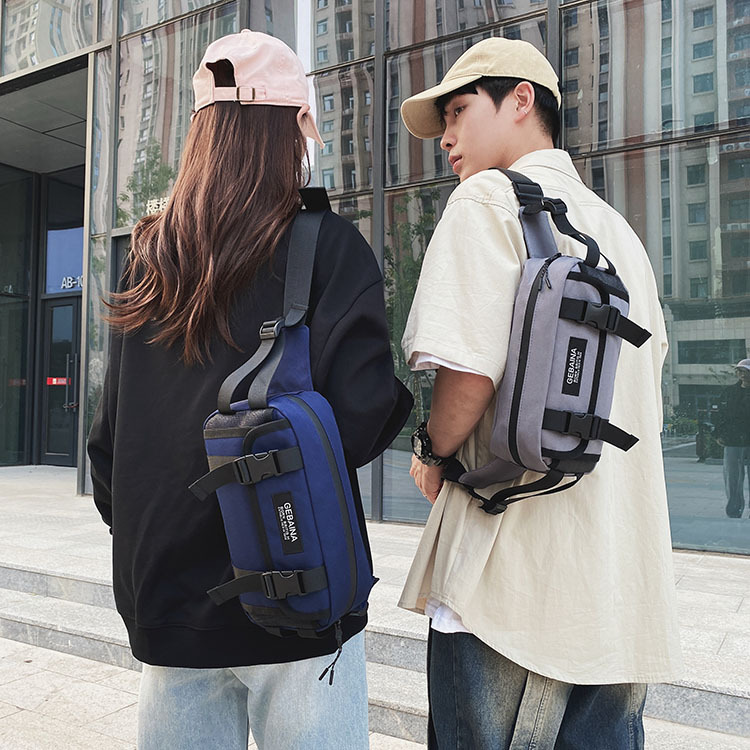 레저 스포츠 허리 가방 야외 달리기 가슴 가방 캔버스 메신저 가방 다기능 계산원 남성과 여성 휴대 전화 걷기를 타고