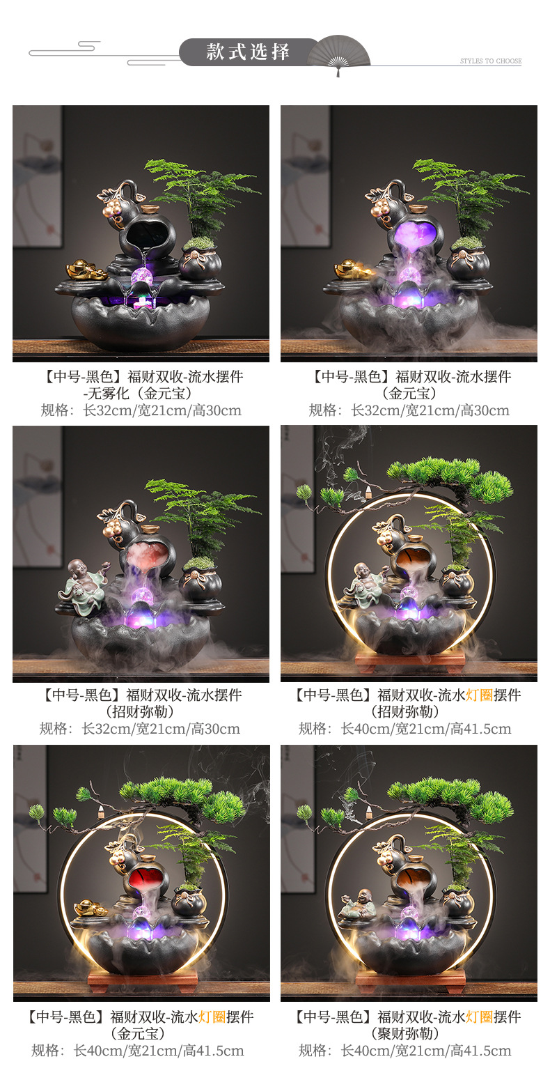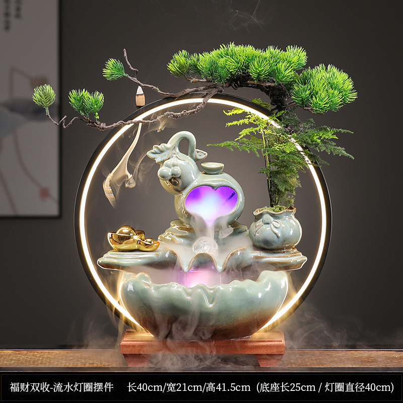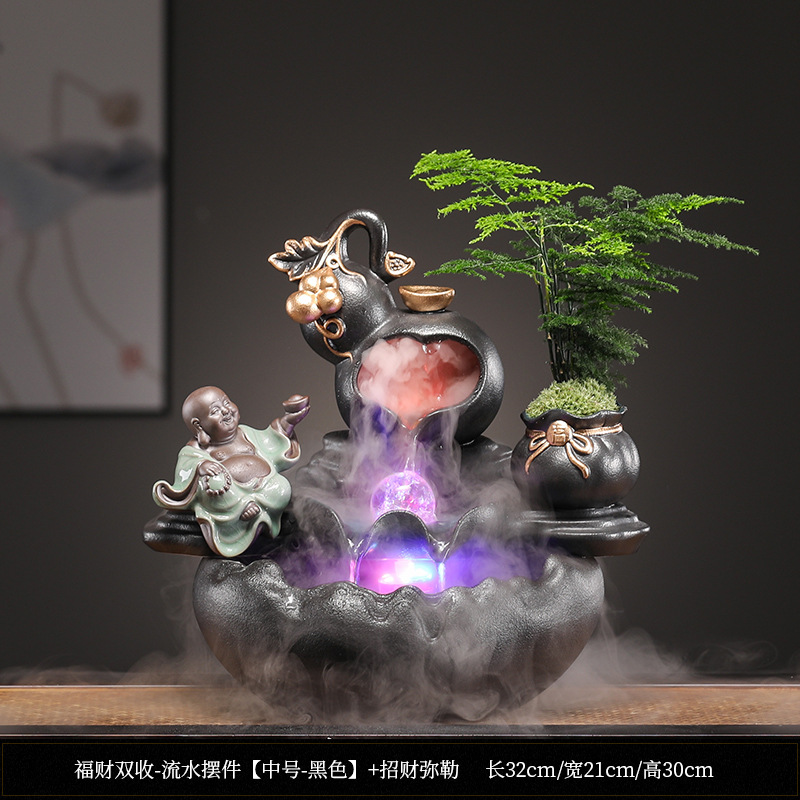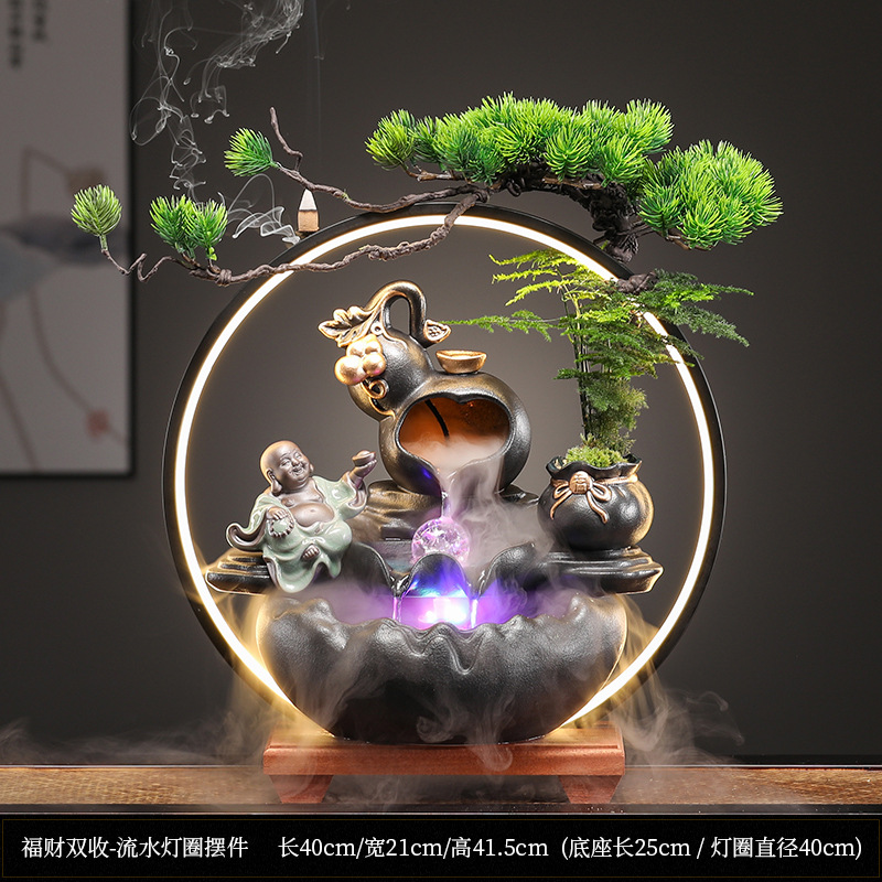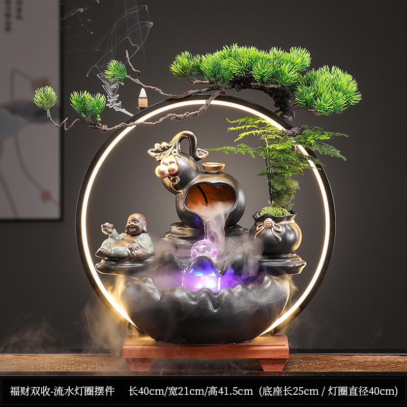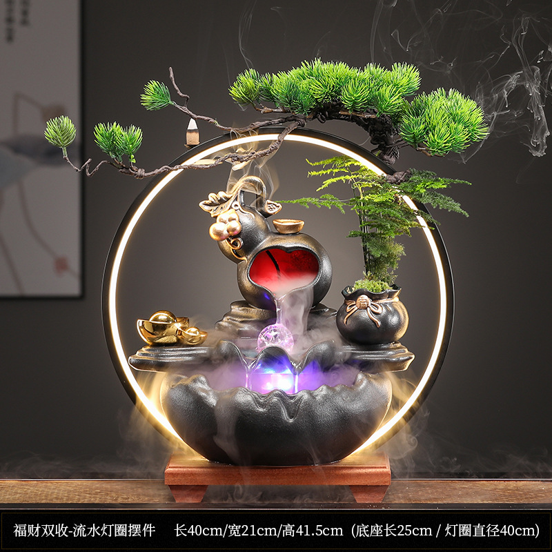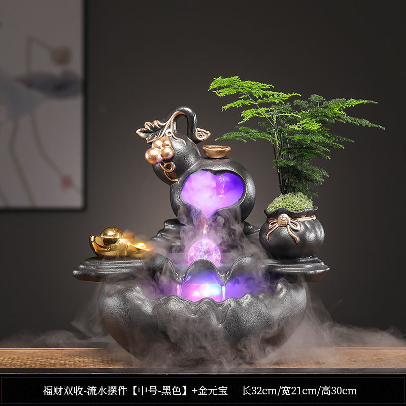 • [블랙] 행운의 더블 컬렉션-물 램프 링 장식 (Jucai Maile) 대나무 + 역류 향 + 분무기를 보내