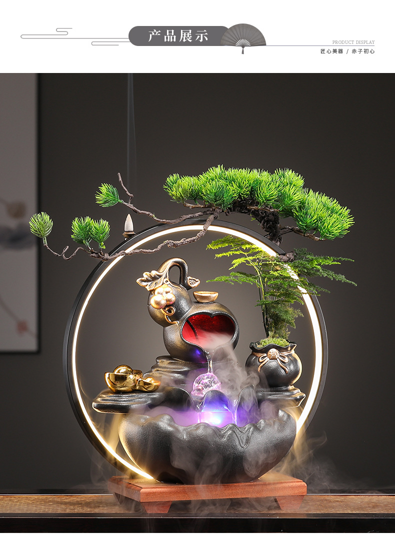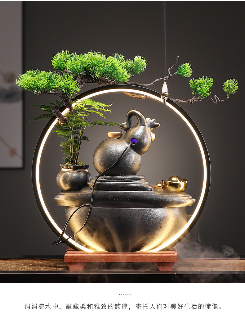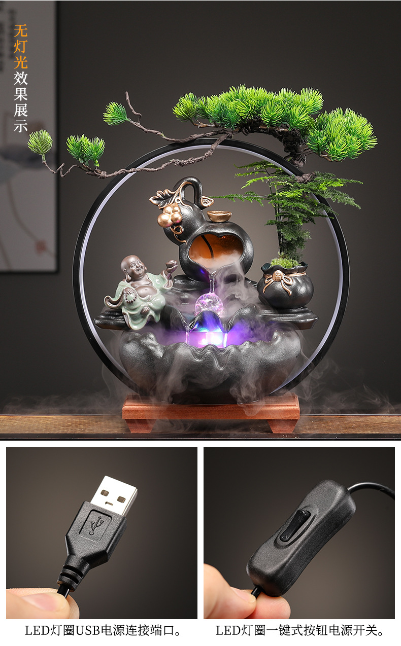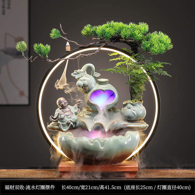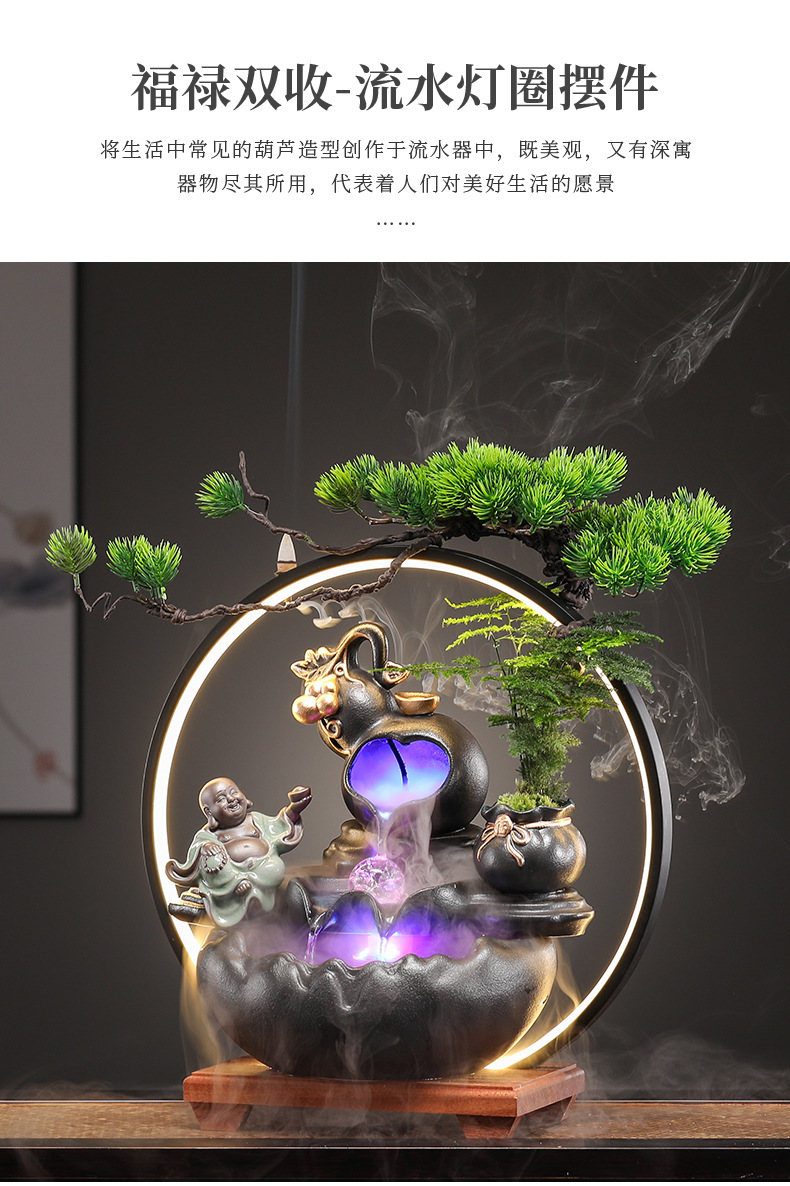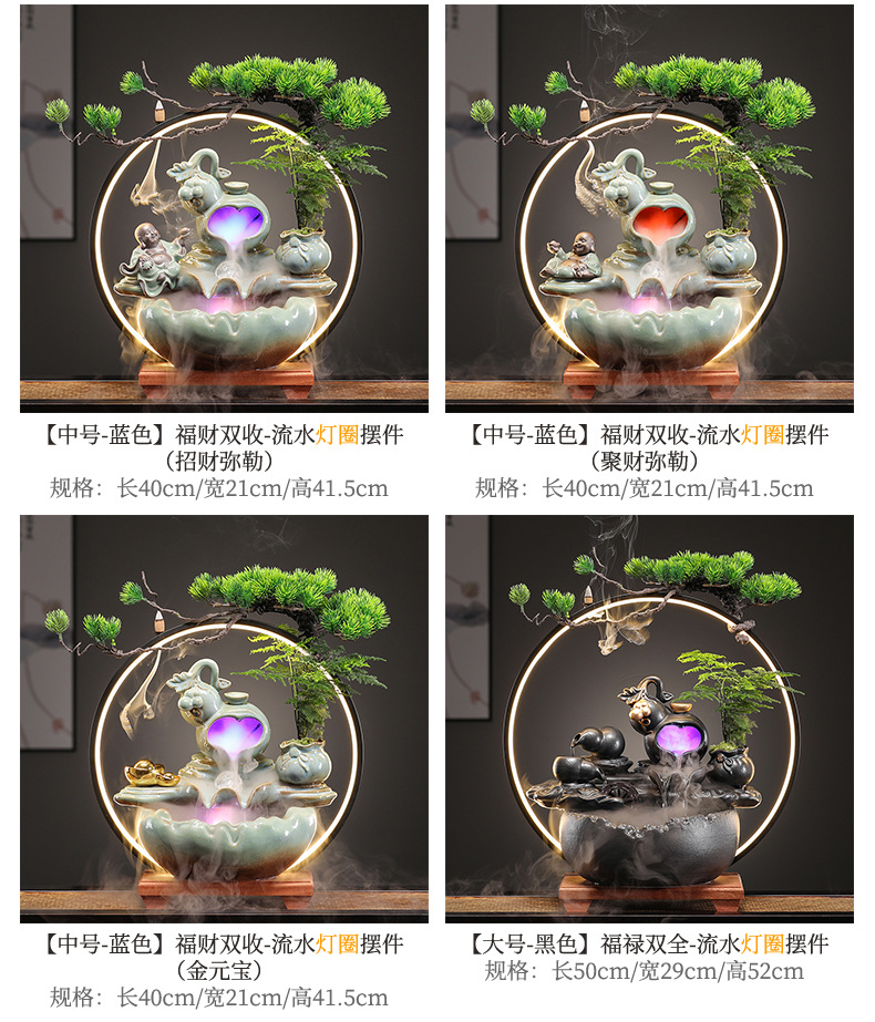 • [블랙] 행운의 더블 컬렉션-물 램프 링 장식 (Jucai Maile) 대나무 + 역류 향 + 분무기를 보내