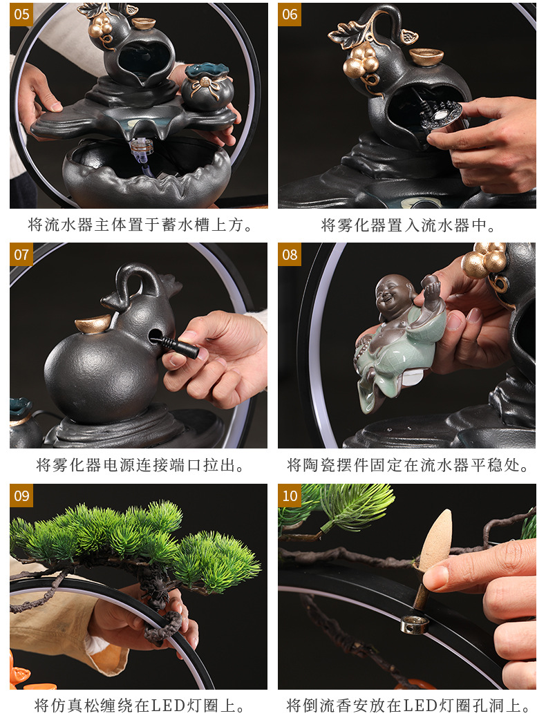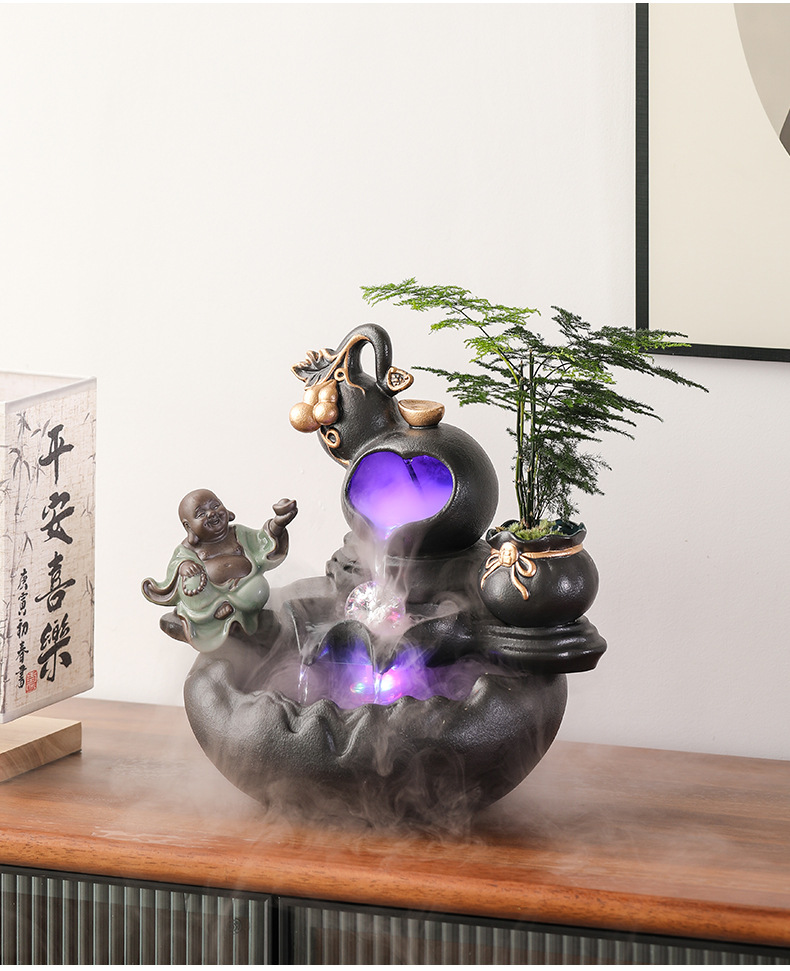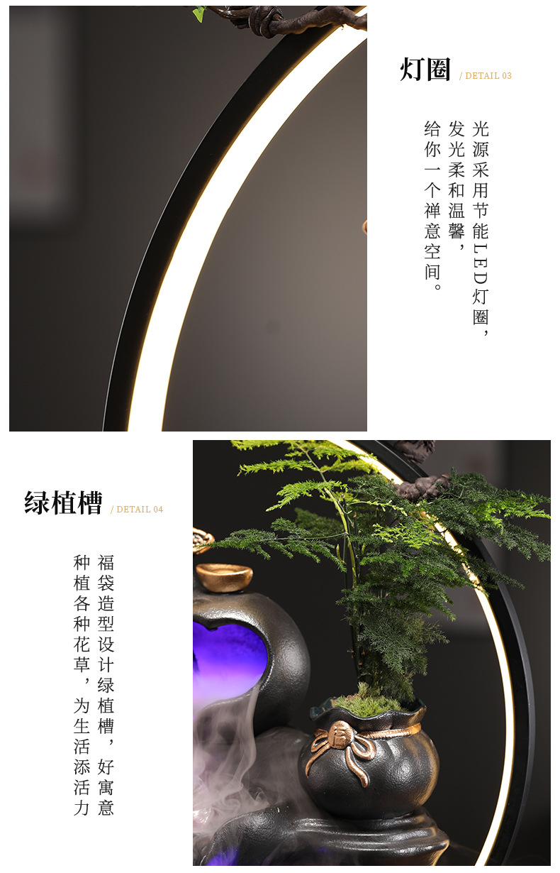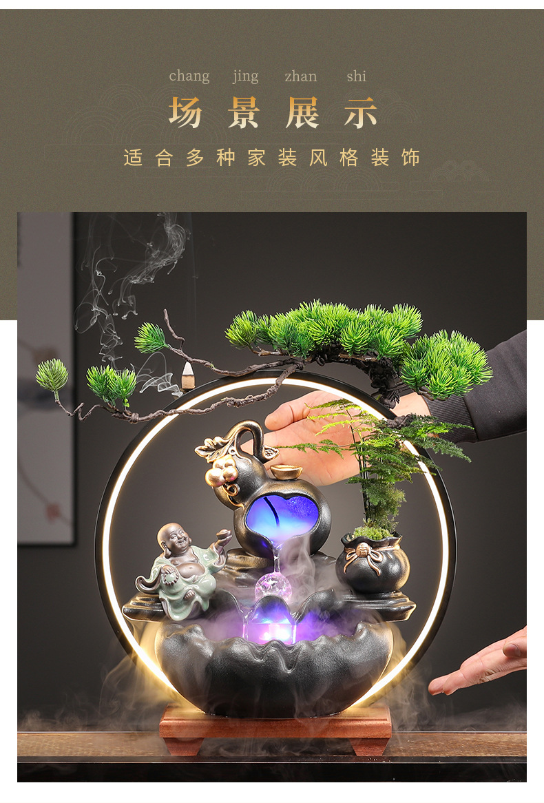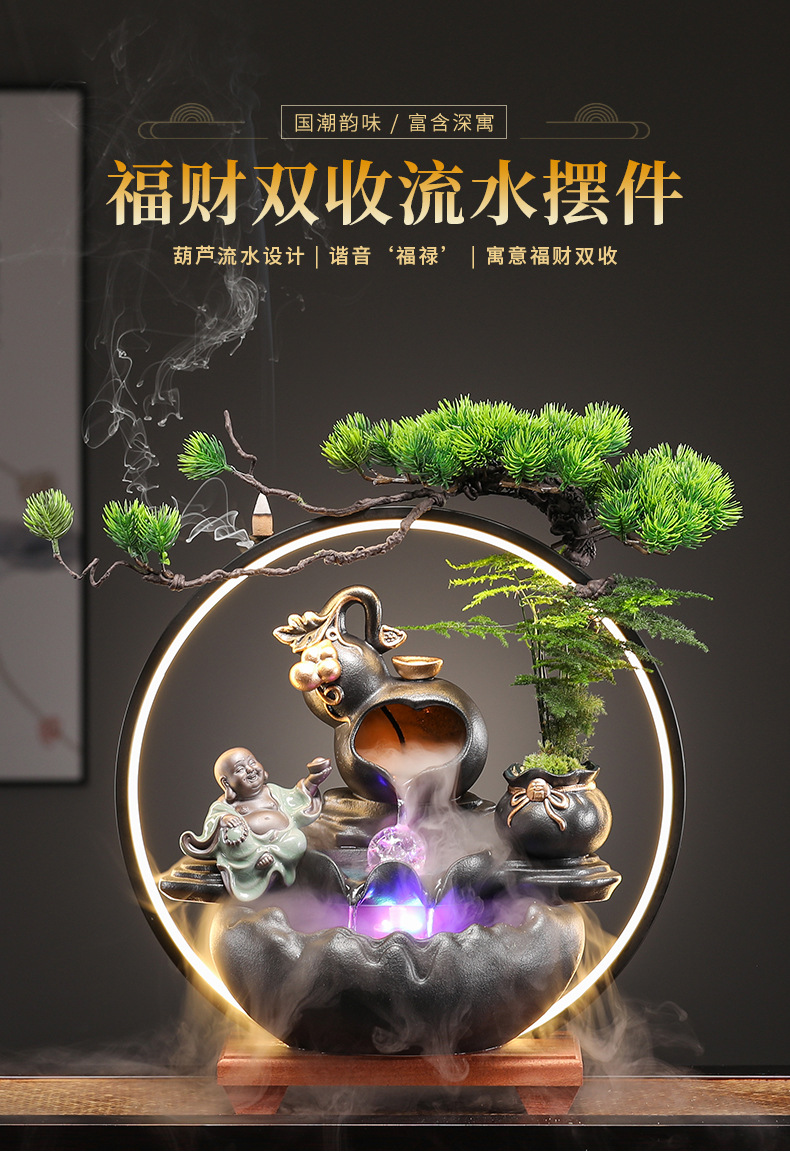 • [블랙] 행운의 더블 컬렉션-물 램프 링 장식 (Jucai Maile) 대나무 + 역류 향 + 분무기를 보내