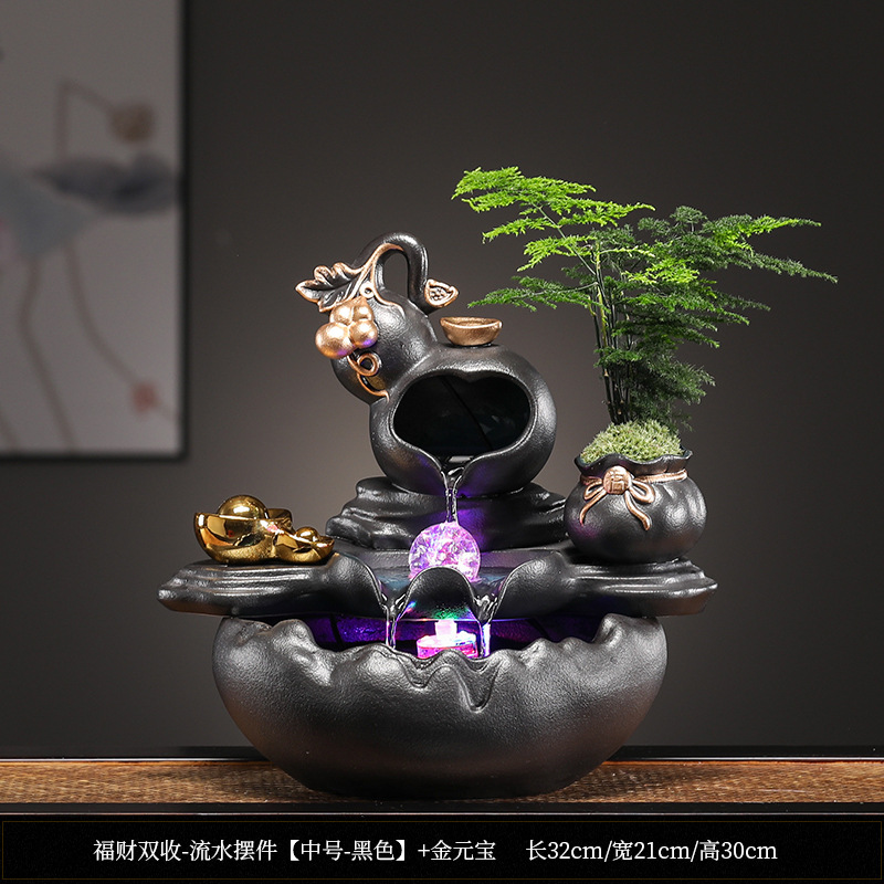 • [블랙] 포춘 더블 컬렉션 흐르는 물 장식품 (금 잉곳) 대나무를 보내