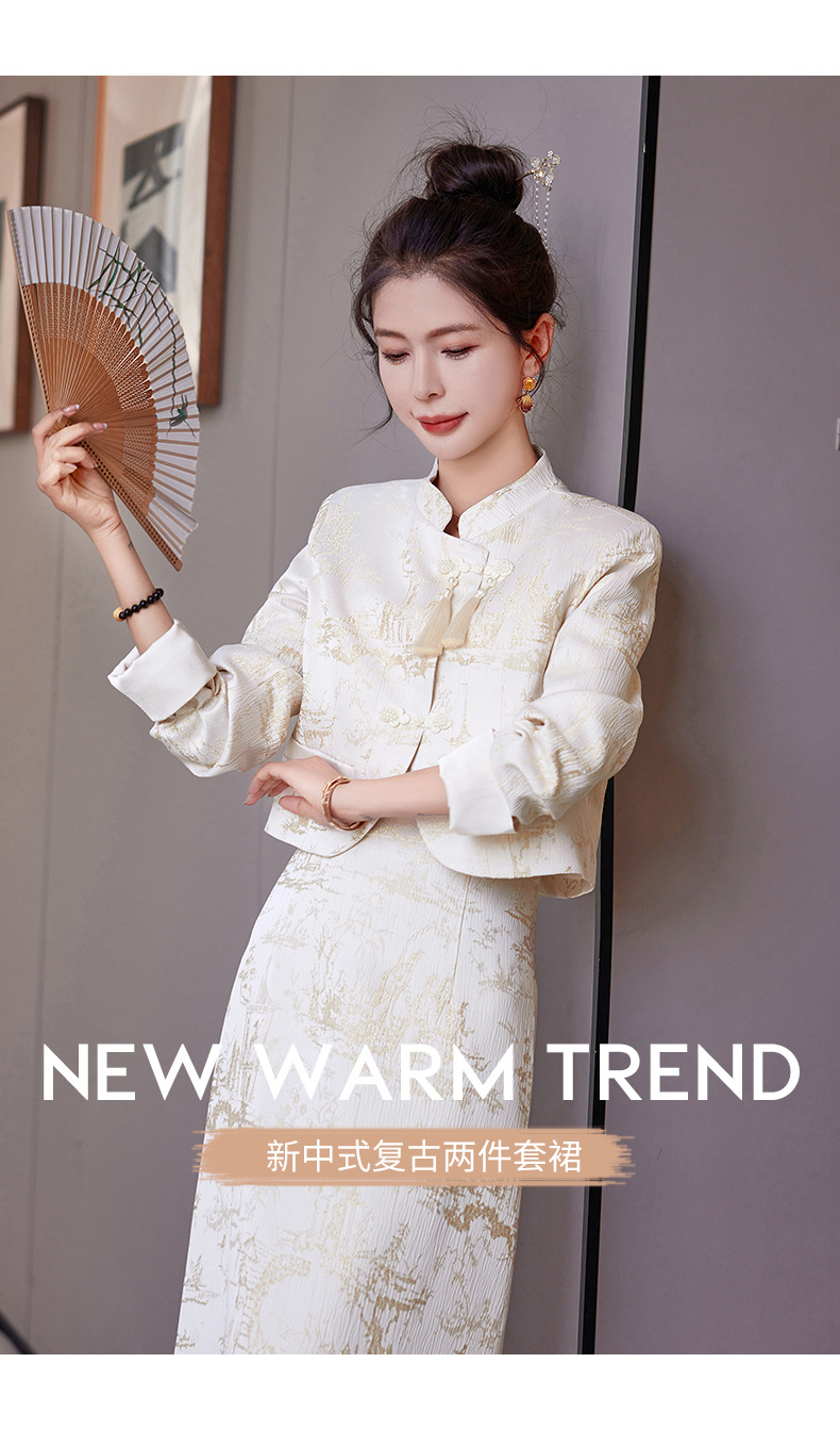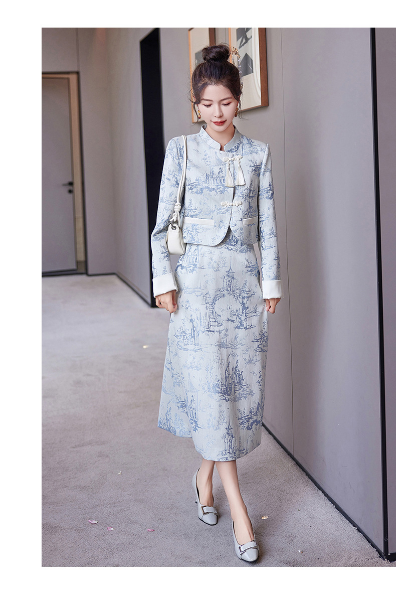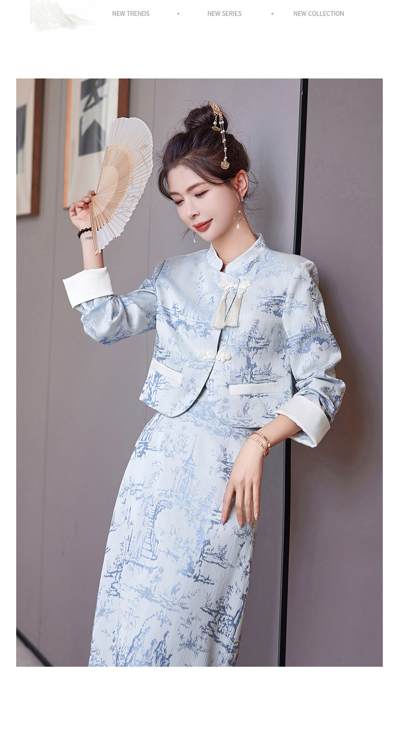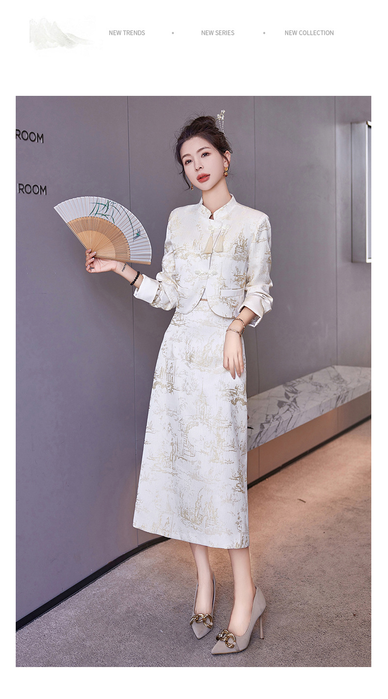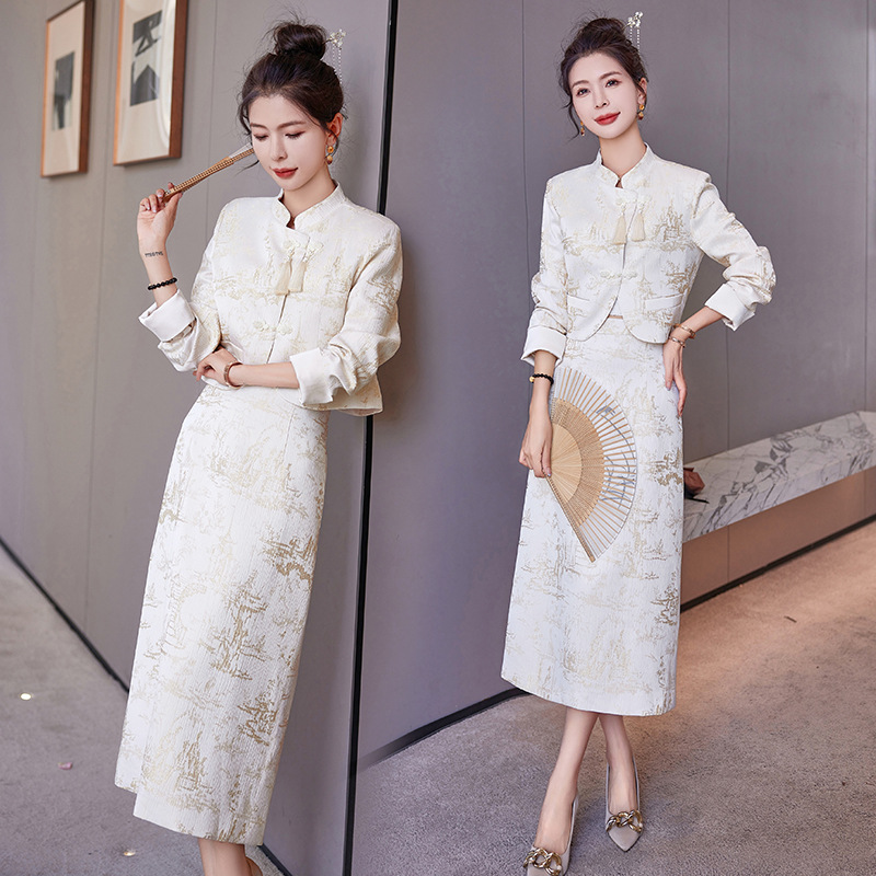 신중국풍 개량 치파오 세트 여성용 봄 가을 신상 기품 있는 중국풍 스커트 투피스 세트 ZQ88016