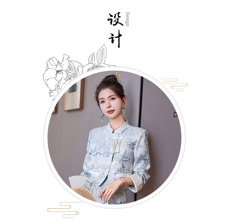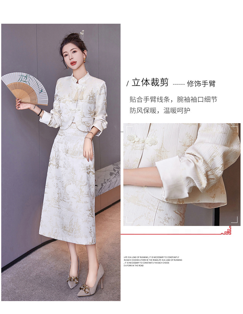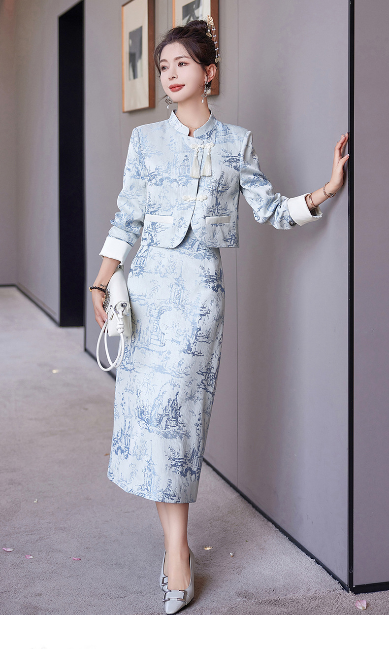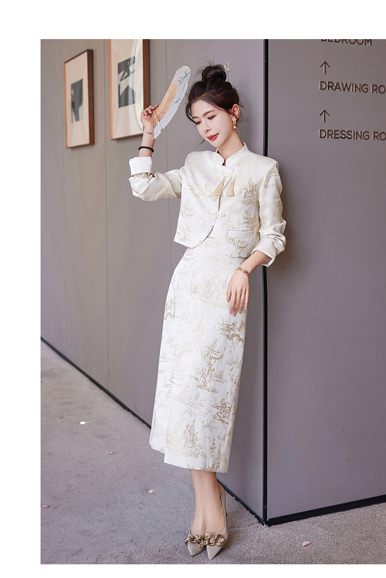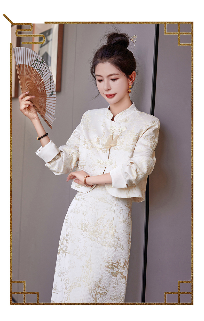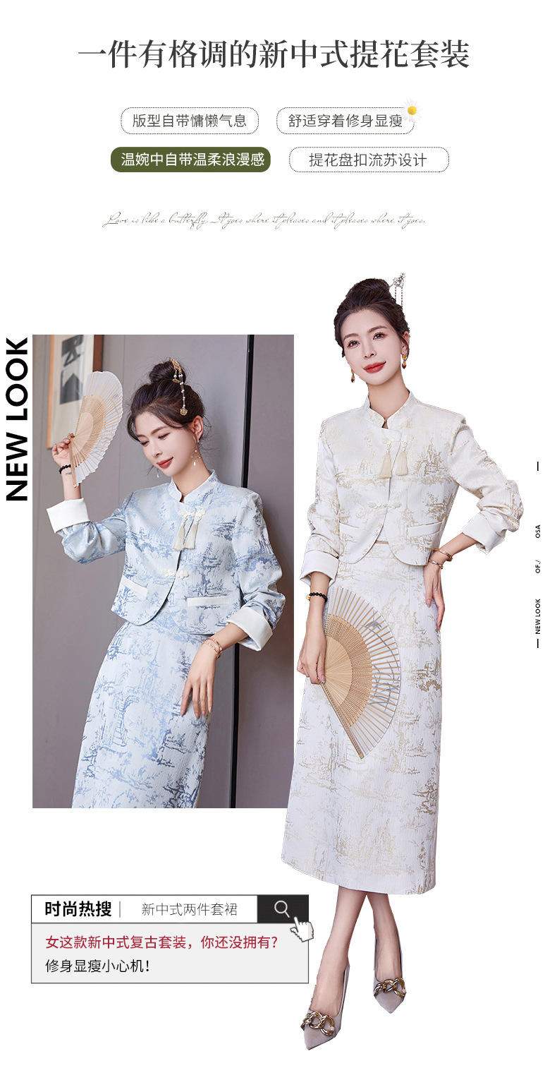 신중국풍 개량 치파오 세트 여성용 봄 가을 신상 기품 있는 중국풍 스커트 투피스 세트 ZQ88016