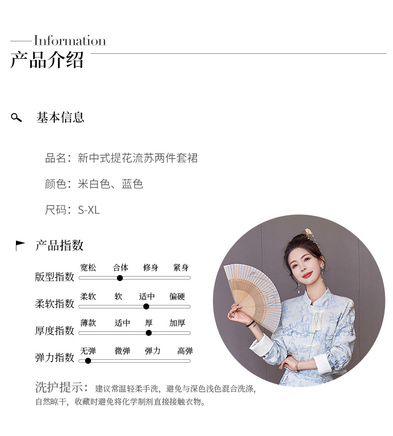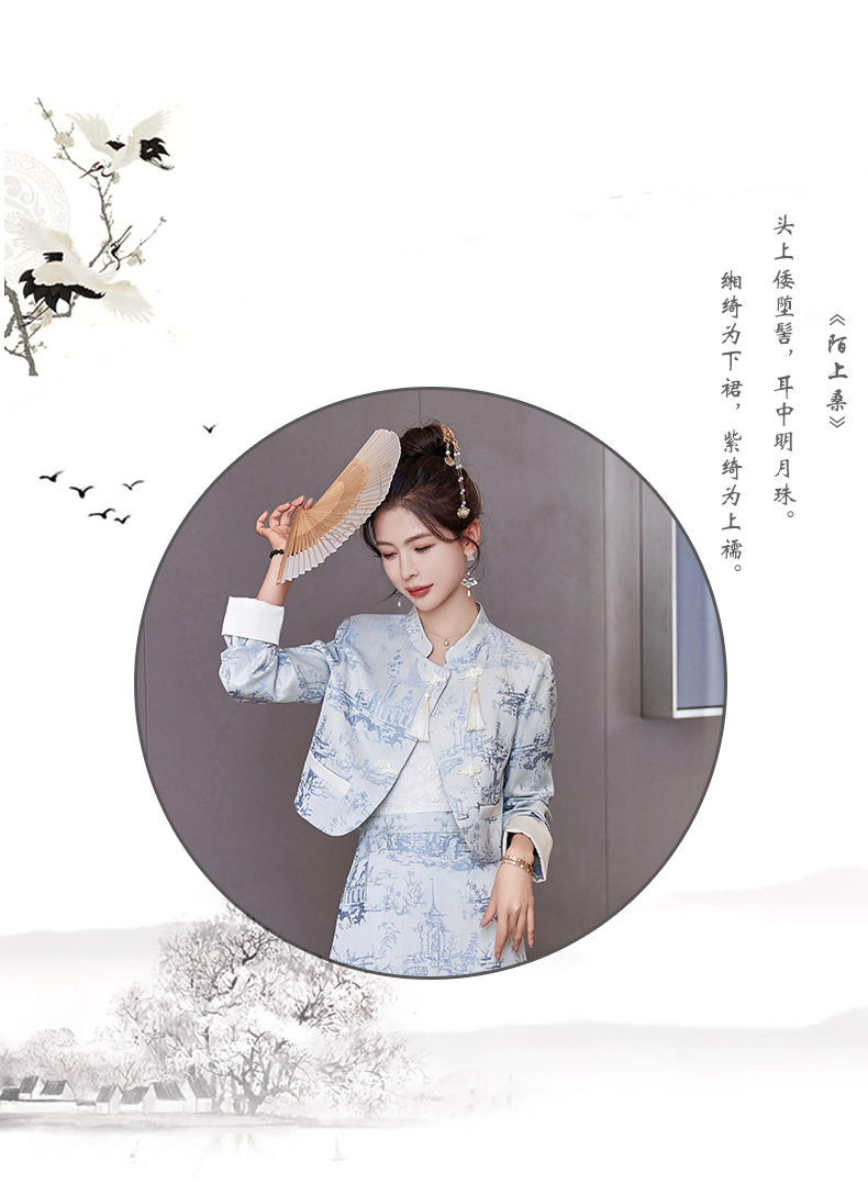 신중국풍 개량 치파오 세트 여성용 봄 가을 신상 기품 있는 중국풍 스커트 투피스 세트 ZQ88016스토어 가기