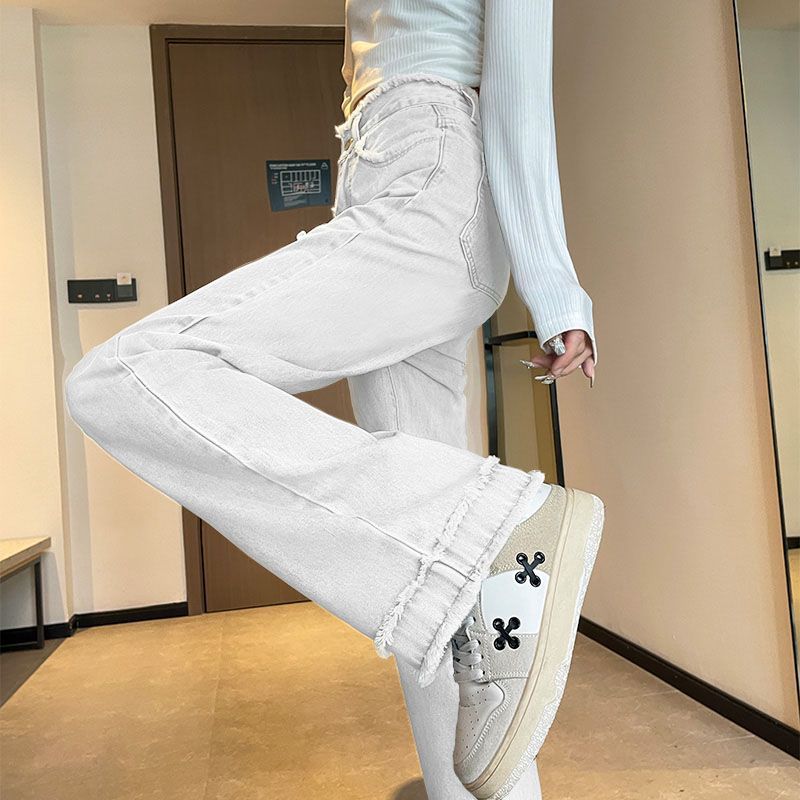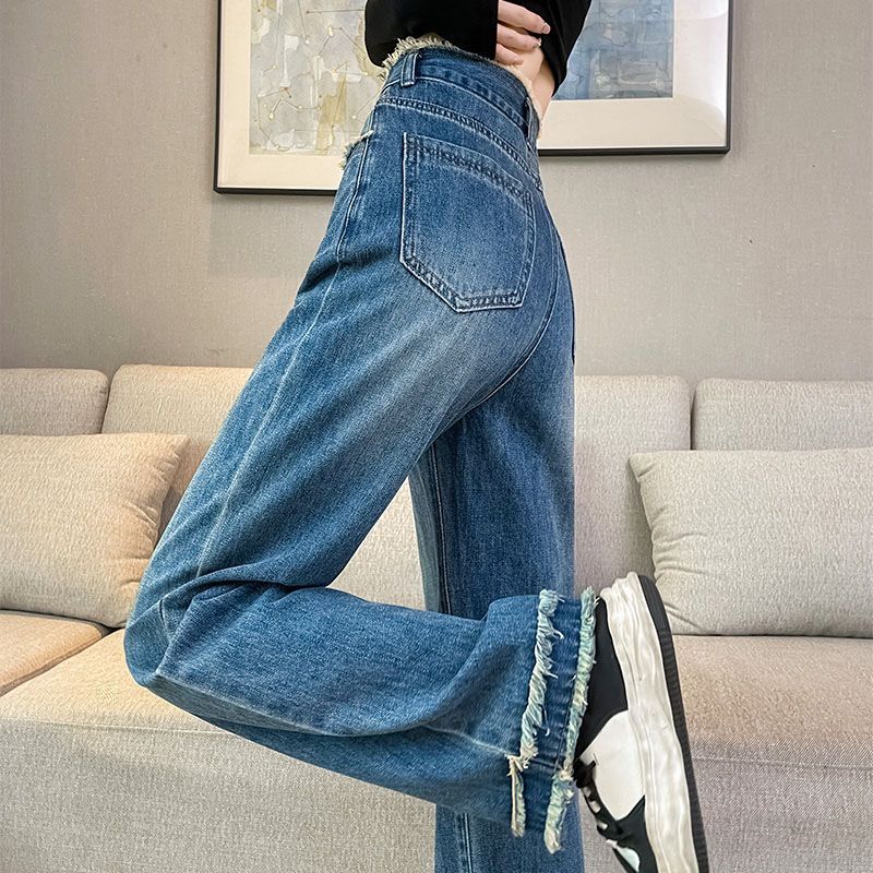 넓은 다리 바지 디자인 복고풍 좁은 직선 청바지 여성 2024 새로운 높은 허리 허리 슬리밍 웨스턴 스타일스토어 가기