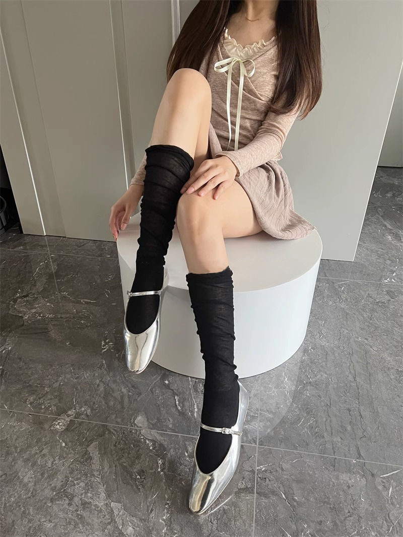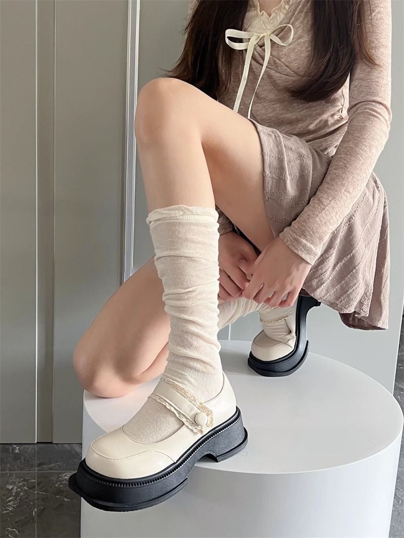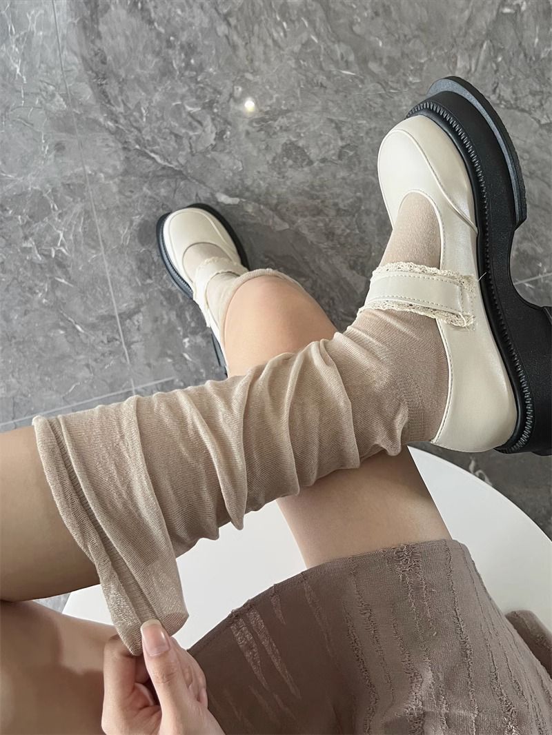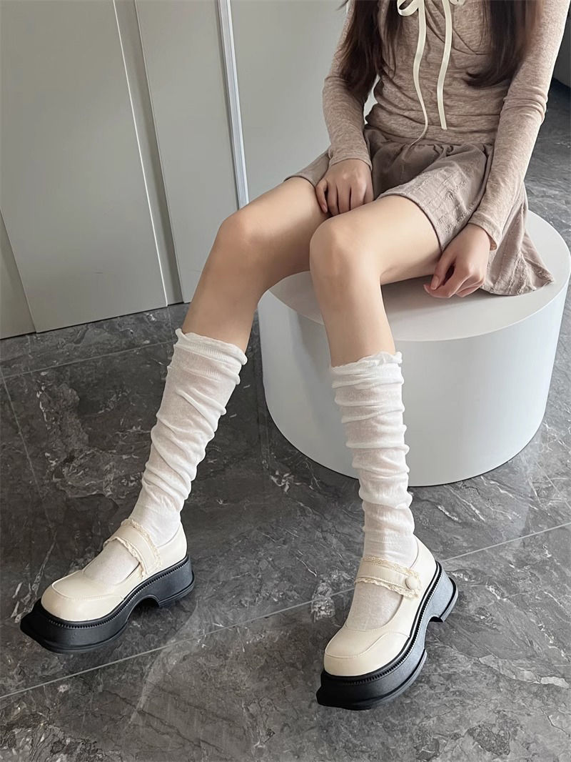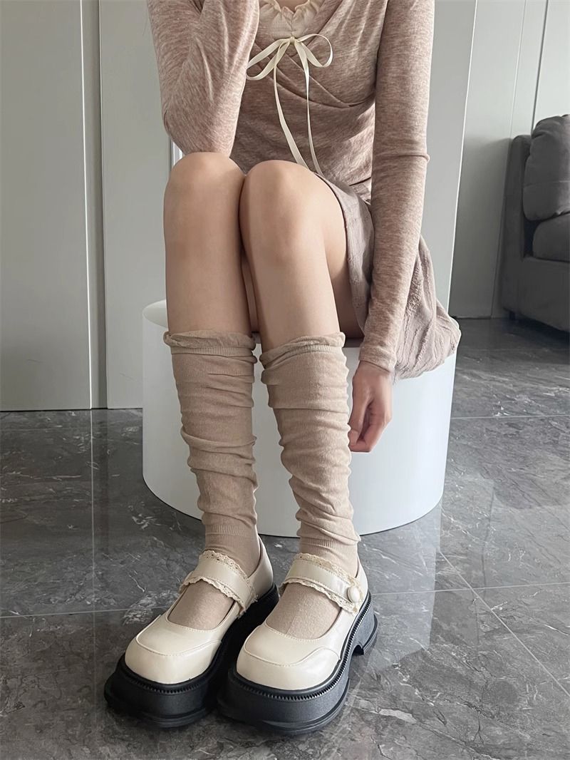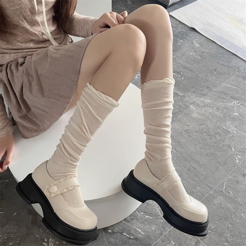 송아지 양말 여성의 봄과 가을 얇은 높은 모양의 거품 입 바느질 양말 일본 아이보리 스타킹 더미 양말