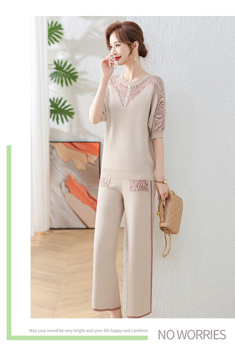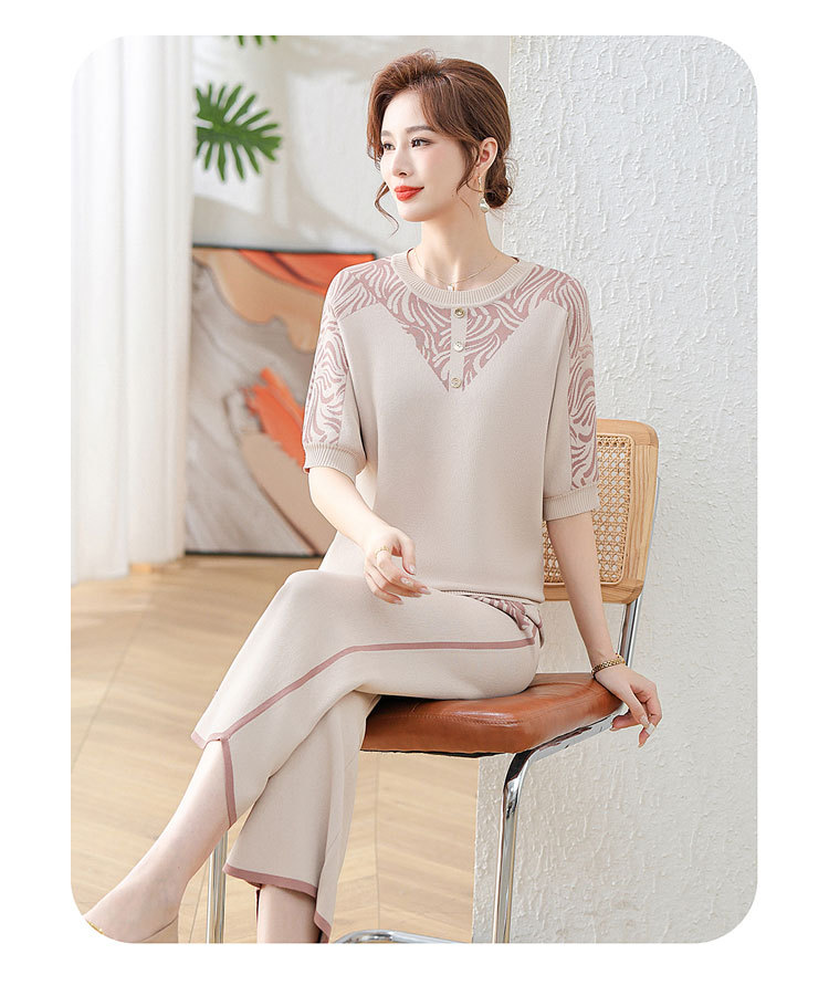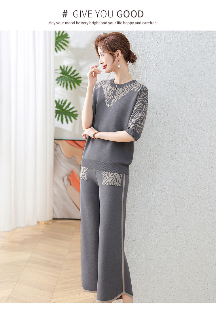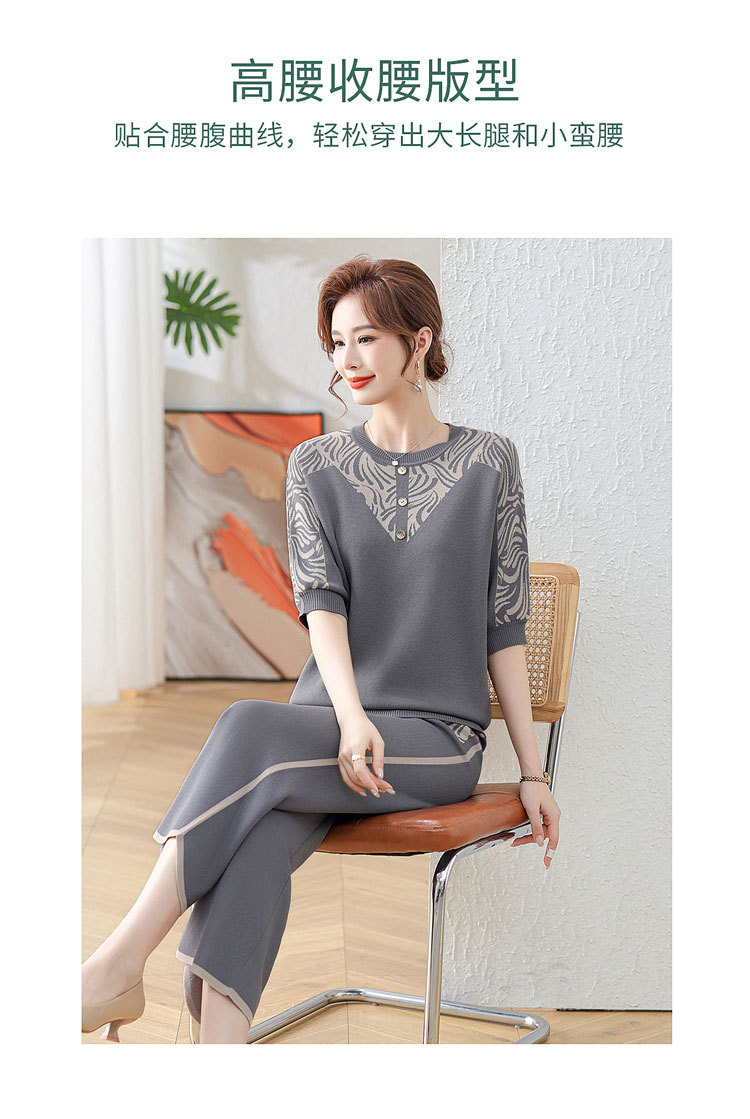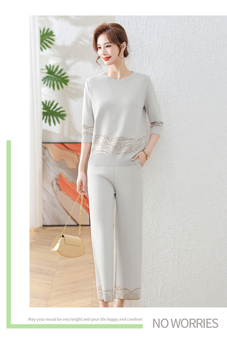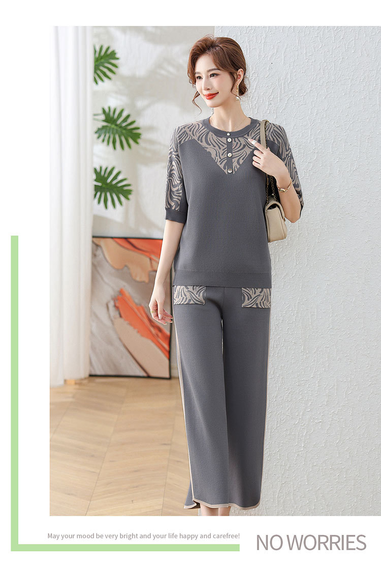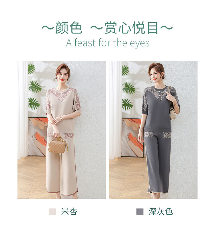 중년 엄마는 봄과 가을 패션 투피스 세트 새로운 중년 및 노인 여성 캐주얼 반팔 아이스 실크 스포츠웨어 세트 착용
