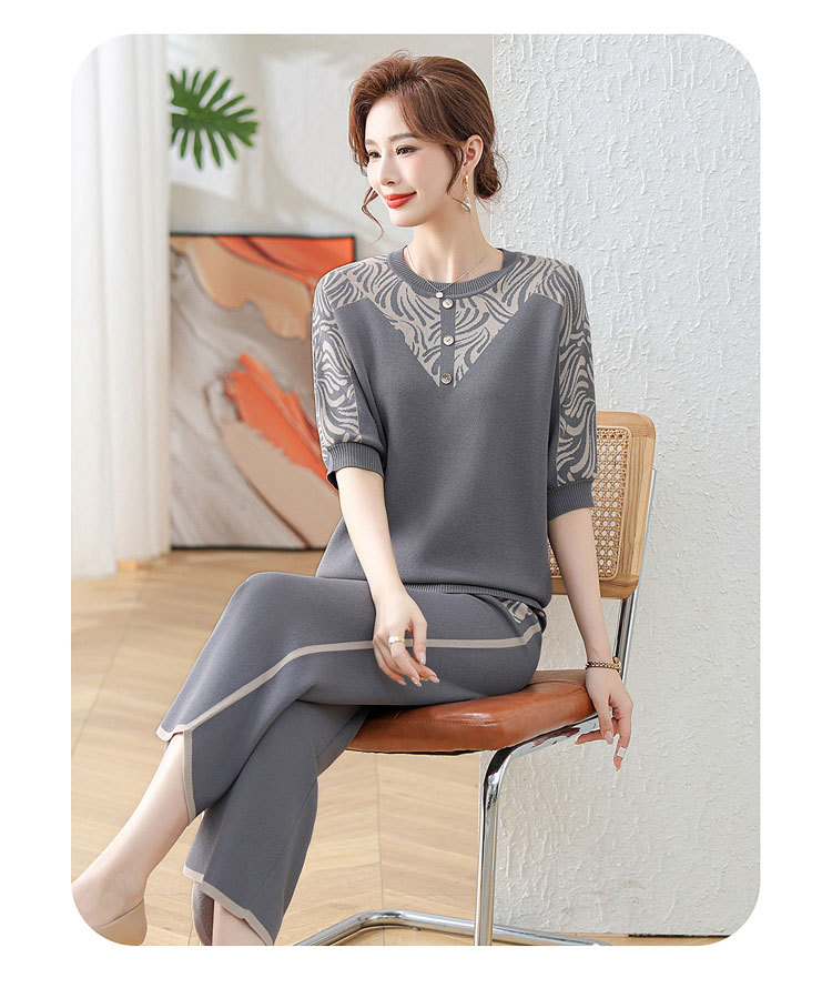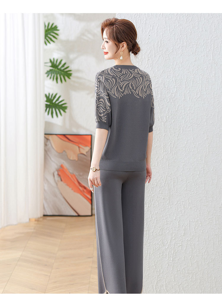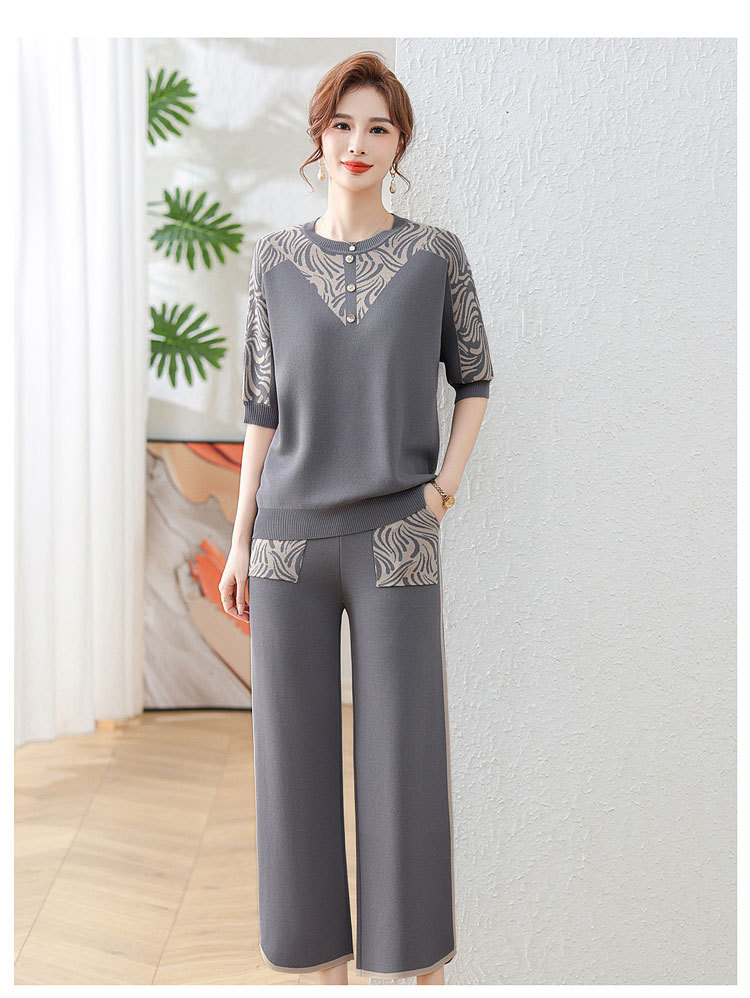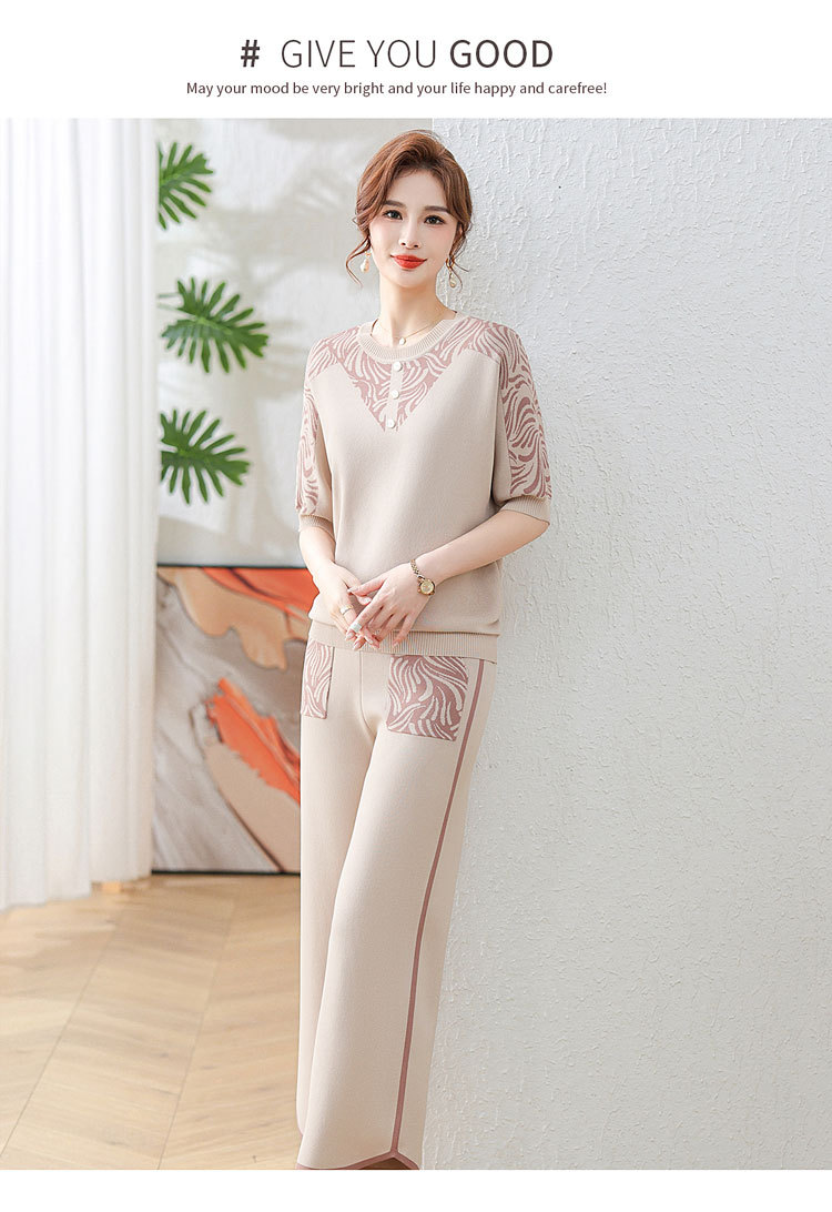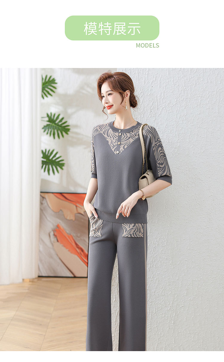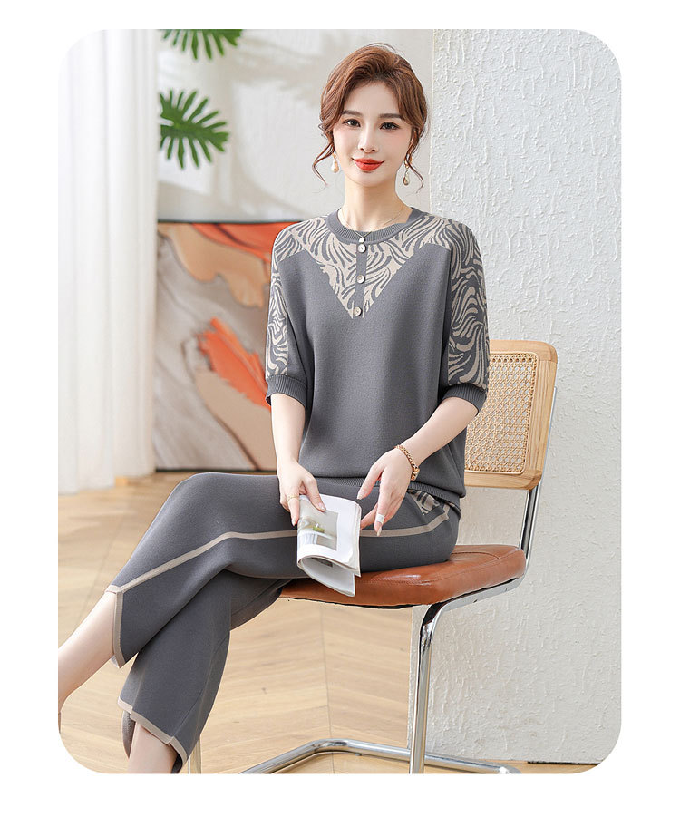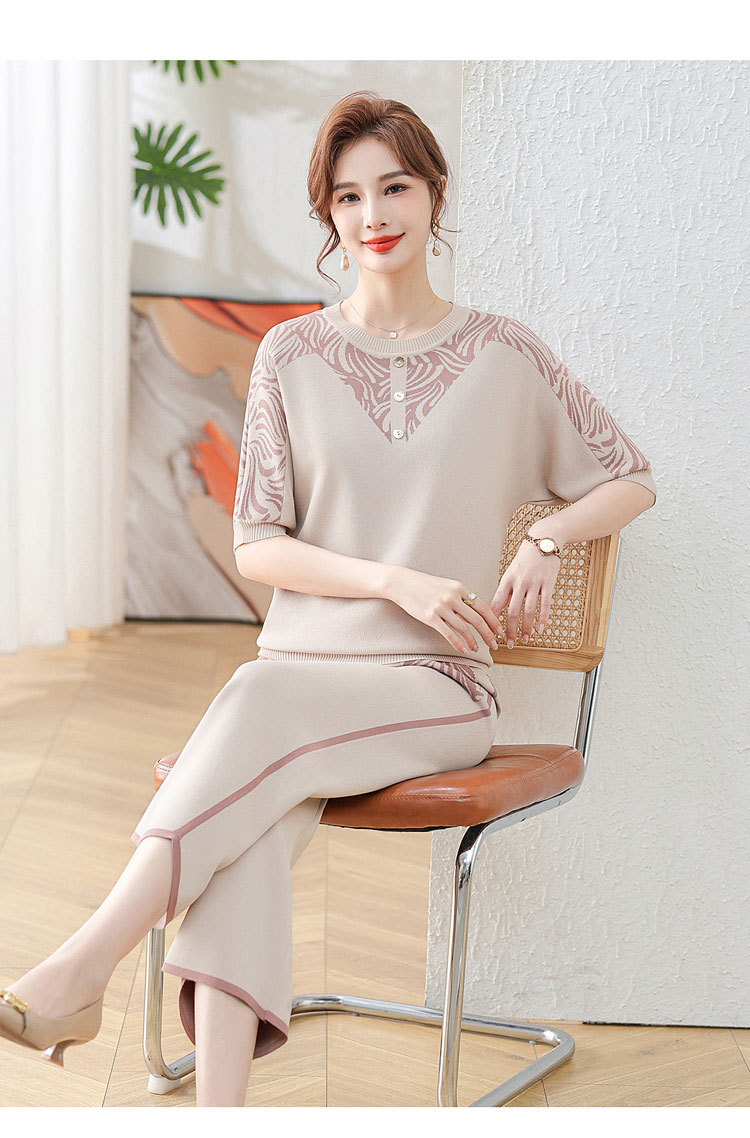 중년 엄마는 봄과 가을 패션 투피스 세트 새로운 중년 및 노인 여성 캐주얼 반팔 아이스 실크 스포츠웨어 세트 착용