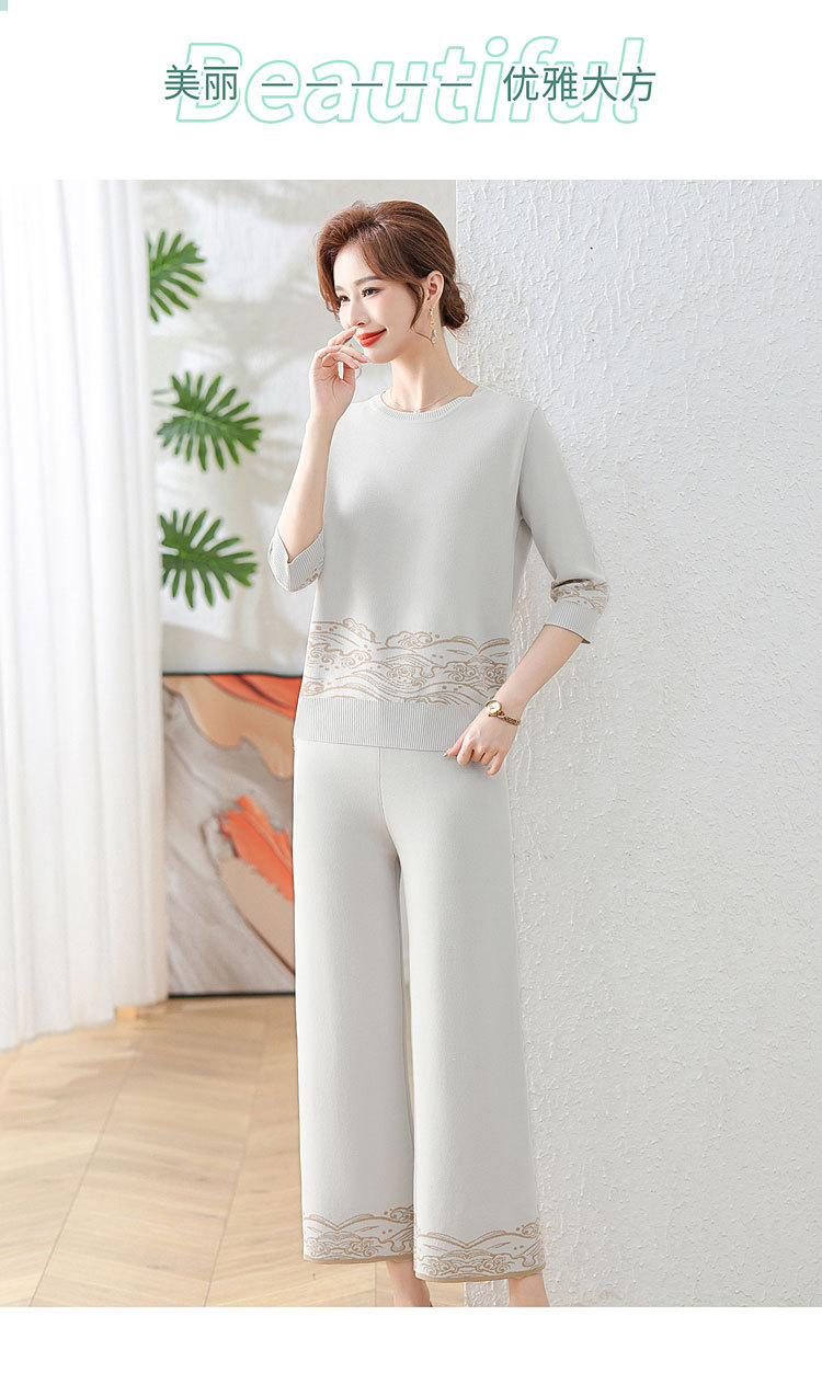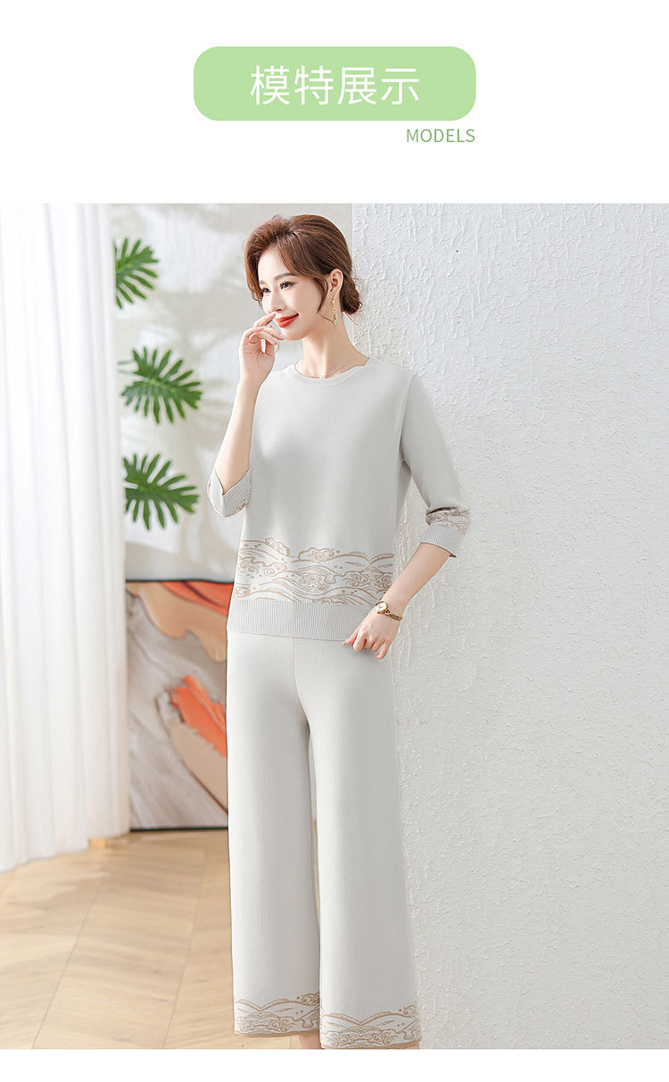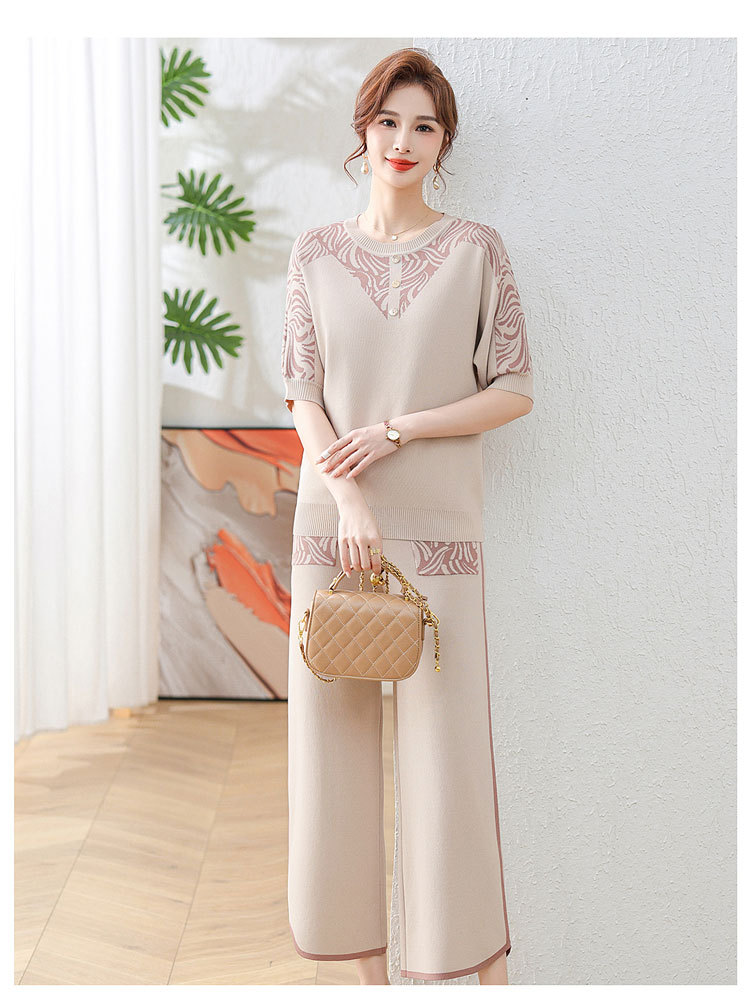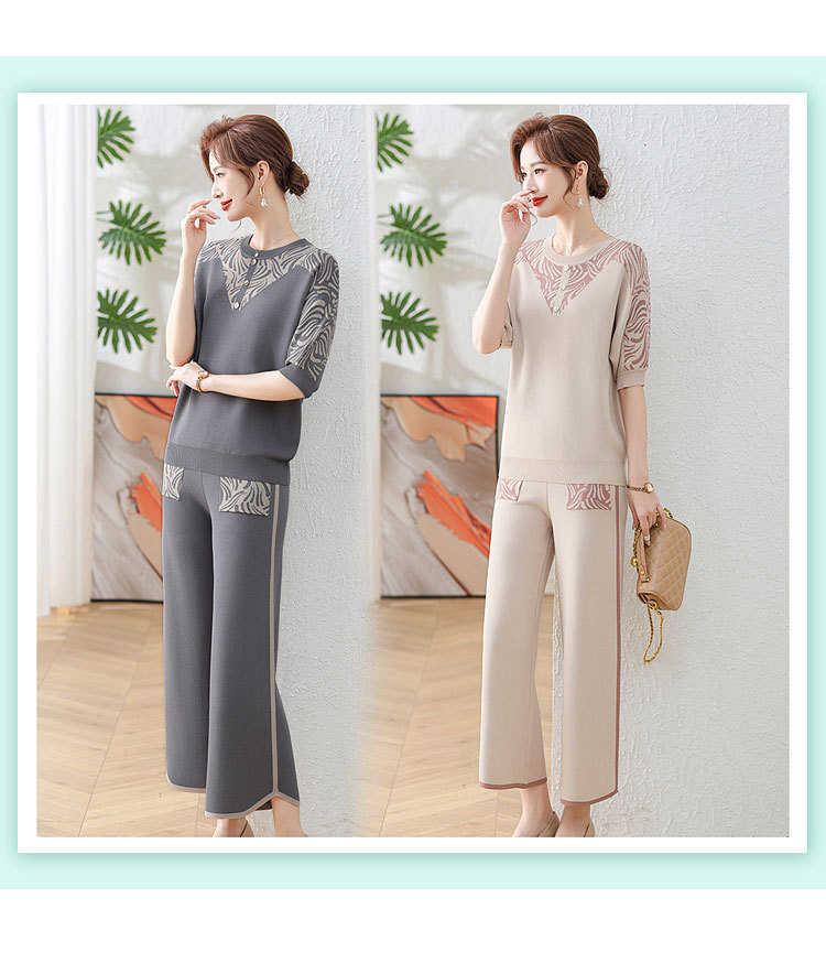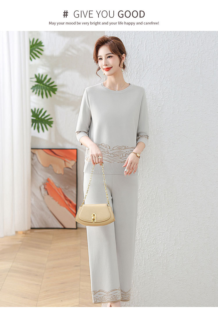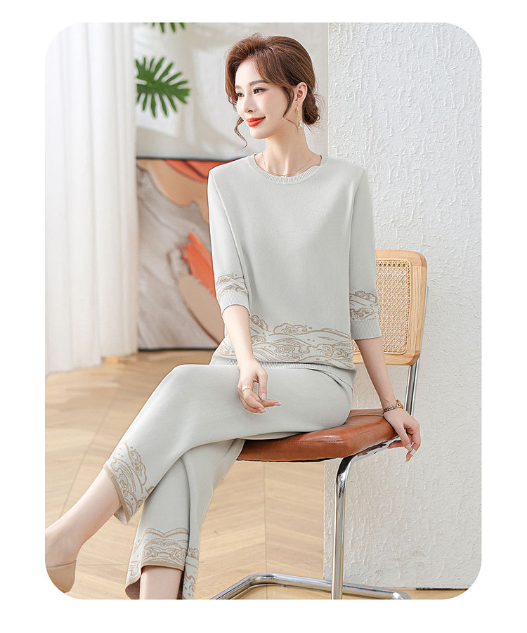 중년 엄마는 봄과 가을 패션 투피스 세트 새로운 중년 및 노인 여성 캐주얼 반팔 아이스 실크 스포츠웨어 세트 착용