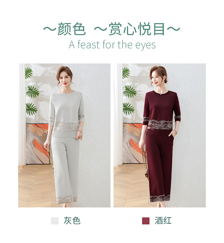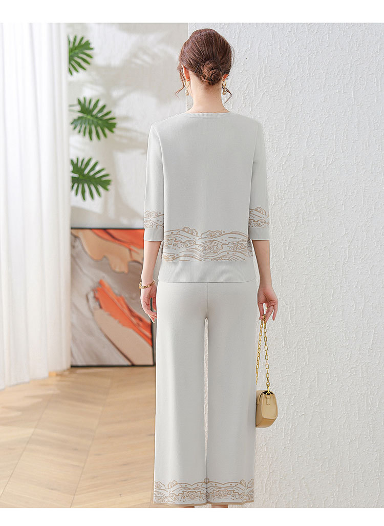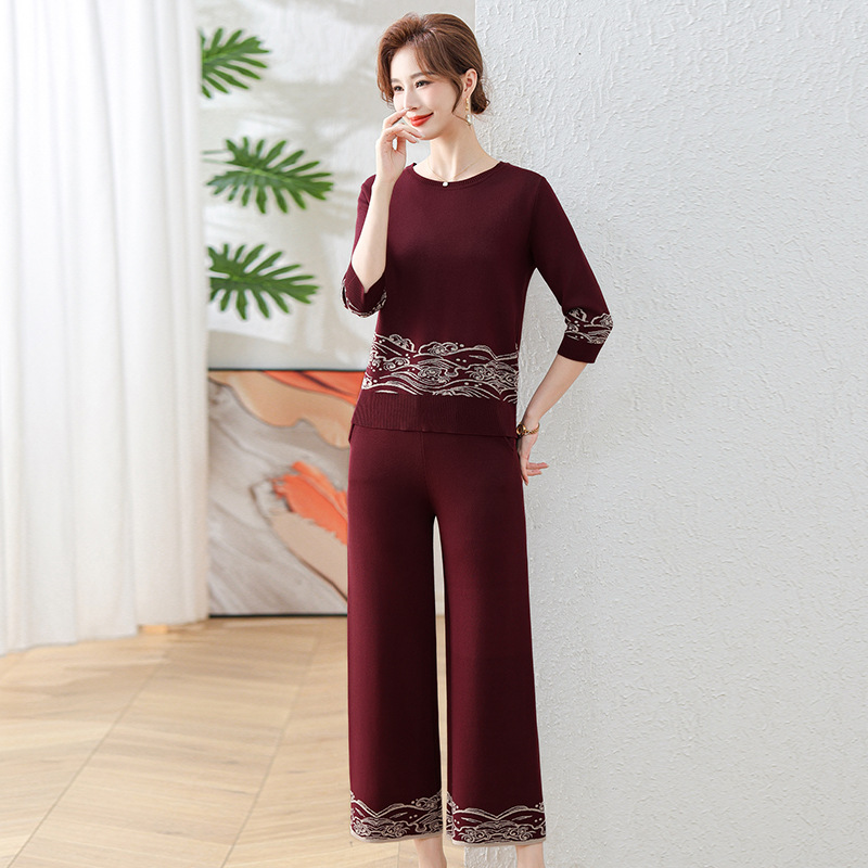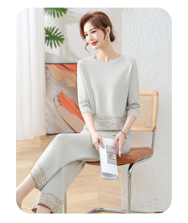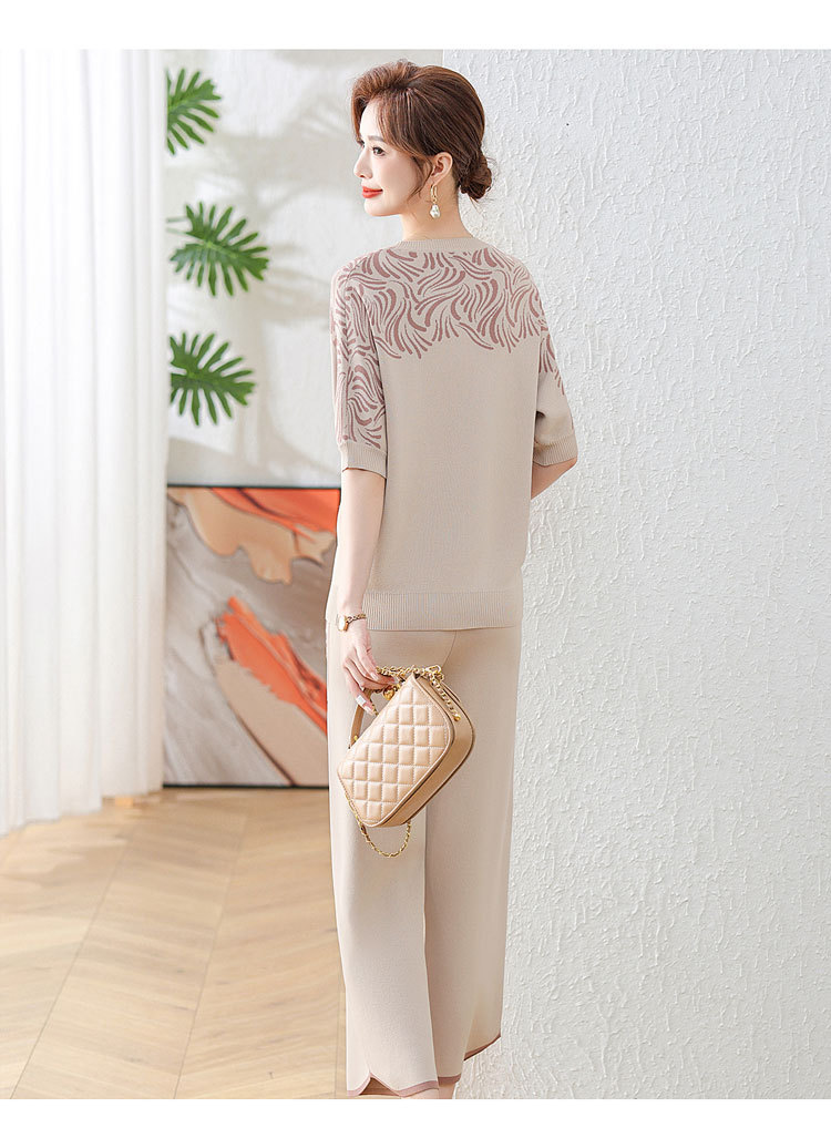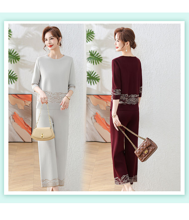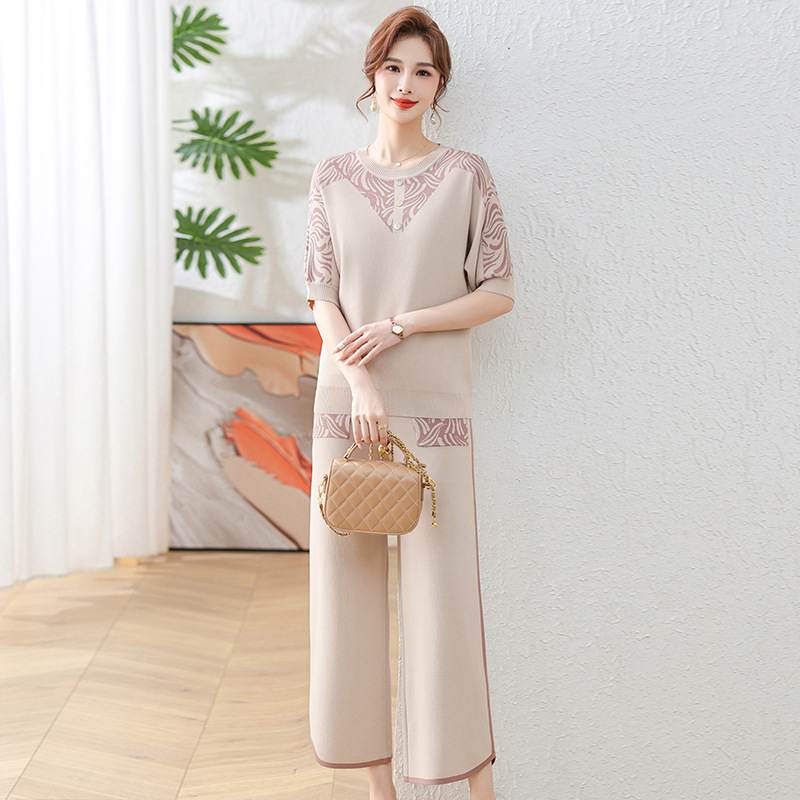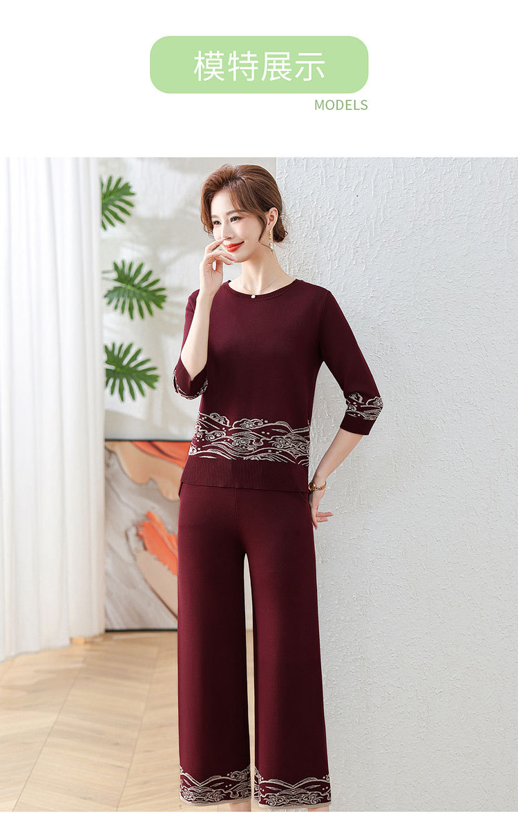 중년 엄마는 봄과 가을 패션 투피스 세트 새로운 중년 및 노인 여성 캐주얼 반팔 아이스 실크 스포츠웨어 세트 착용