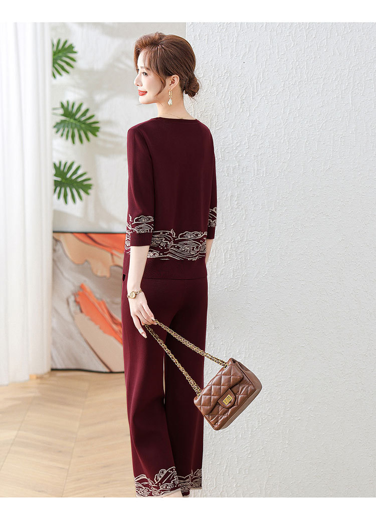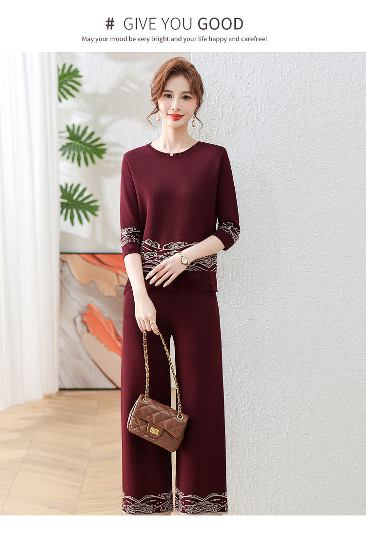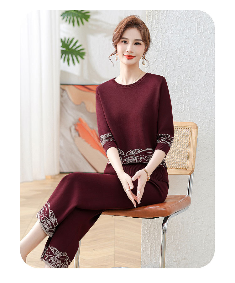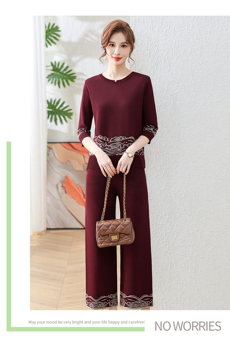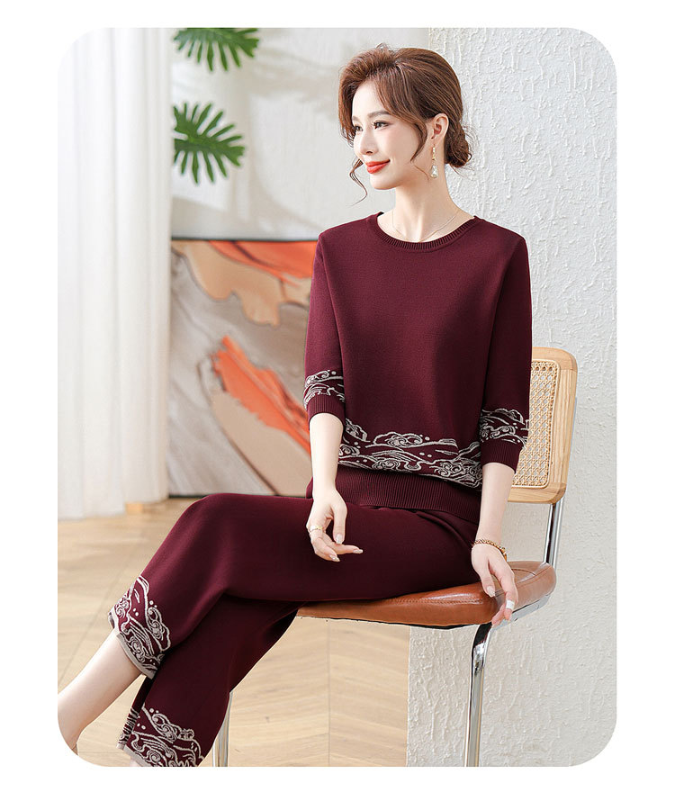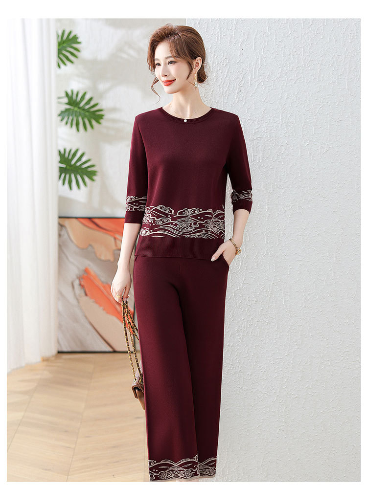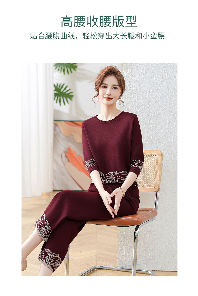 중년 엄마는 봄과 가을 패션 투피스 세트 새로운 중년 및 노인 여성 캐주얼 반팔 아이스 실크 스포츠웨어 세트 착용