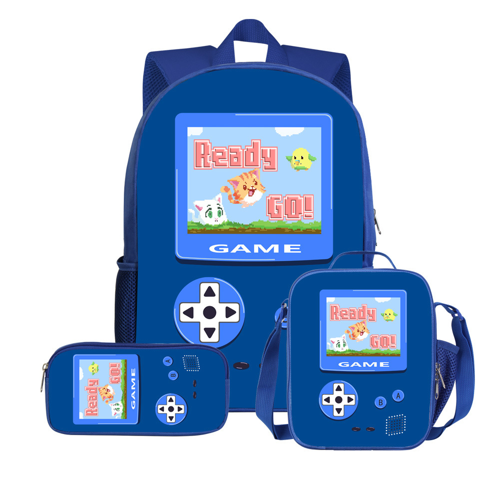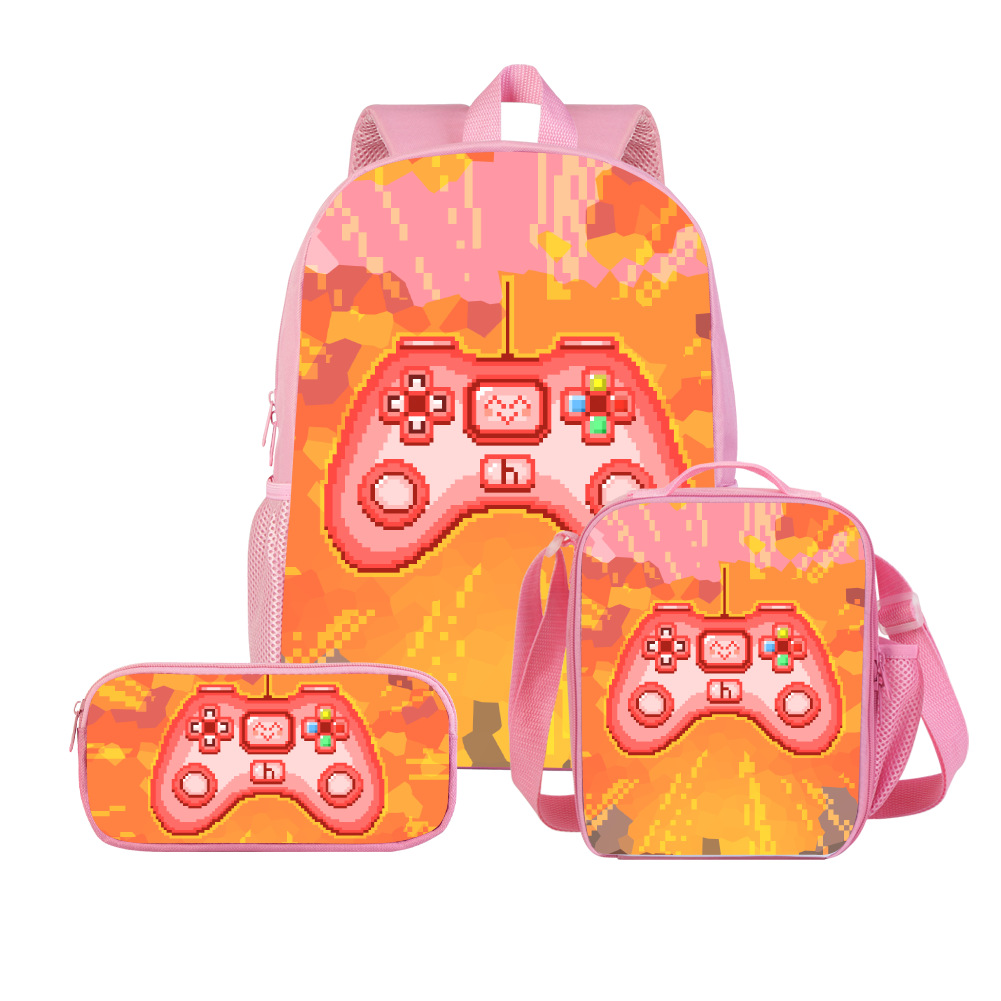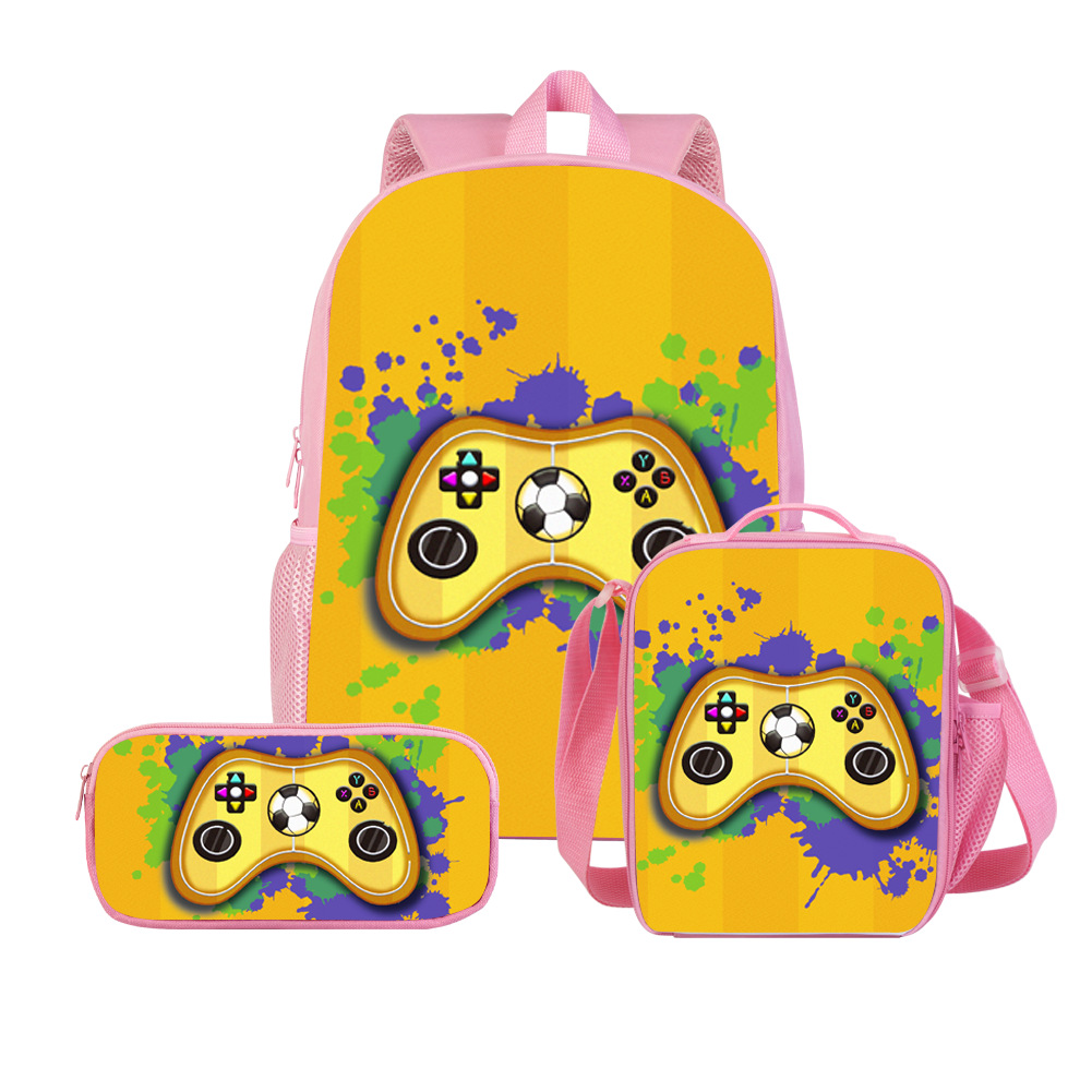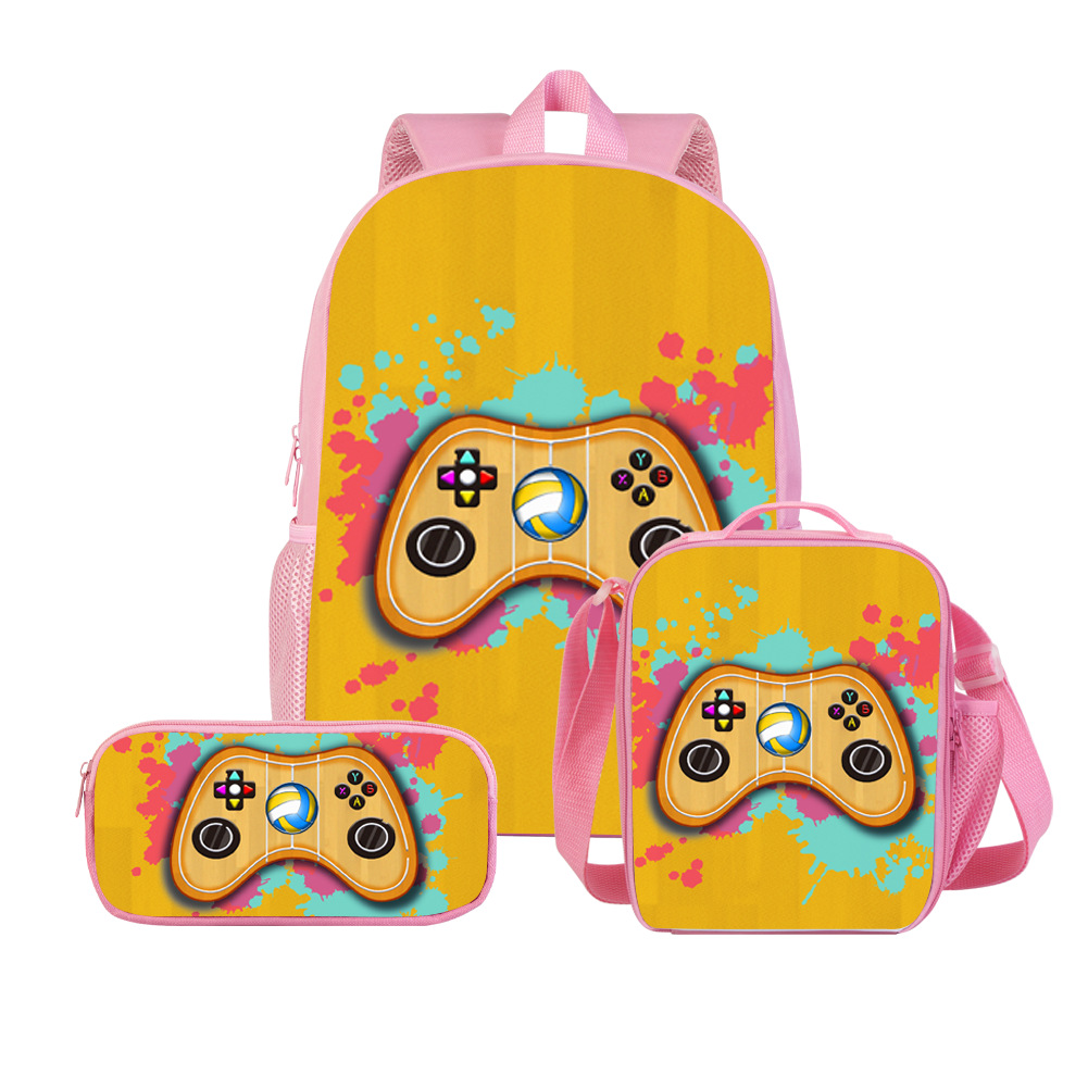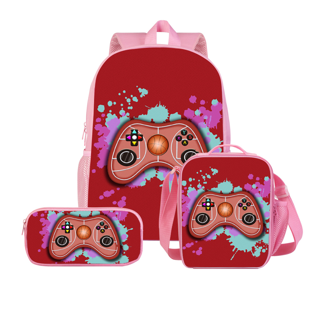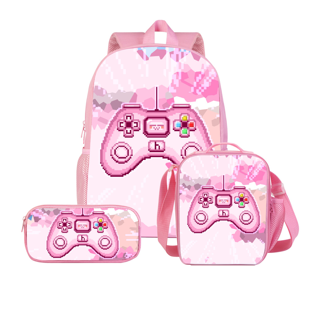 粉色学生书包来图一件起订涤纶双肩包+单肩包+笔袋组合装三件套