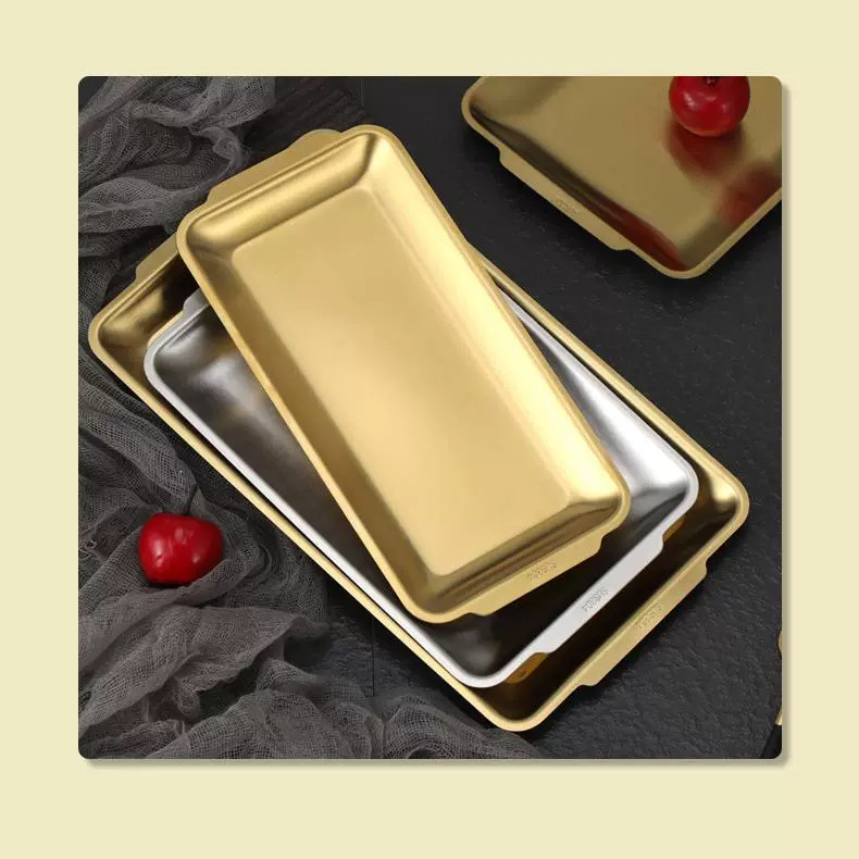 한국식 304 스테인레스 스틸 접시 직사각형 황금 트레이 공예 장식품 바베큐 접시 서양 음식 스낵 접시 바베큐 고기