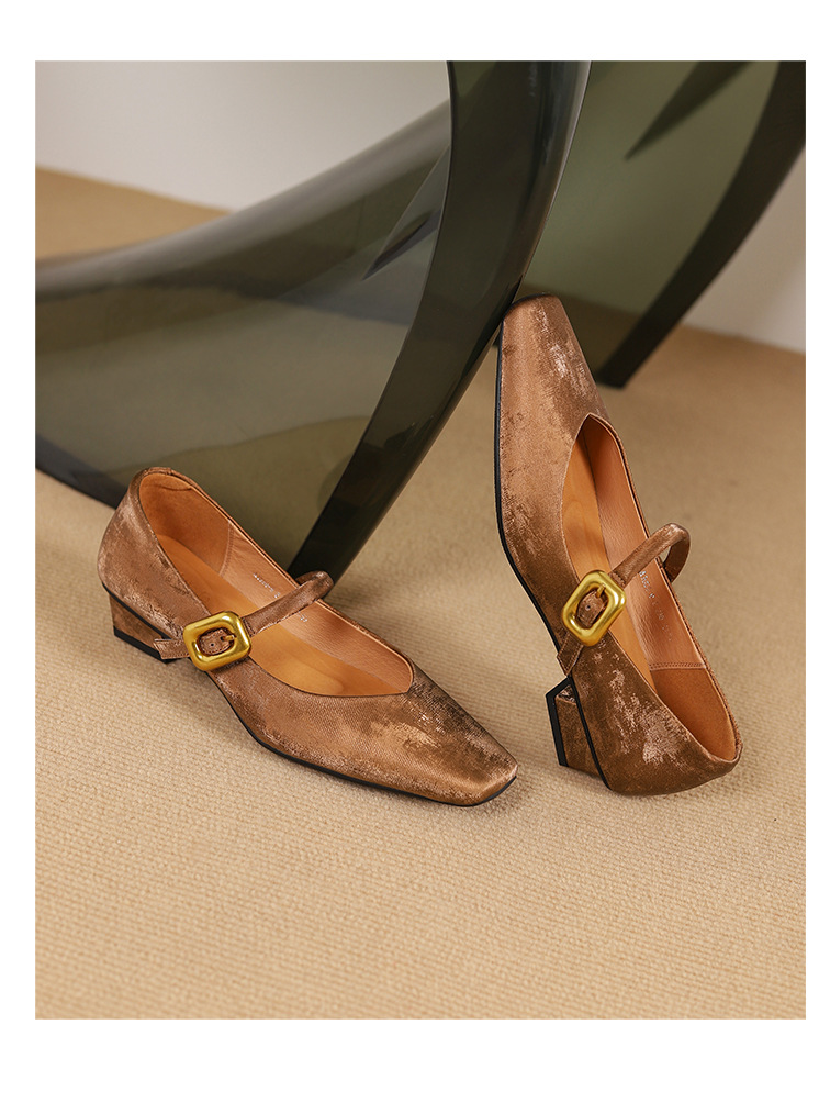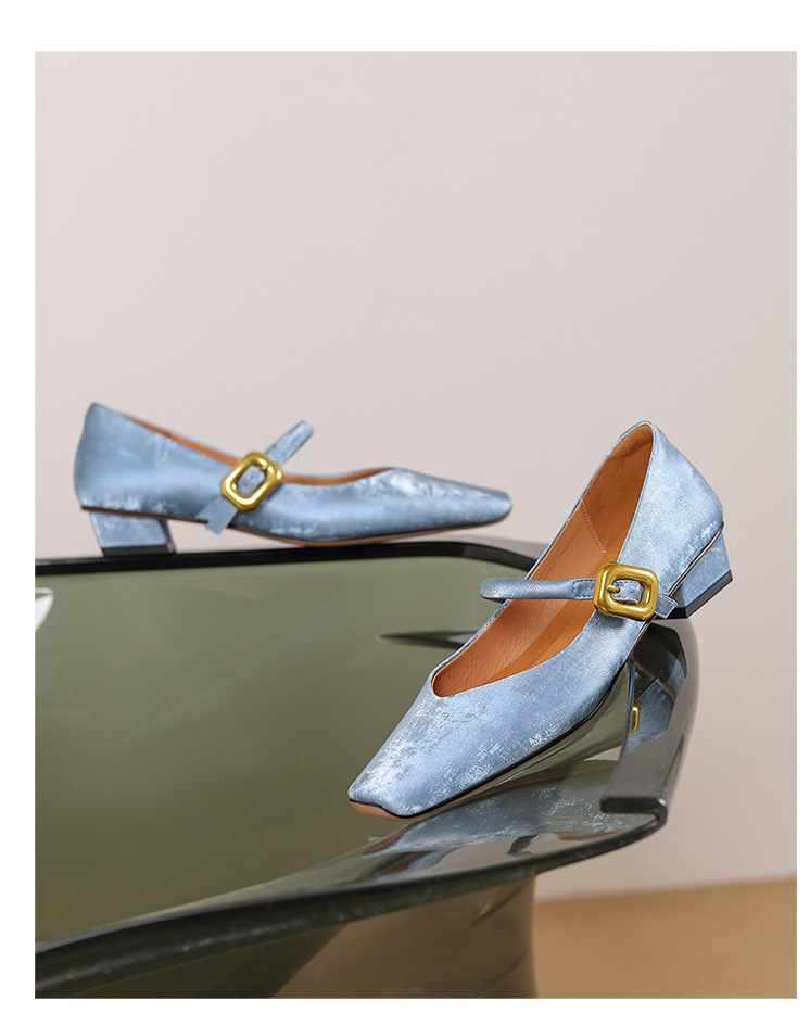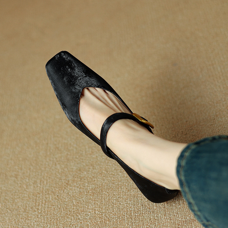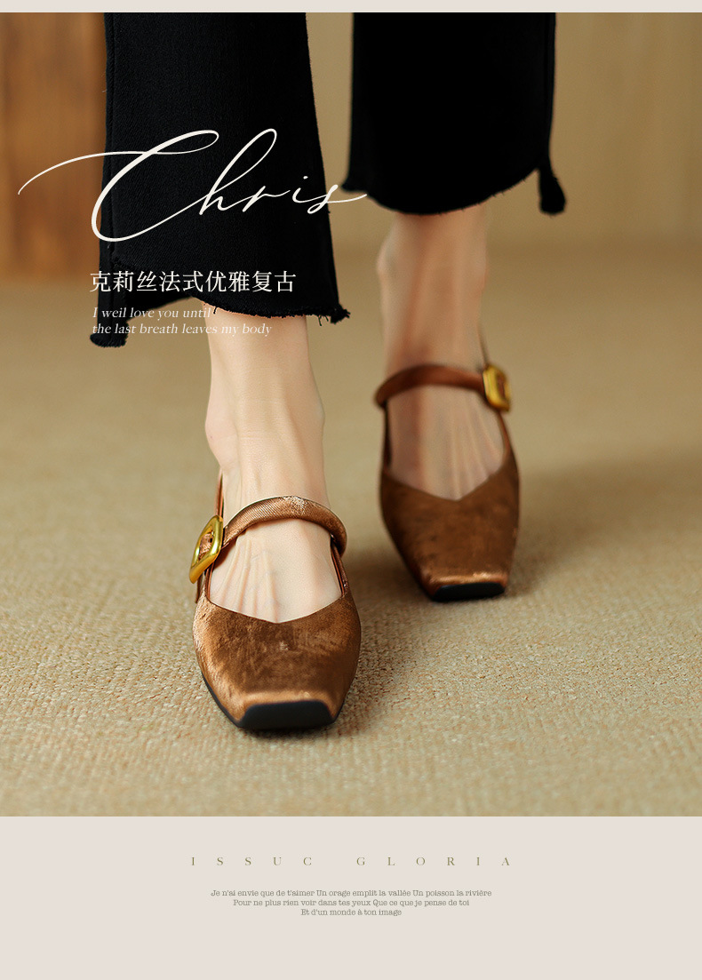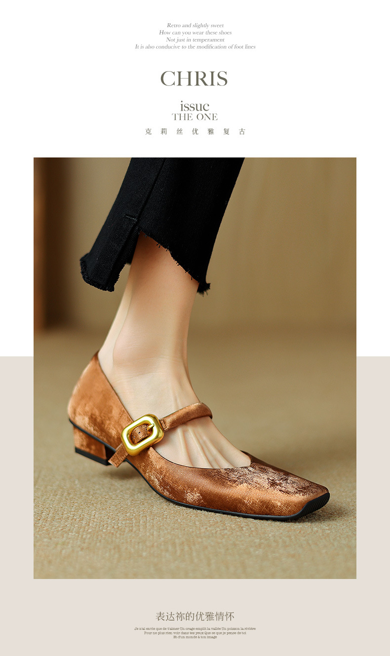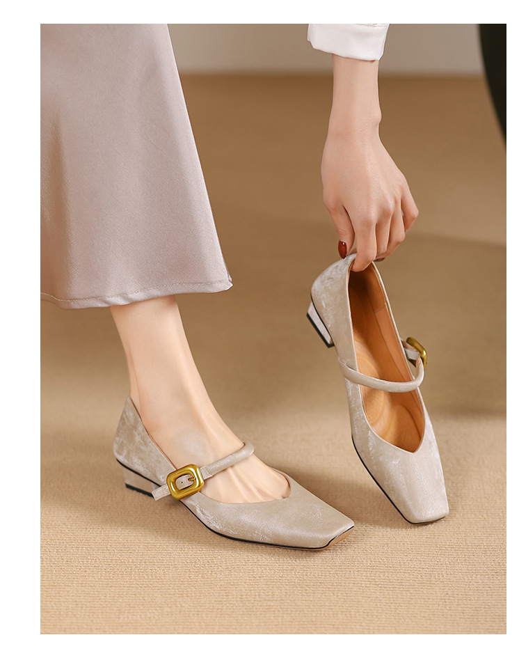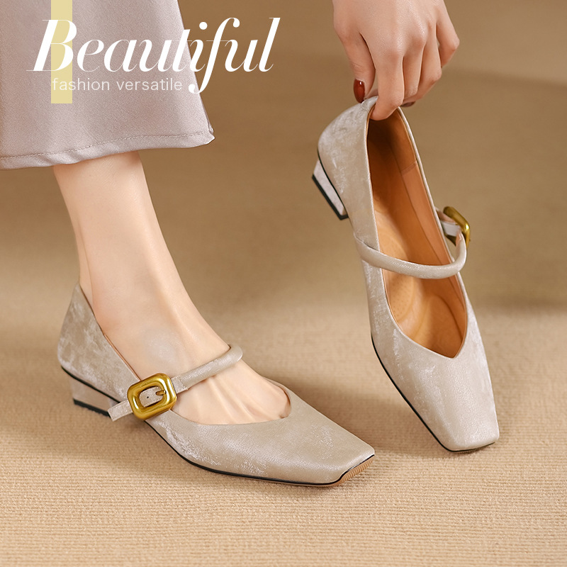 프랑스 이브닝 스타일 가죽 로우 힐 싱글 레이어 신발 2024 새로운 스퀘어 토 얕은 입 가죽 신발 Mary Jane 신발스토어 가기