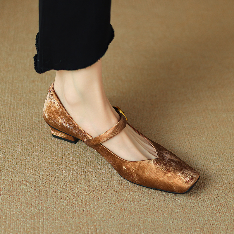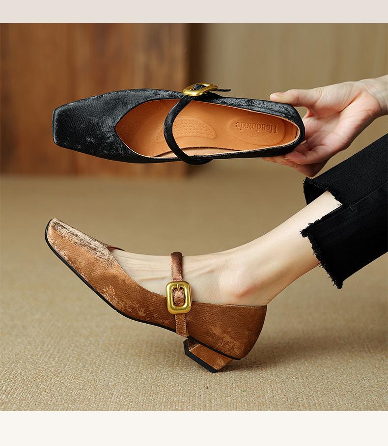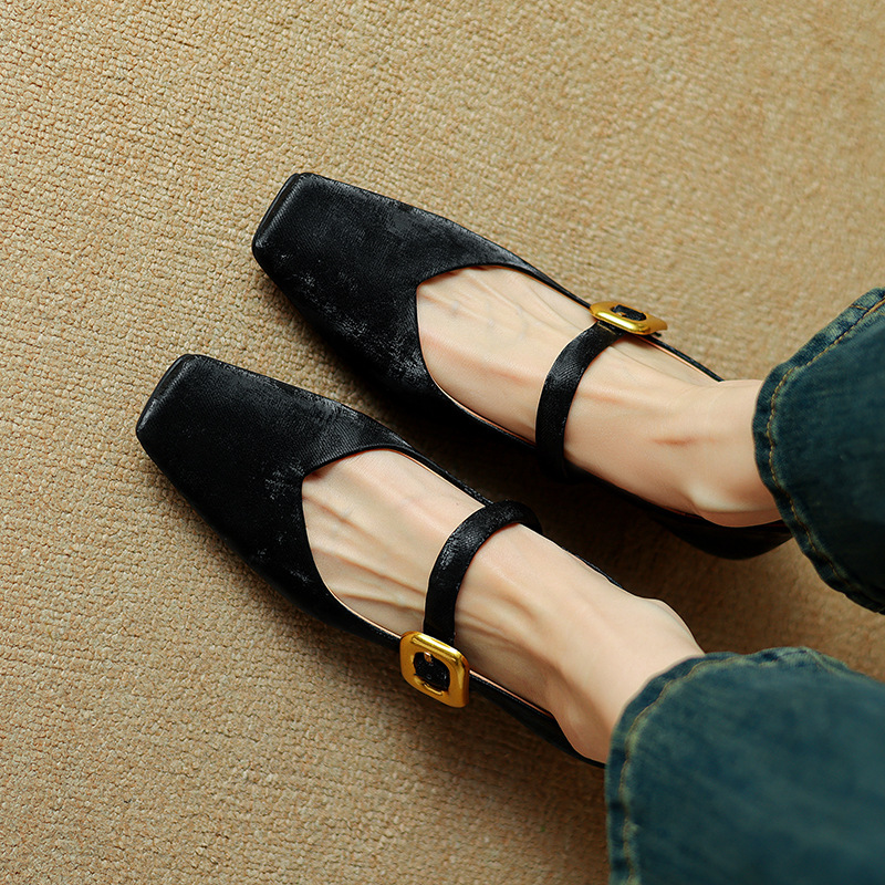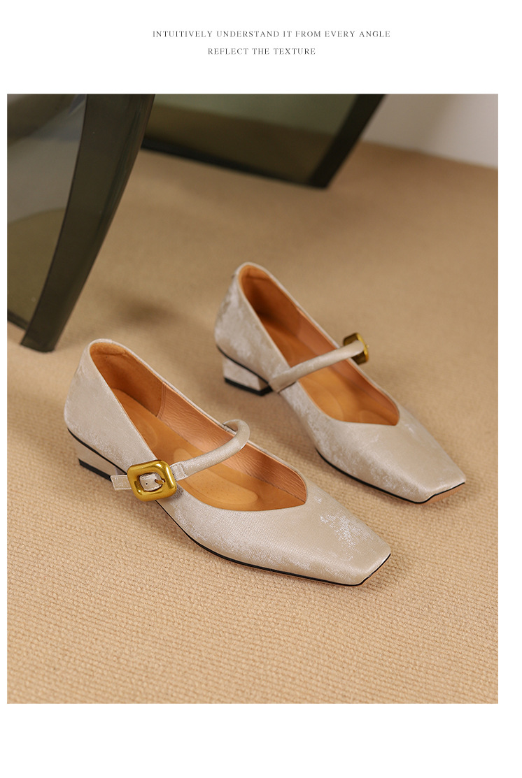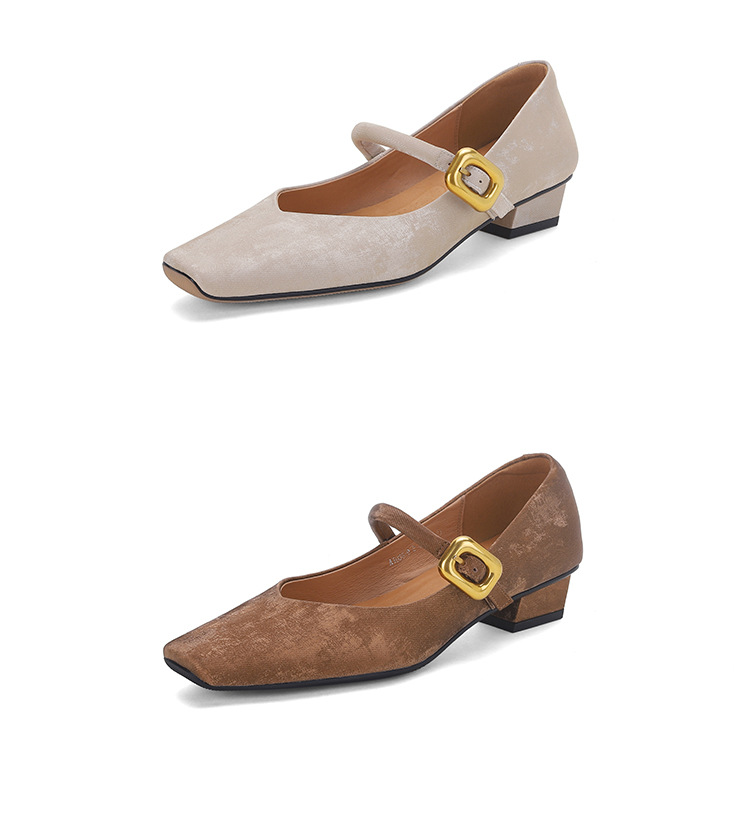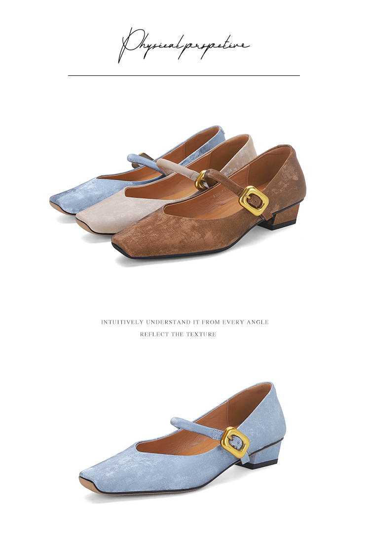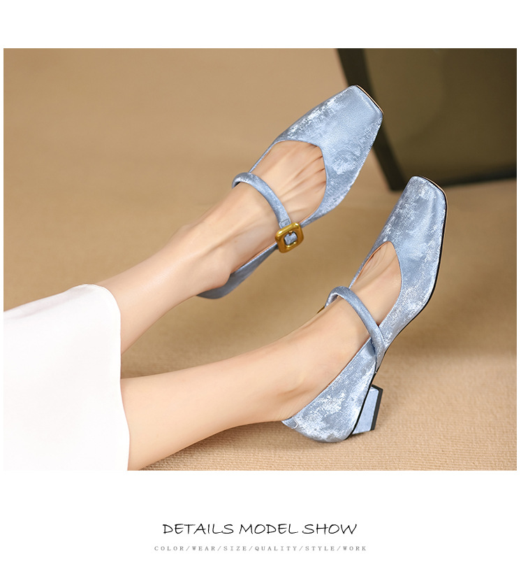 프랑스 이브닝 스타일 가죽 로우 힐 싱글 레이어 신발 2024 새로운 스퀘어 토 얕은 입 가죽 신발 Mary Jane 신발스토어 가기