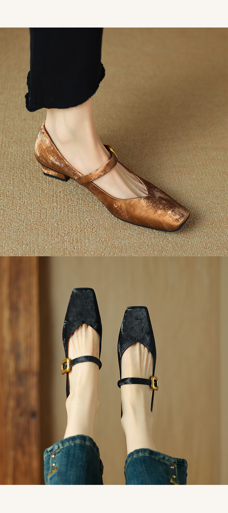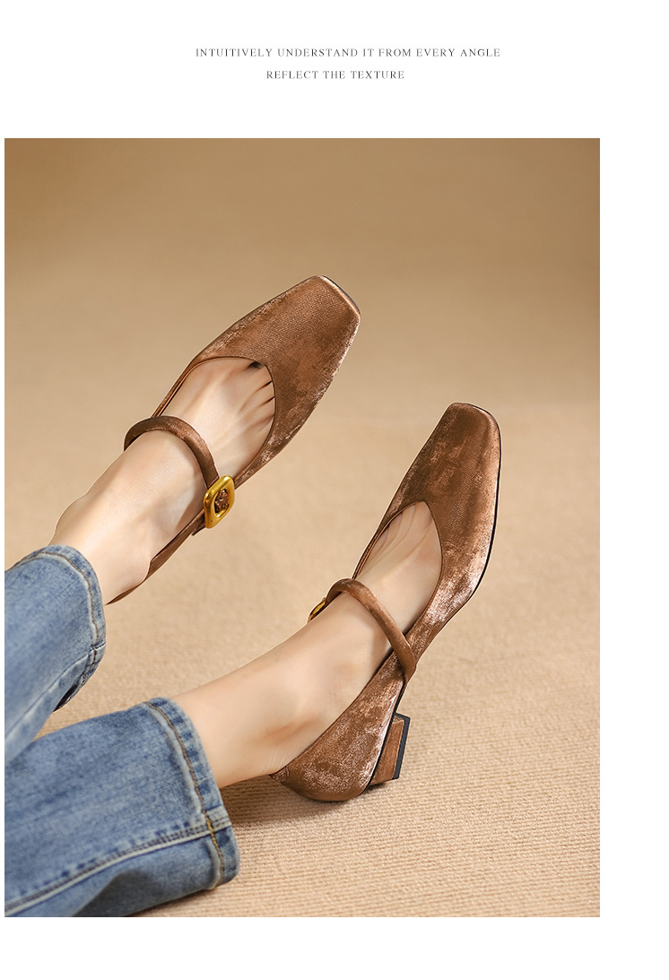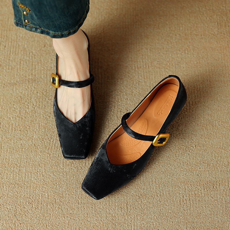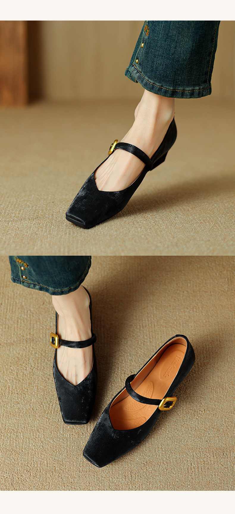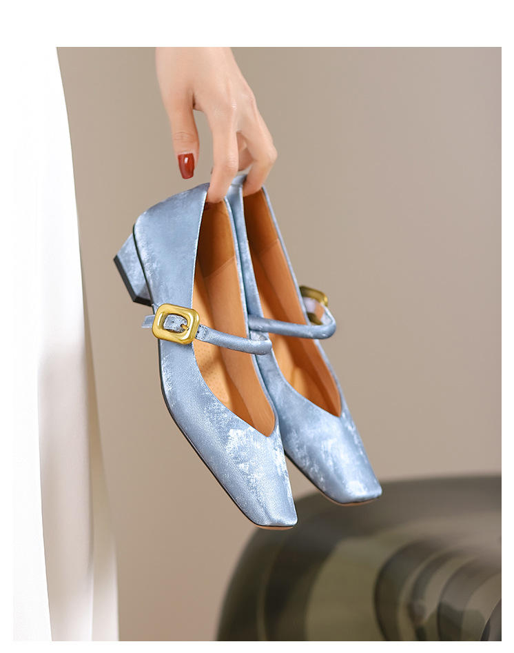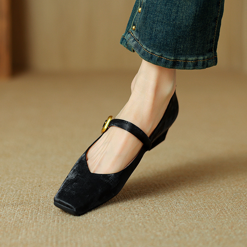 프랑스 이브닝 스타일 가죽 로우 힐 싱글 레이어 신발 2024 새로운 스퀘어 토 얕은 입 가죽 신발 Mary Jane 신발스토어 가기