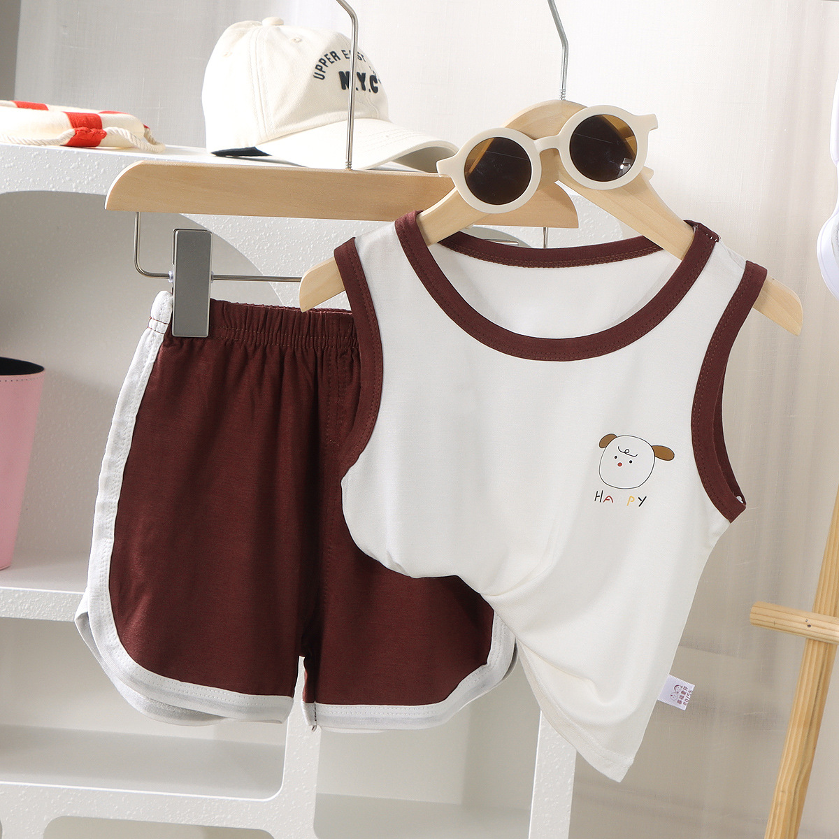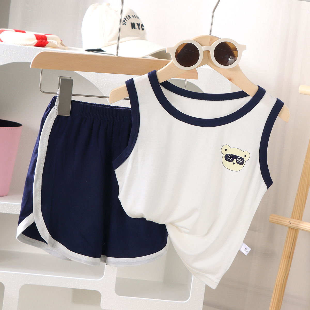 2025 새로운 어린이 모달 조끼 정장 소년 여름 민소매 반바지 투피스 세트 소녀 서스펜더 잠옷스토어 가기