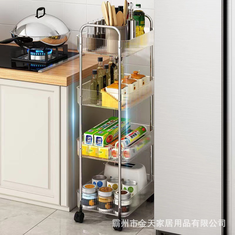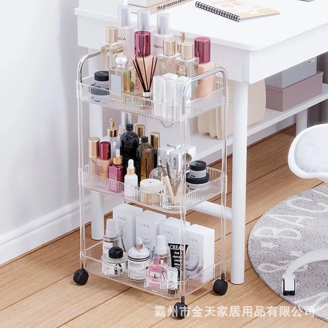 트롤리 스토리지 랙 아크릴 투명 모바일 휠 거실 주방 욕실 화장품 스낵 스토리지 랙
