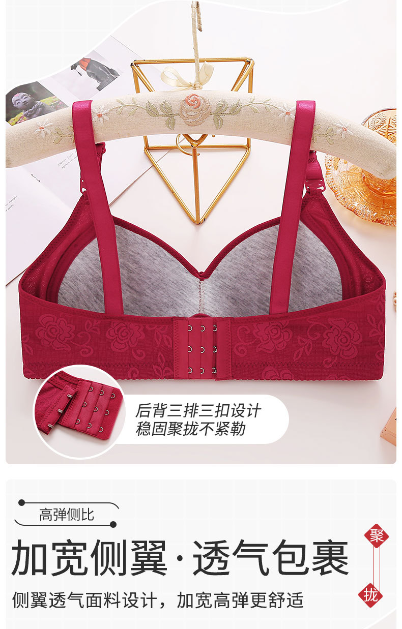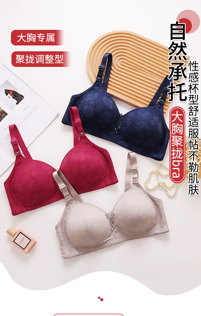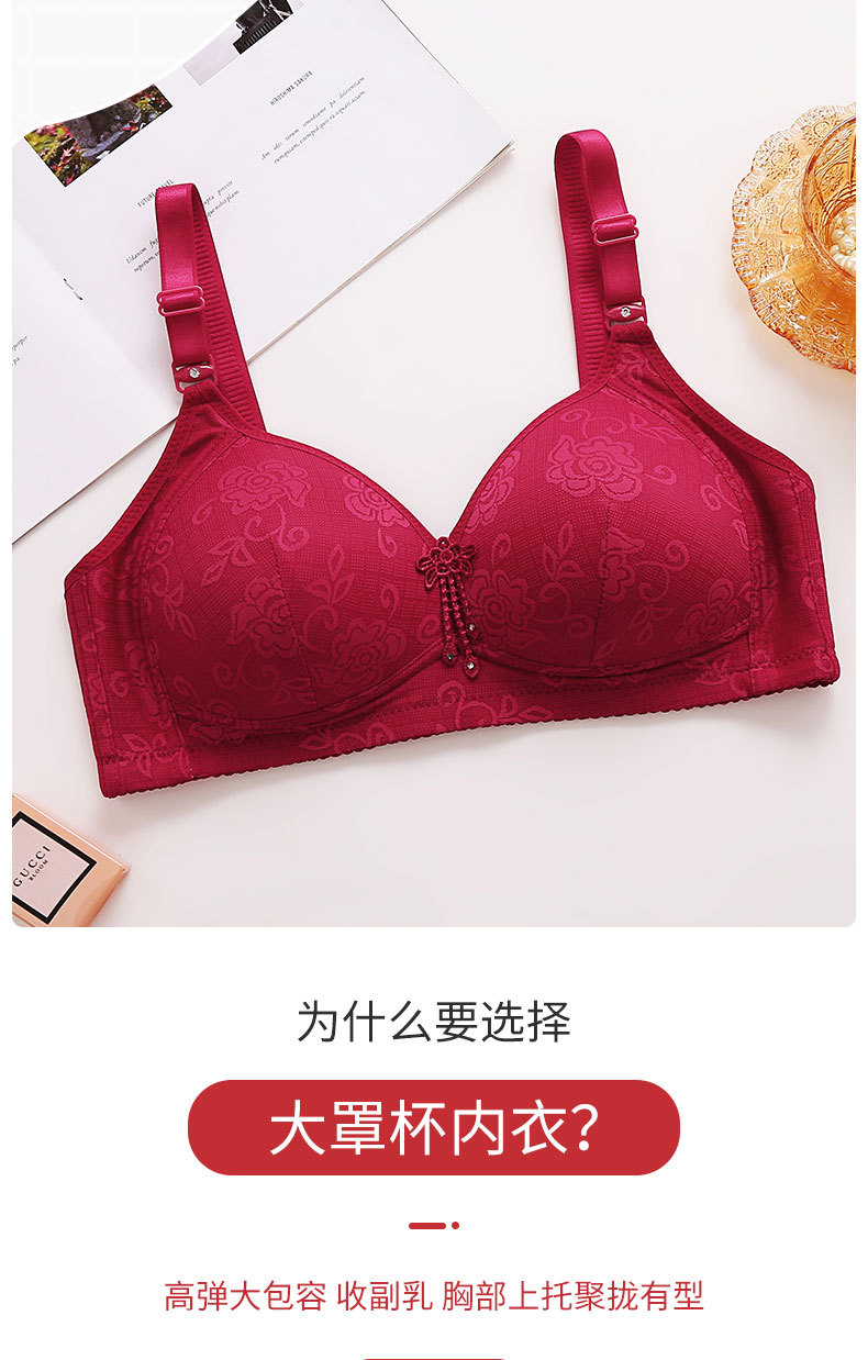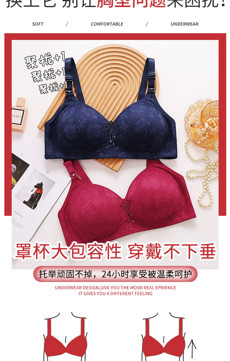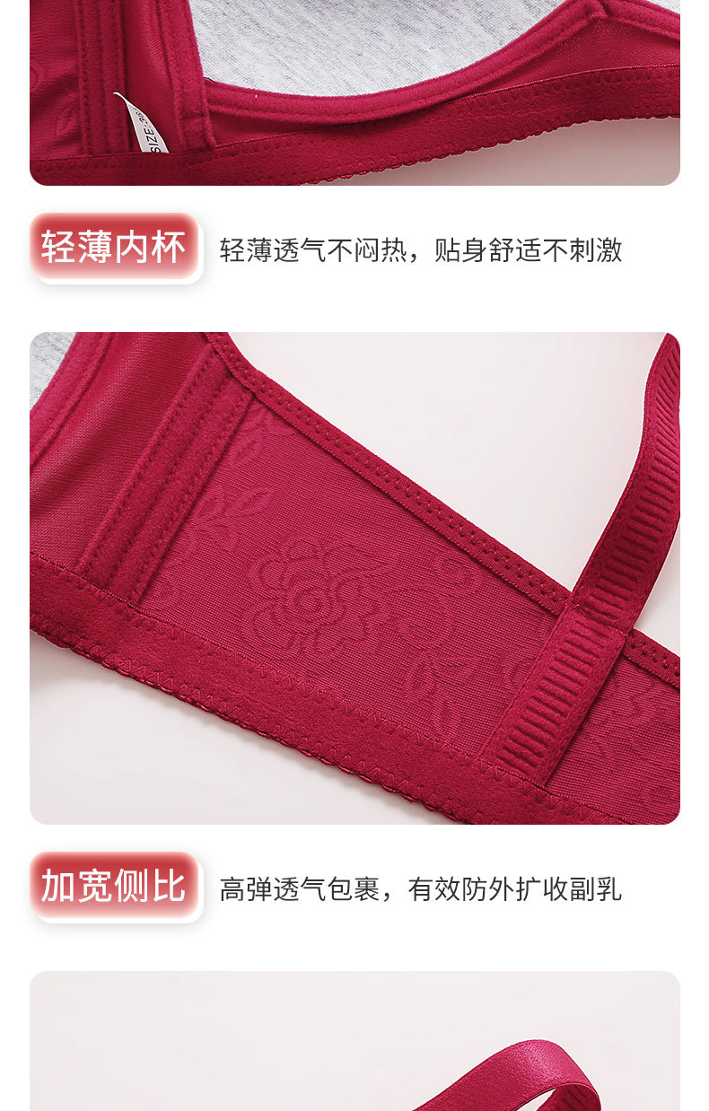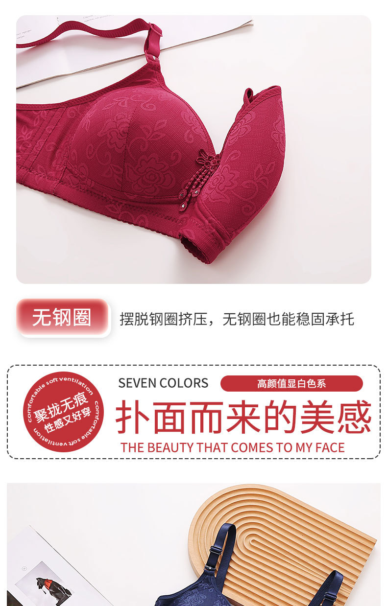 국경 간 새로운 고급 자카드 중년 플러스 사이즈 엄마 속옷 무선 얇은 컵 테스트 사이드 유방 컬렉션 통기성 브래지어
