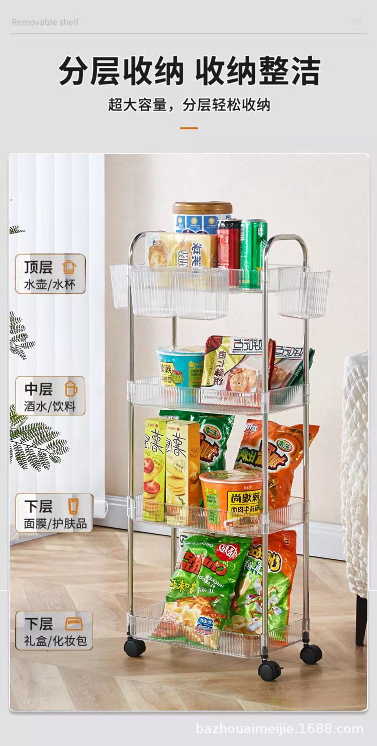아크릴 트롤리 랙 홈 침실 주방 랙 거실 스낵 플라스틱 스토리지 스토리지 랙