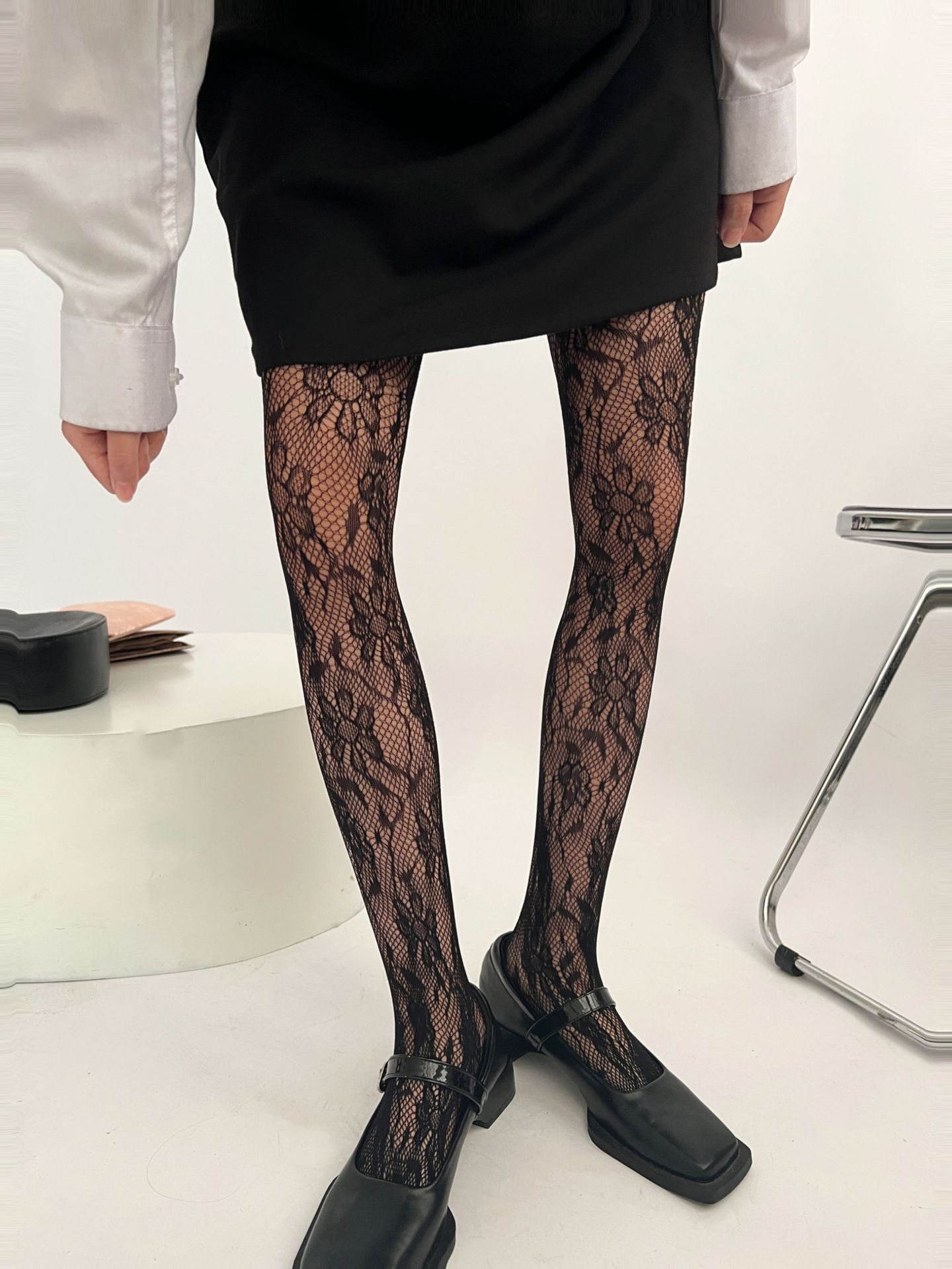 봄과 여름 y2g 밀레니엄 핫 소녀 단색 올 매치 썬 꽃다발 레이스 망사 양말 메쉬 중공 자카드 팬티 스타킹스토어 가기