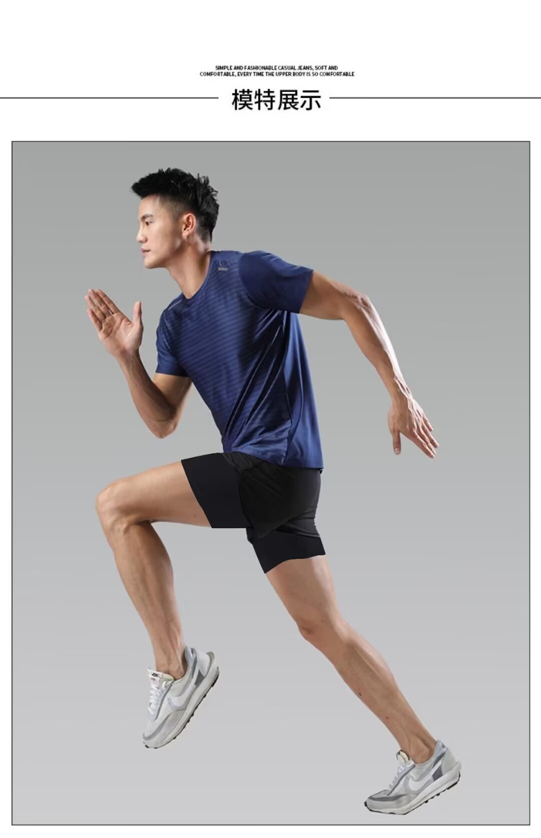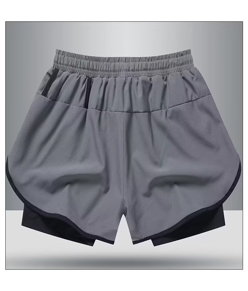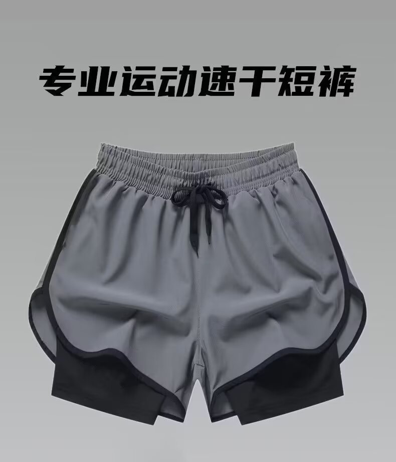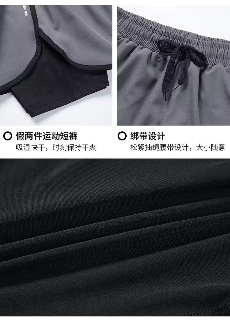 스포츠 반바지 남성용 미국식 피트니스 러닝 팬츠, 가짜 투피스 훈련 노출 방지 4 점 농구 캐주얼 반바지스토어 가기