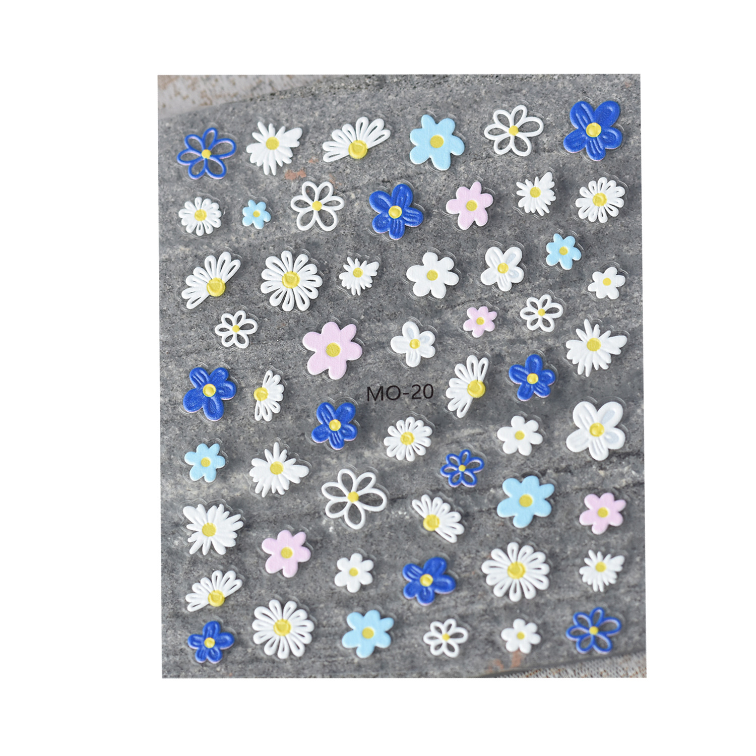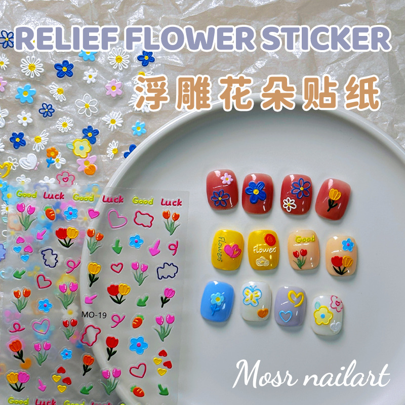 양각 꽃 데이지 네일 스티커 만화 튤립 사랑 나비 접착제 네일 스티커 네일 스티커